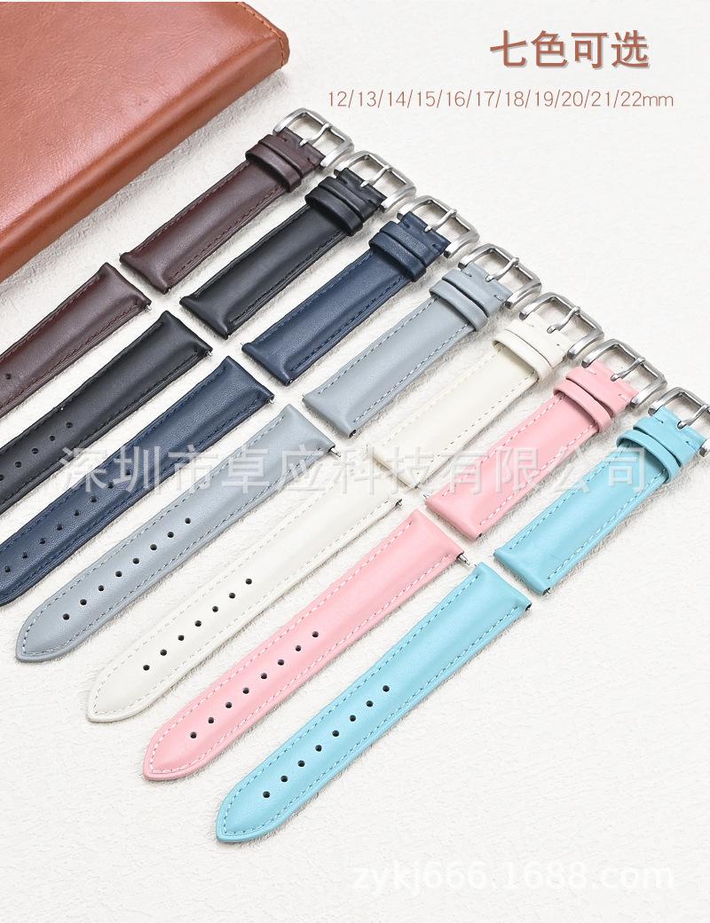 Correa de reloj unisex de piel de vaca de capa superior, pequeña y fresca, de cuero genuino, de liberación rápida