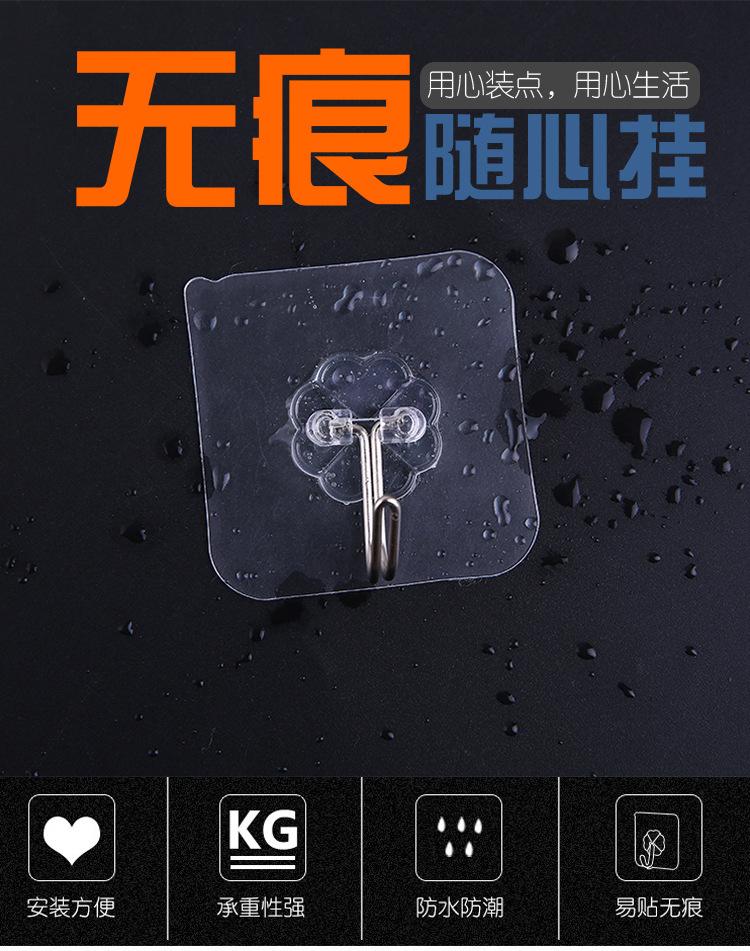 Gancho adhesivo fuerte de fábrica para baño, supermercado al por mayor, gancho transparente sin costuras, adhesivos sin clavos, gancho mágico para ropa