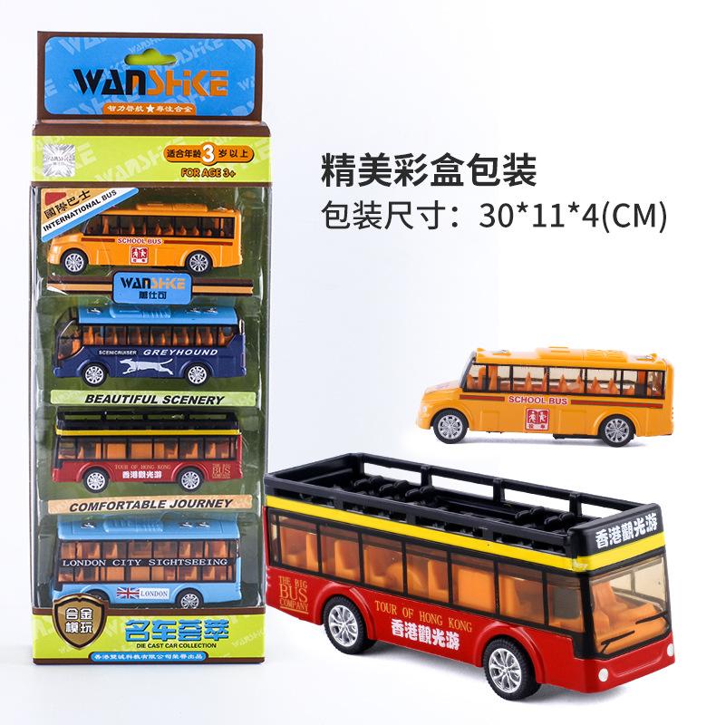 Paquete Múltiple 1:64 juego de carga de cuatro piezas tanque coche todoterreno coche de red autobús coche de fricción juguete