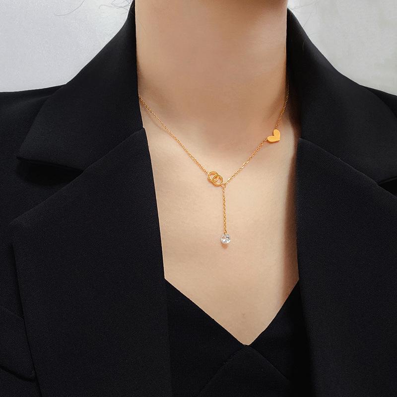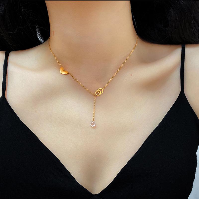 Collar de corazón de amor de lujo ligero con explosiones en vivo de Europa y Estados Unidos, diseño de nicho femenino, cadena de clavícula de un solo diamante de acero de titanio y oro al por mayor