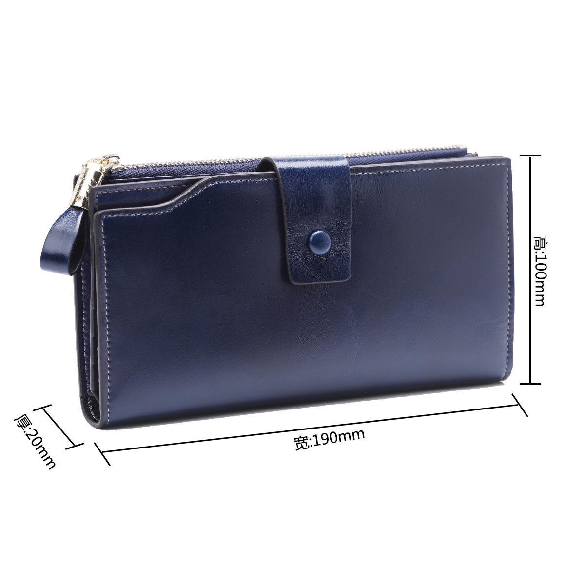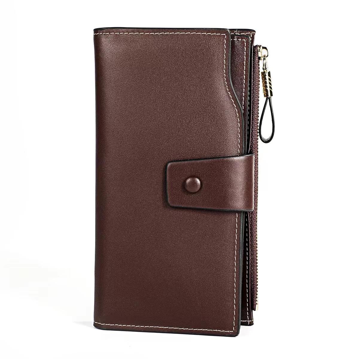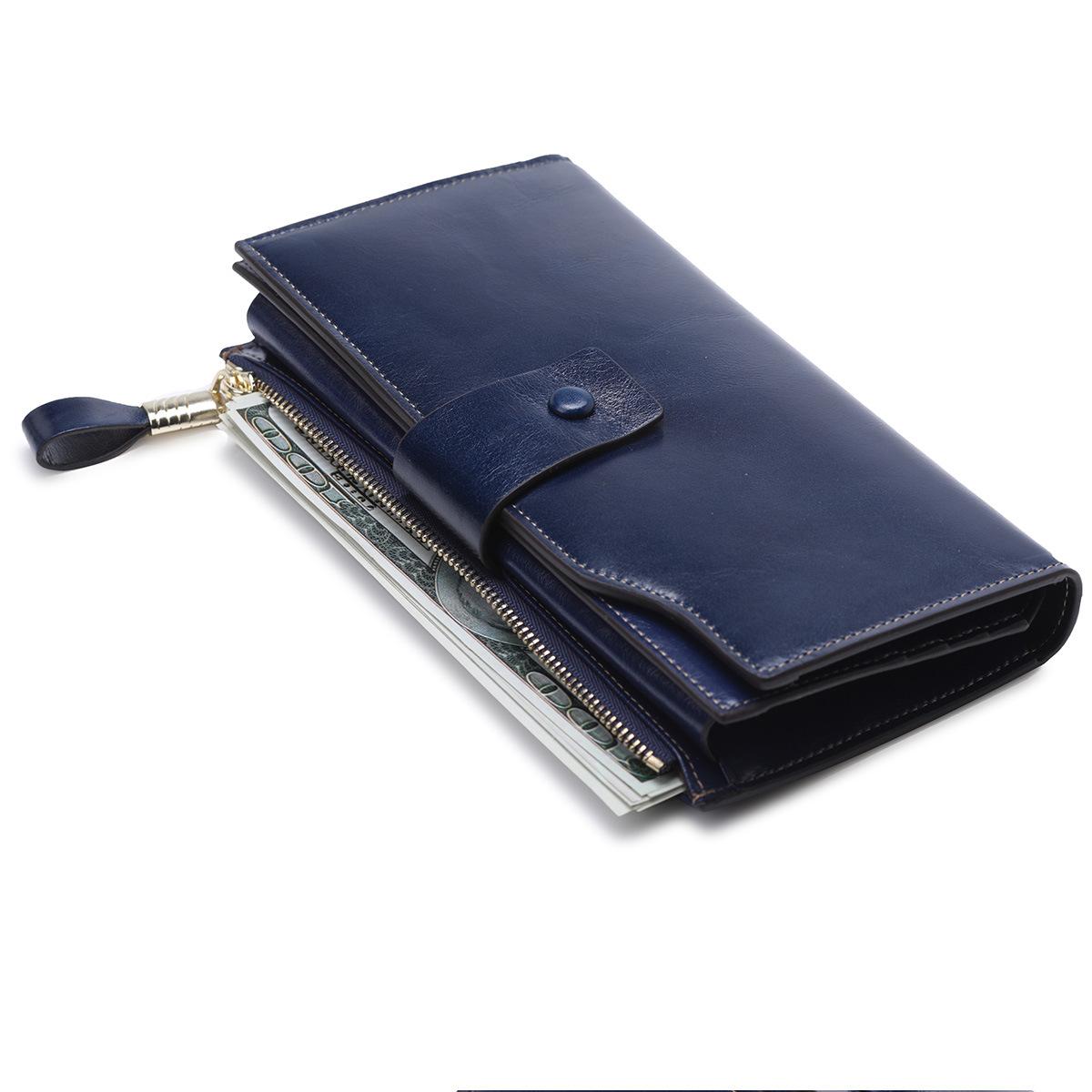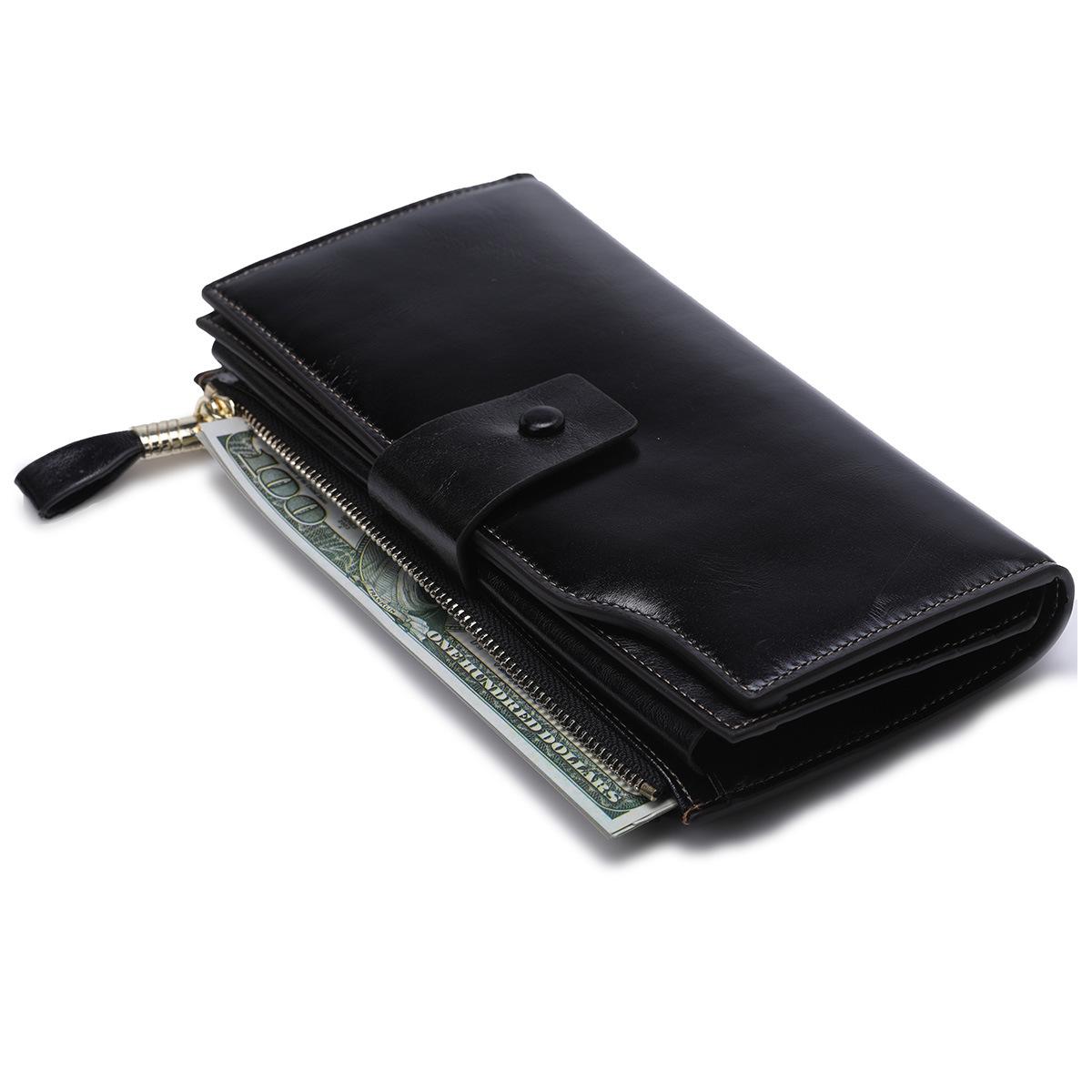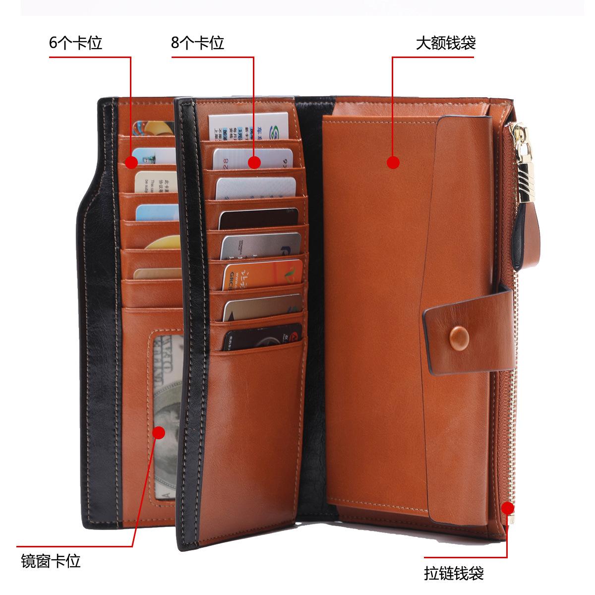 Cartera larga para mujer, venta al por mayor, de fábrica en Guangzhou, de piel auténtica, de primera capa, con múltiples ranuras para tarjetas, de piel de vaca.