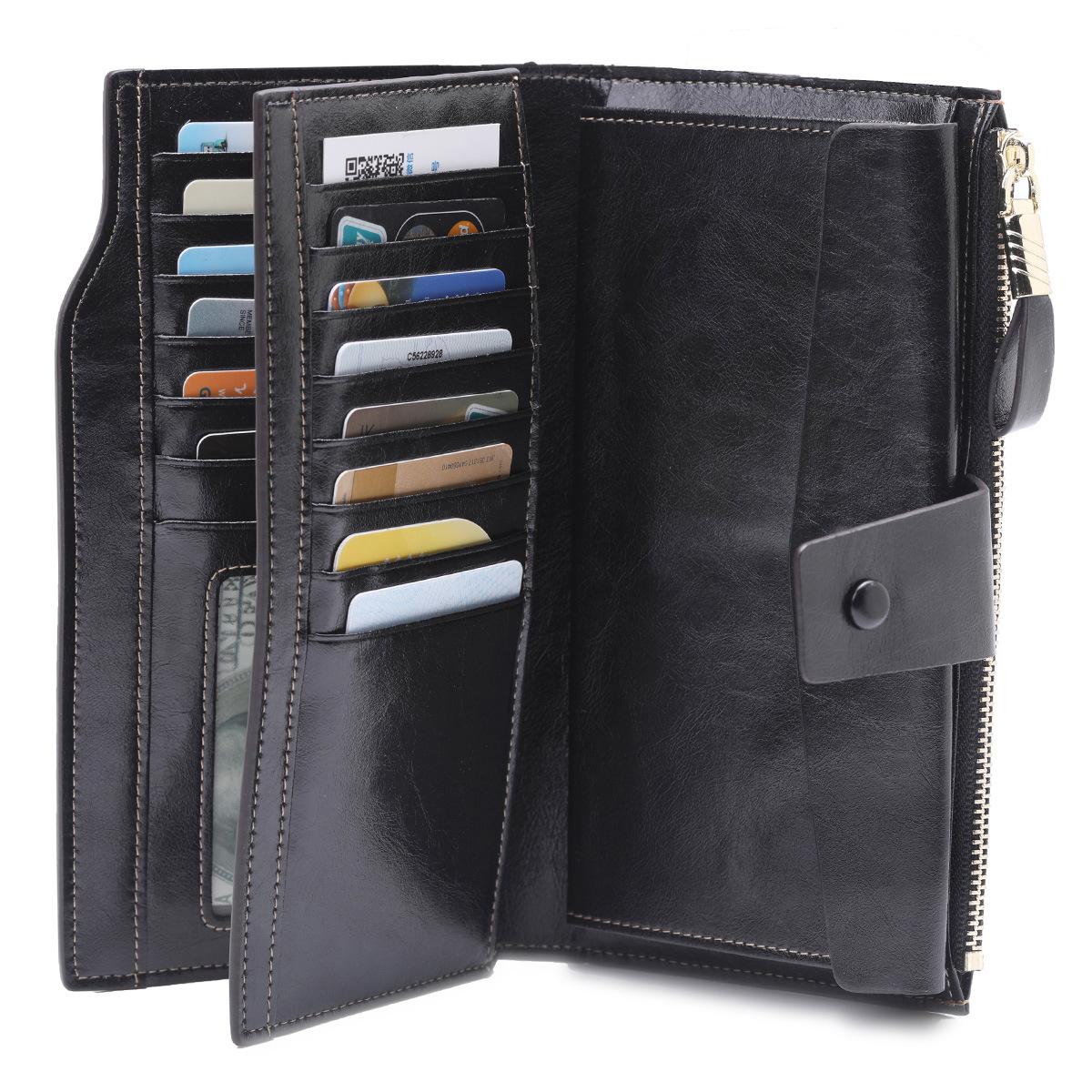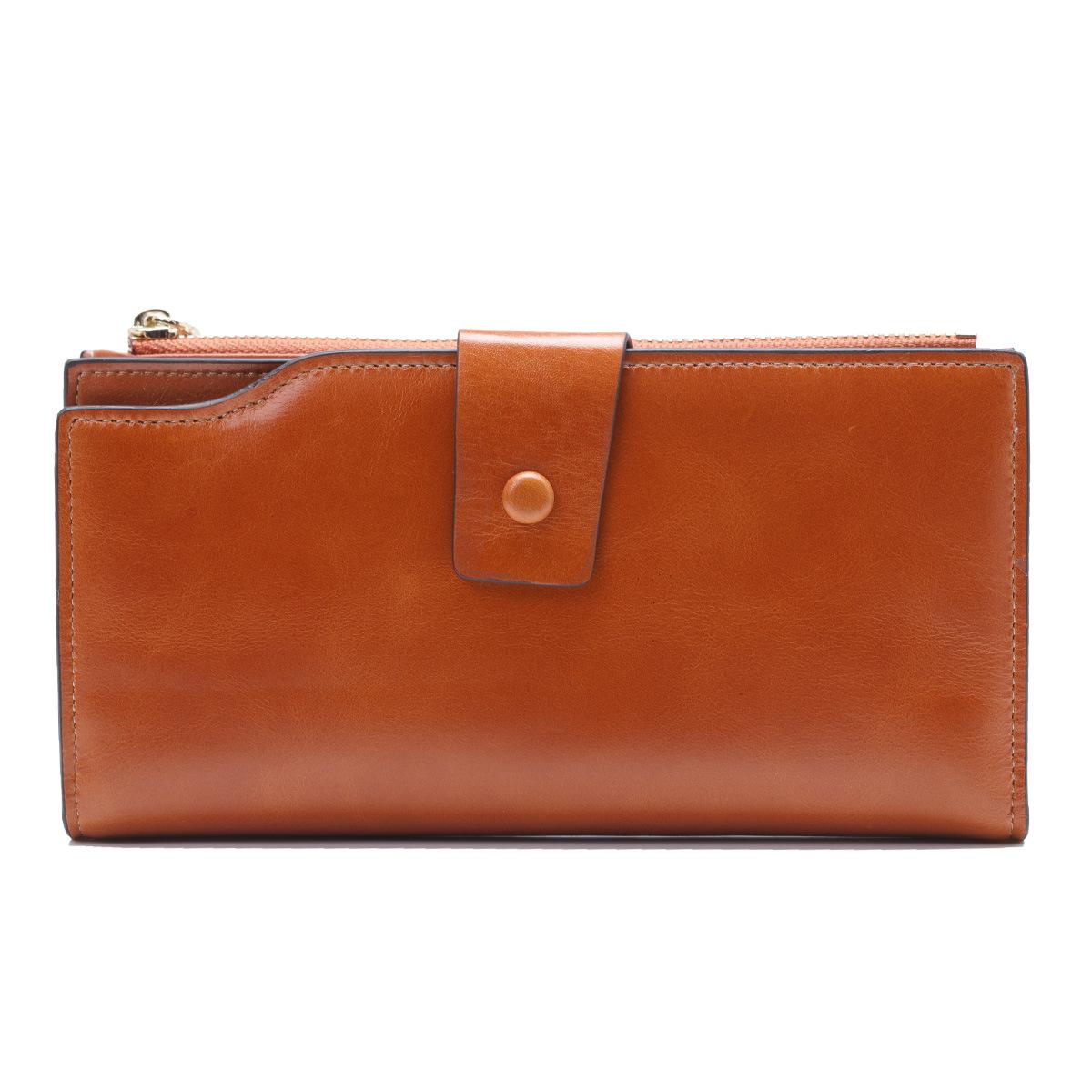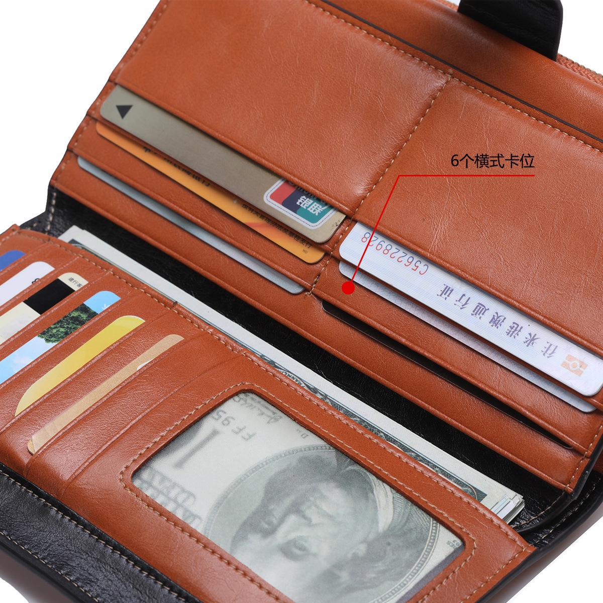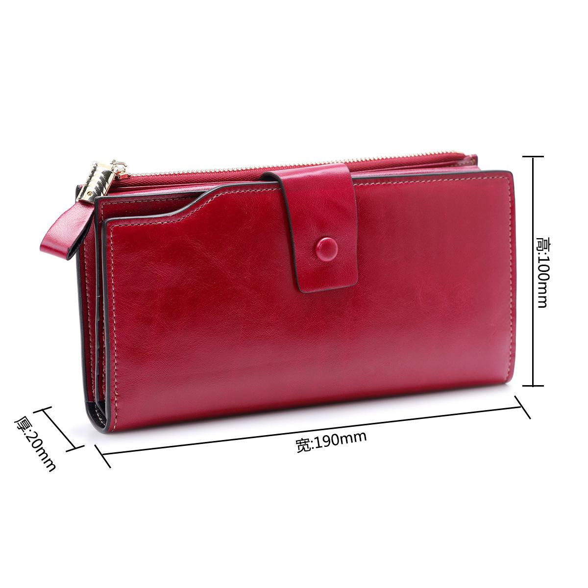Cartera larga para mujer, venta al por mayor, de fábrica en Guangzhou, de piel auténtica, de primera capa, con múltiples ranuras para tarjetas, de piel de vaca.