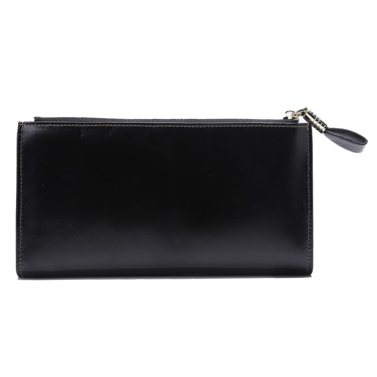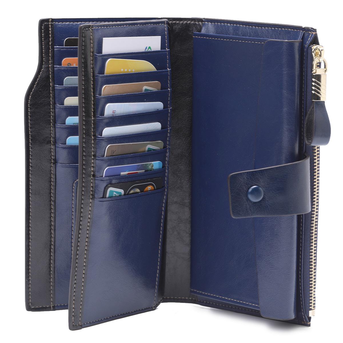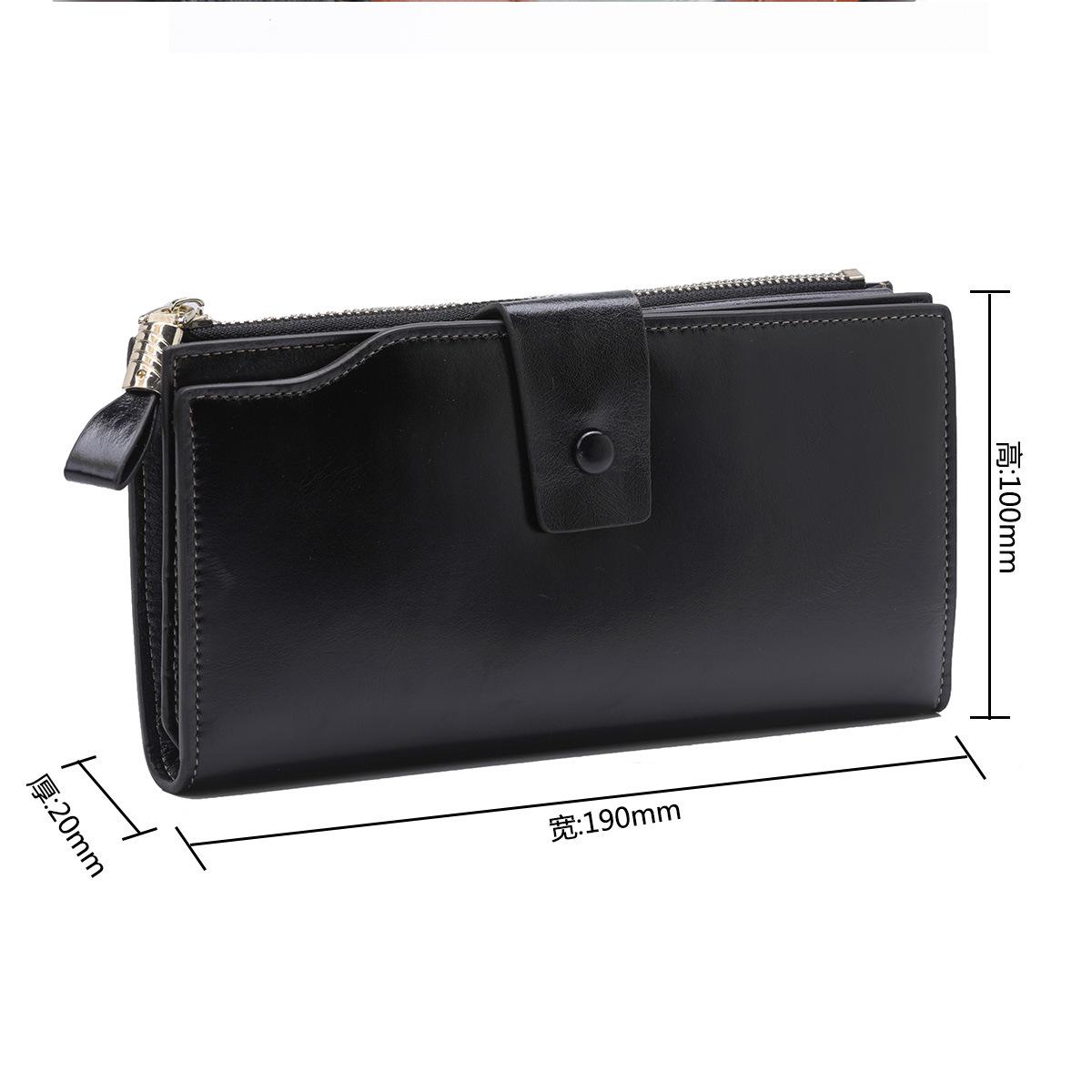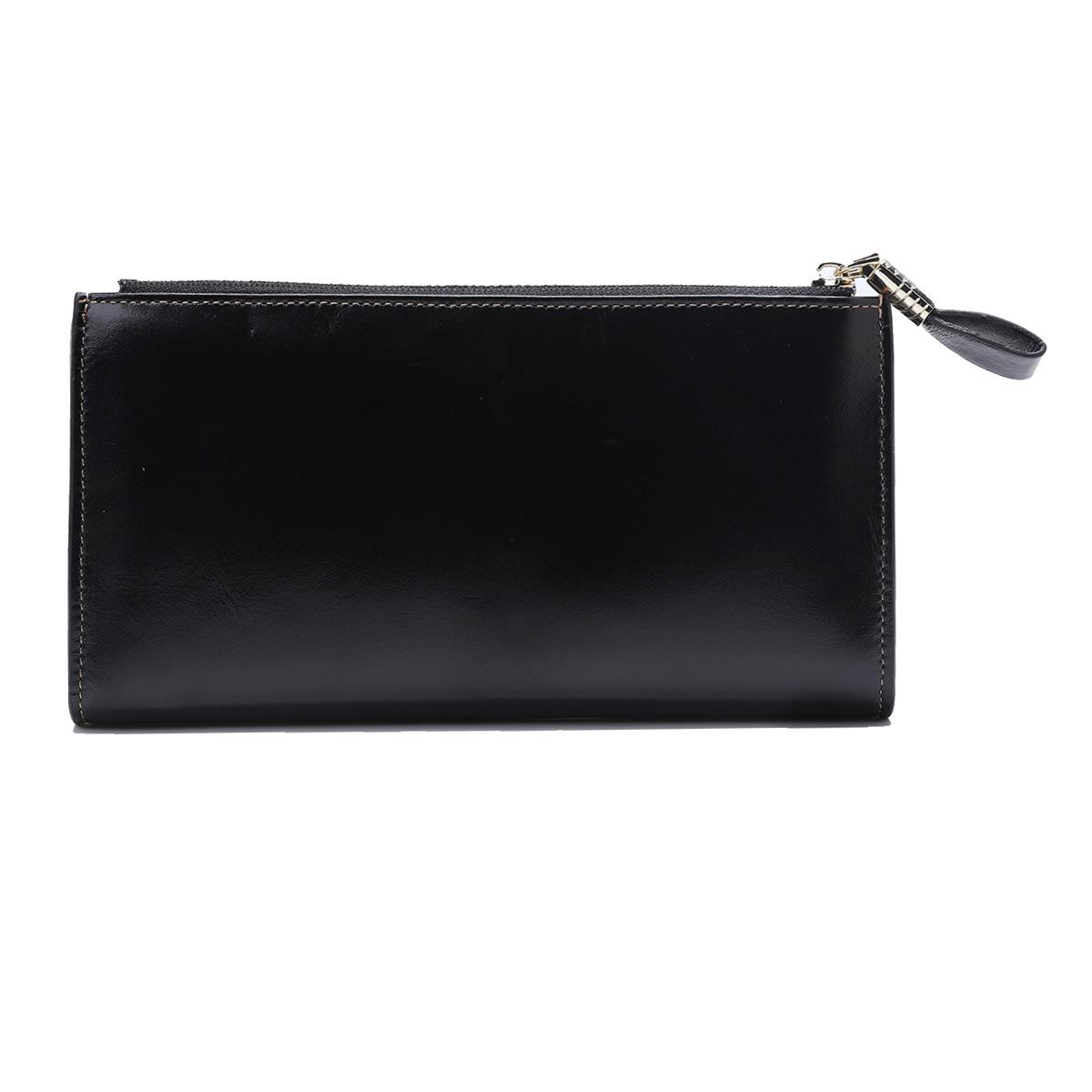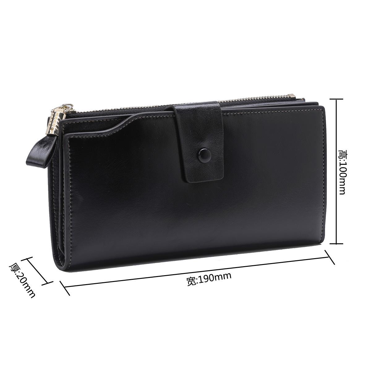 Cartera larga para mujer, venta al por mayor, de fábrica en Guangzhou, de piel auténtica, de primera capa, con múltiples ranuras para tarjetas, de piel de vaca.