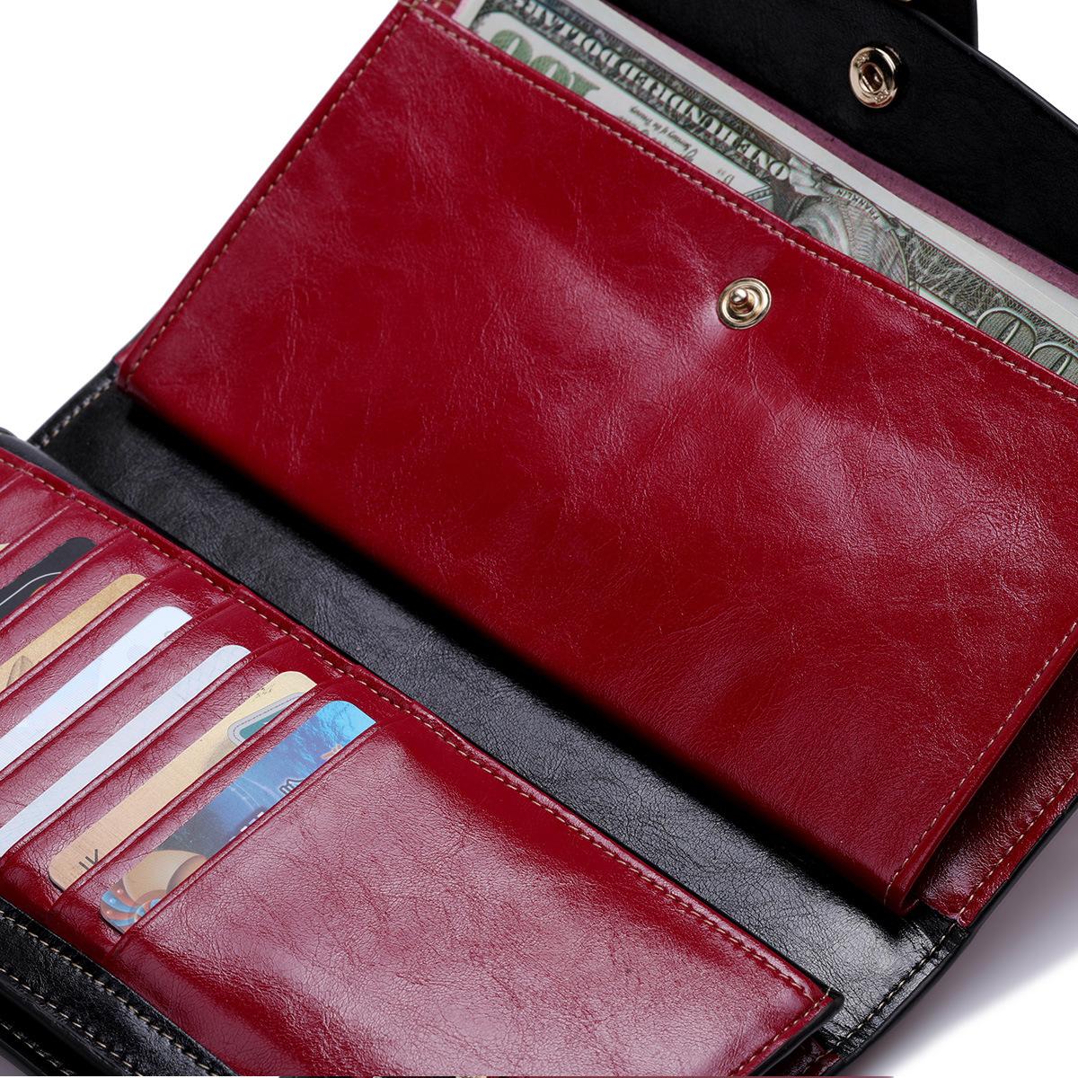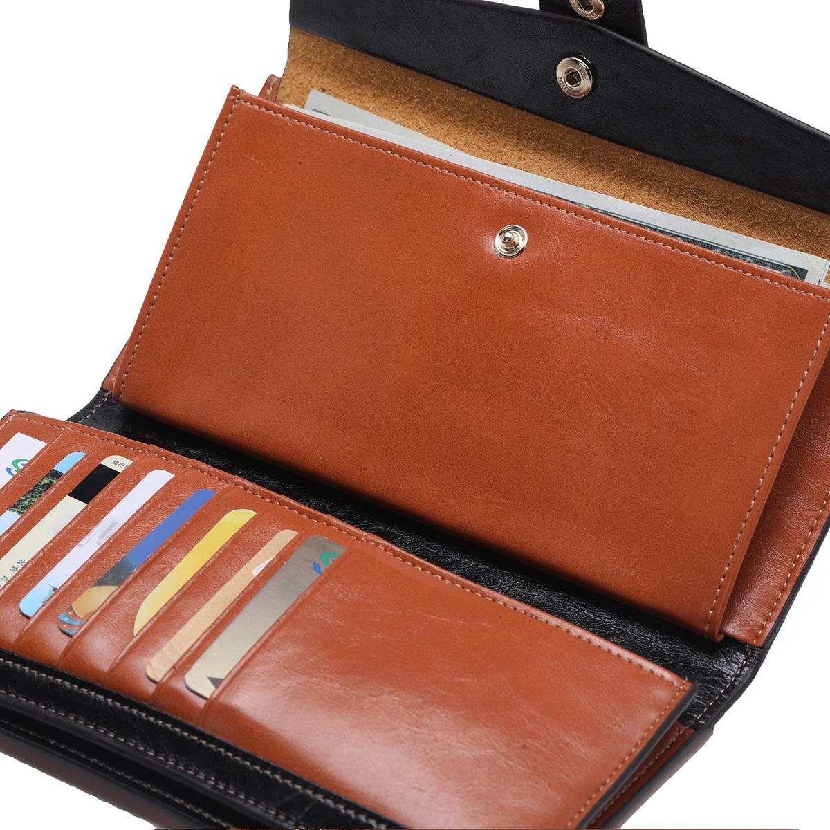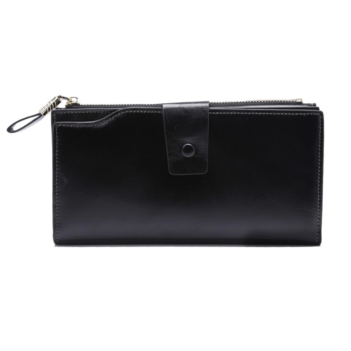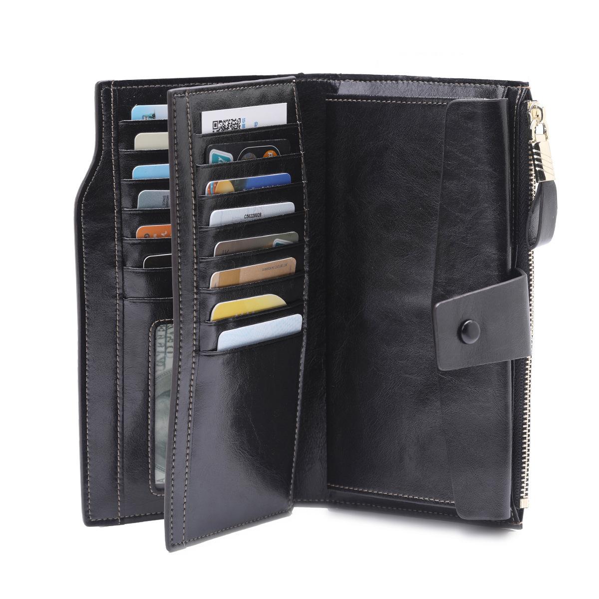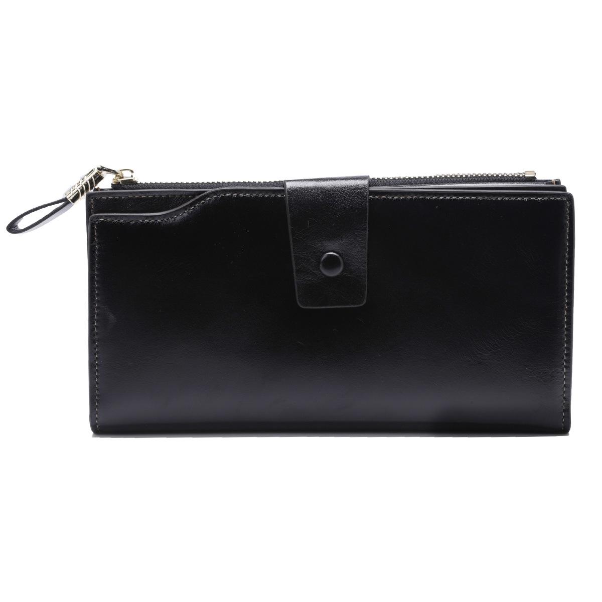 Cartera larga para mujer, venta al por mayor, de fábrica en Guangzhou, de piel auténtica, de primera capa, con múltiples ranuras para tarjetas, de piel de vaca.