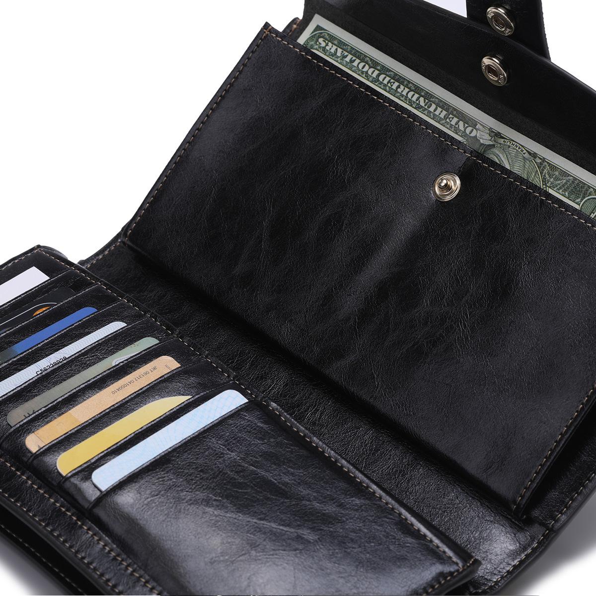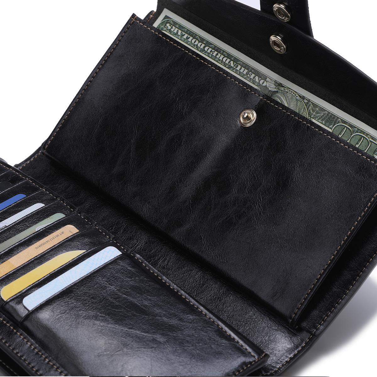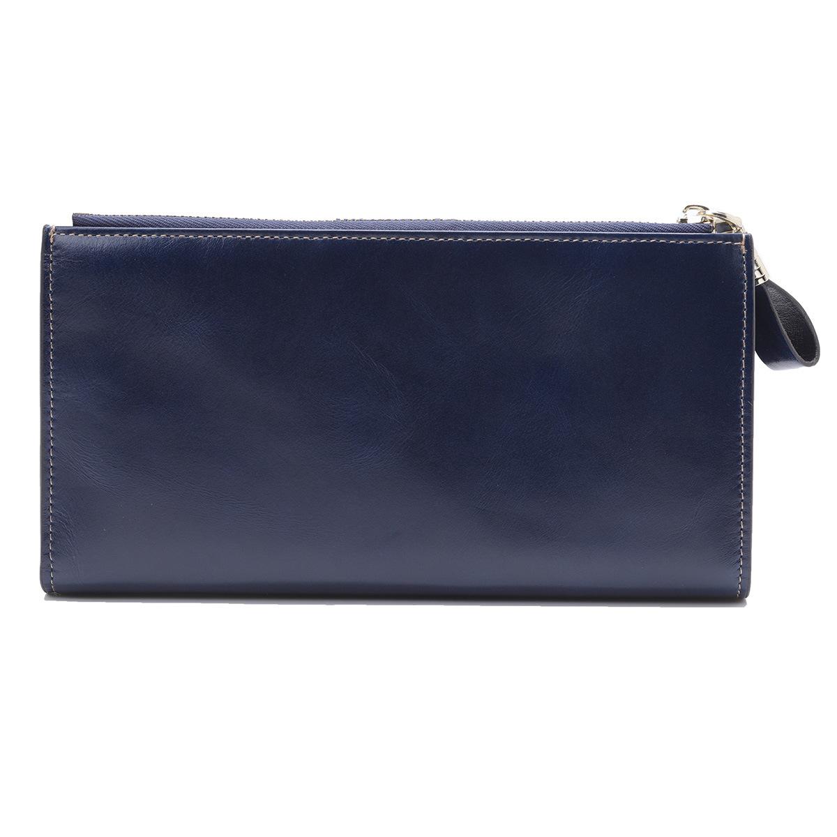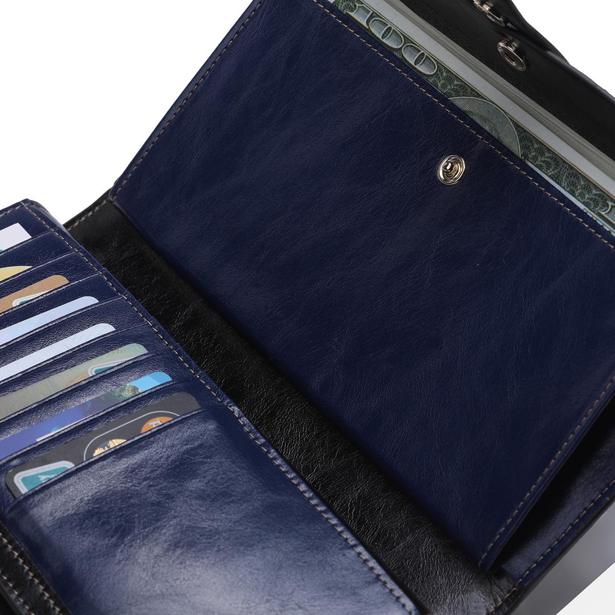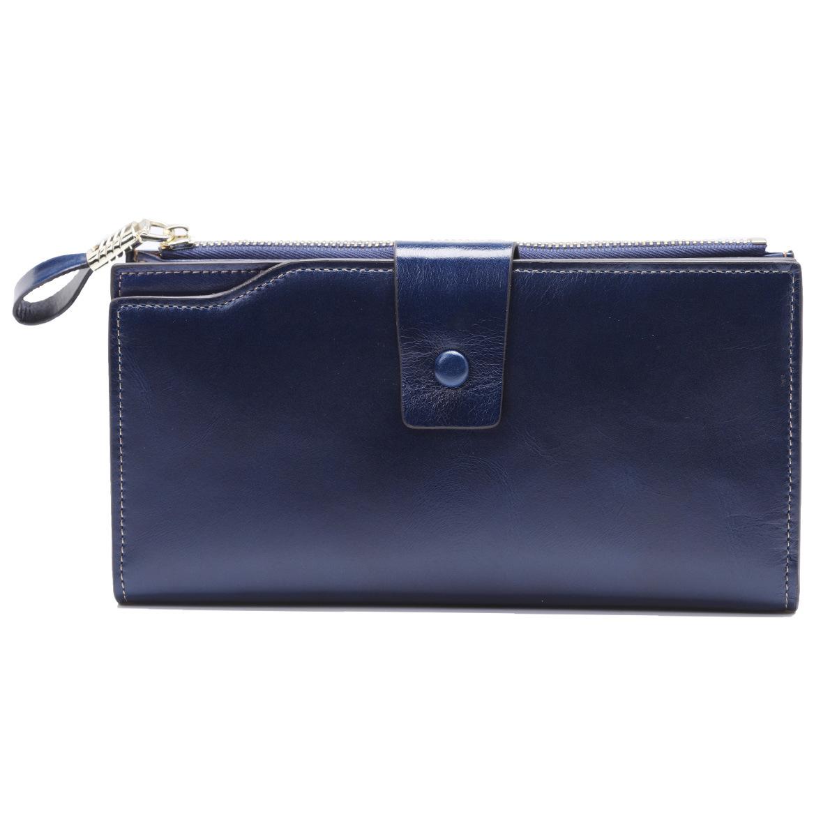 Cartera larga para mujer, venta al por mayor, de fábrica en Guangzhou, de piel auténtica, de primera capa, con múltiples ranuras para tarjetas, de piel de vaca.
