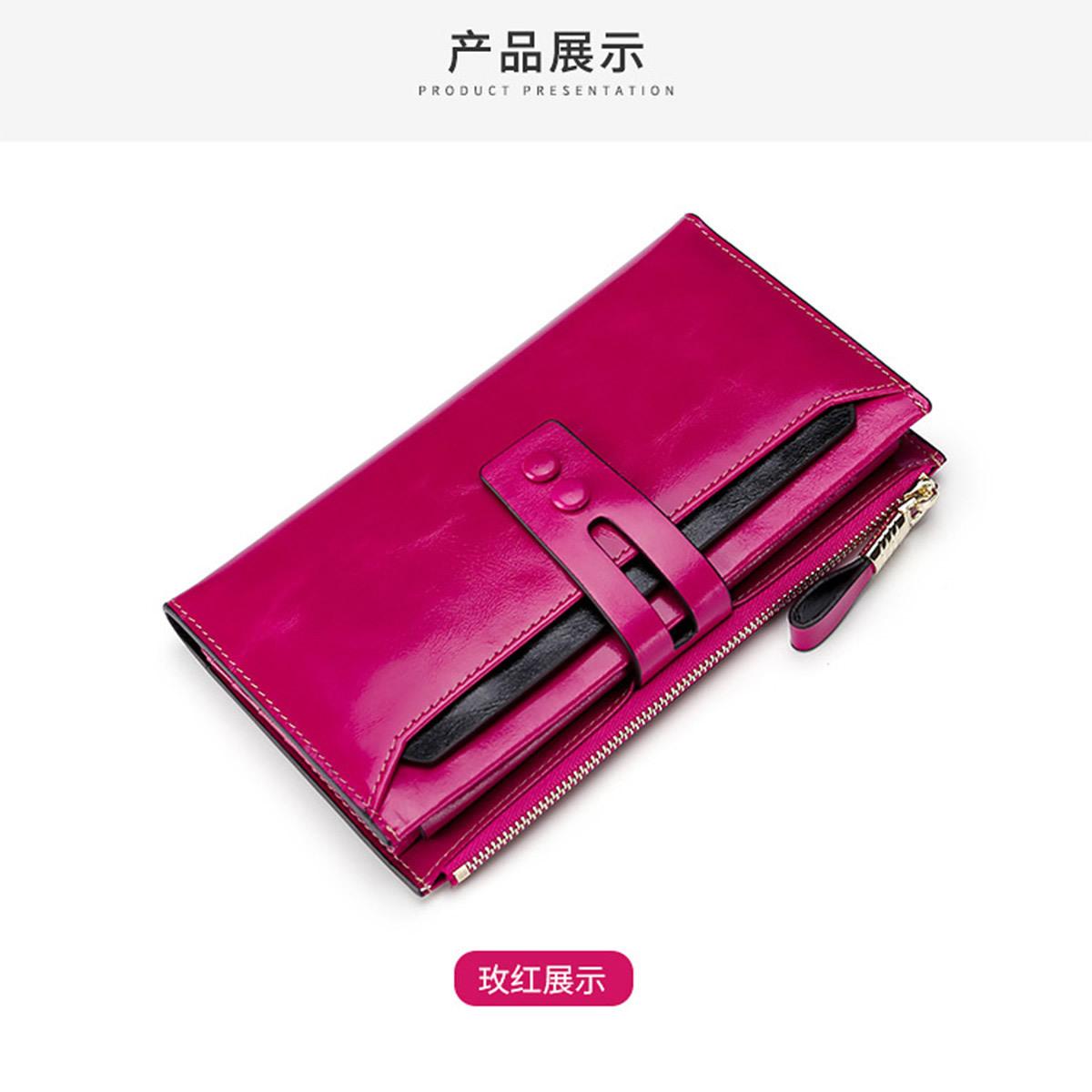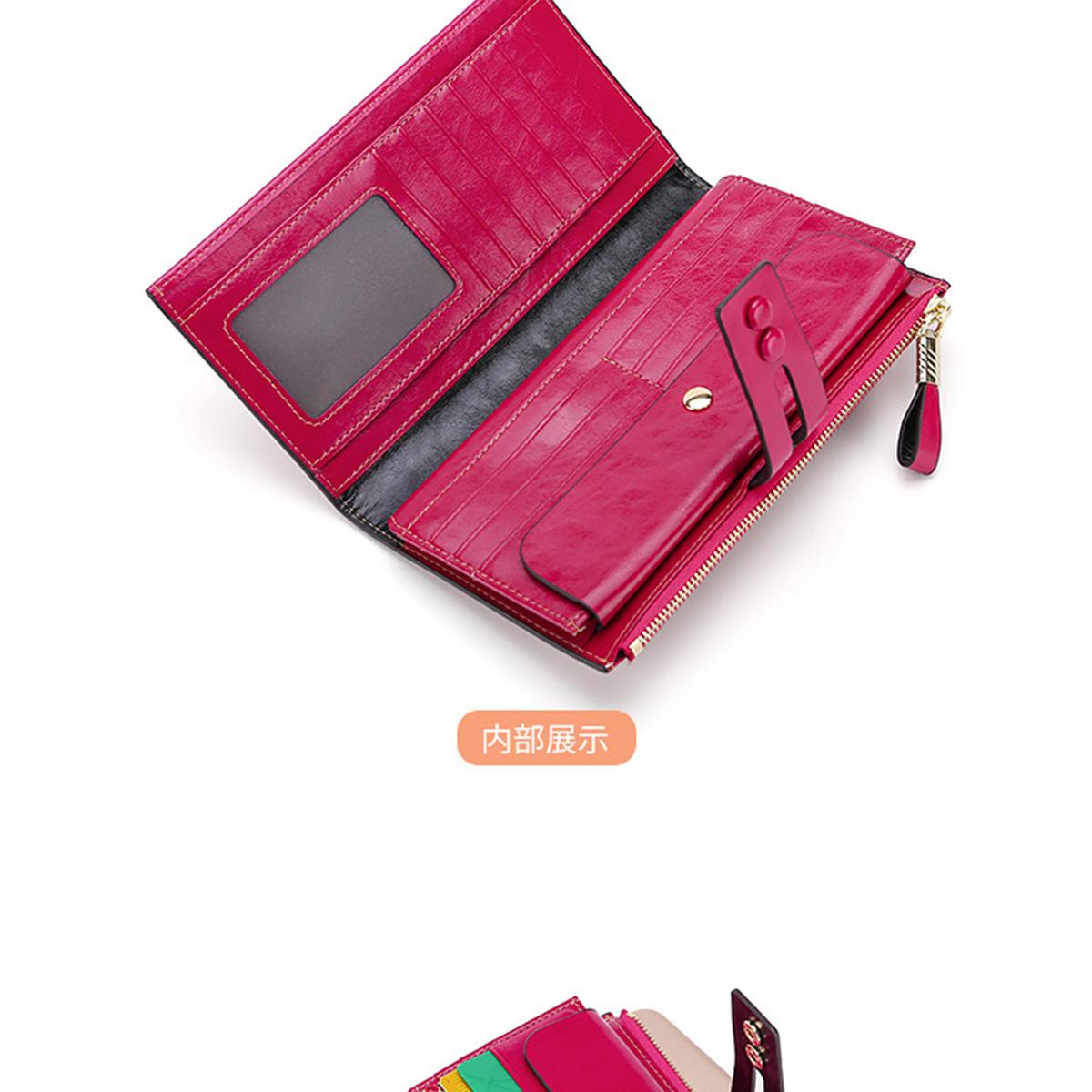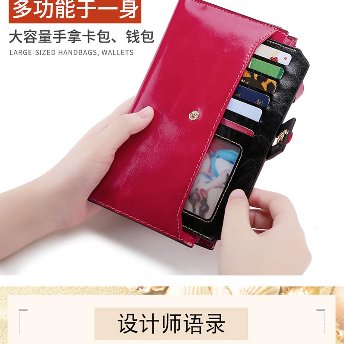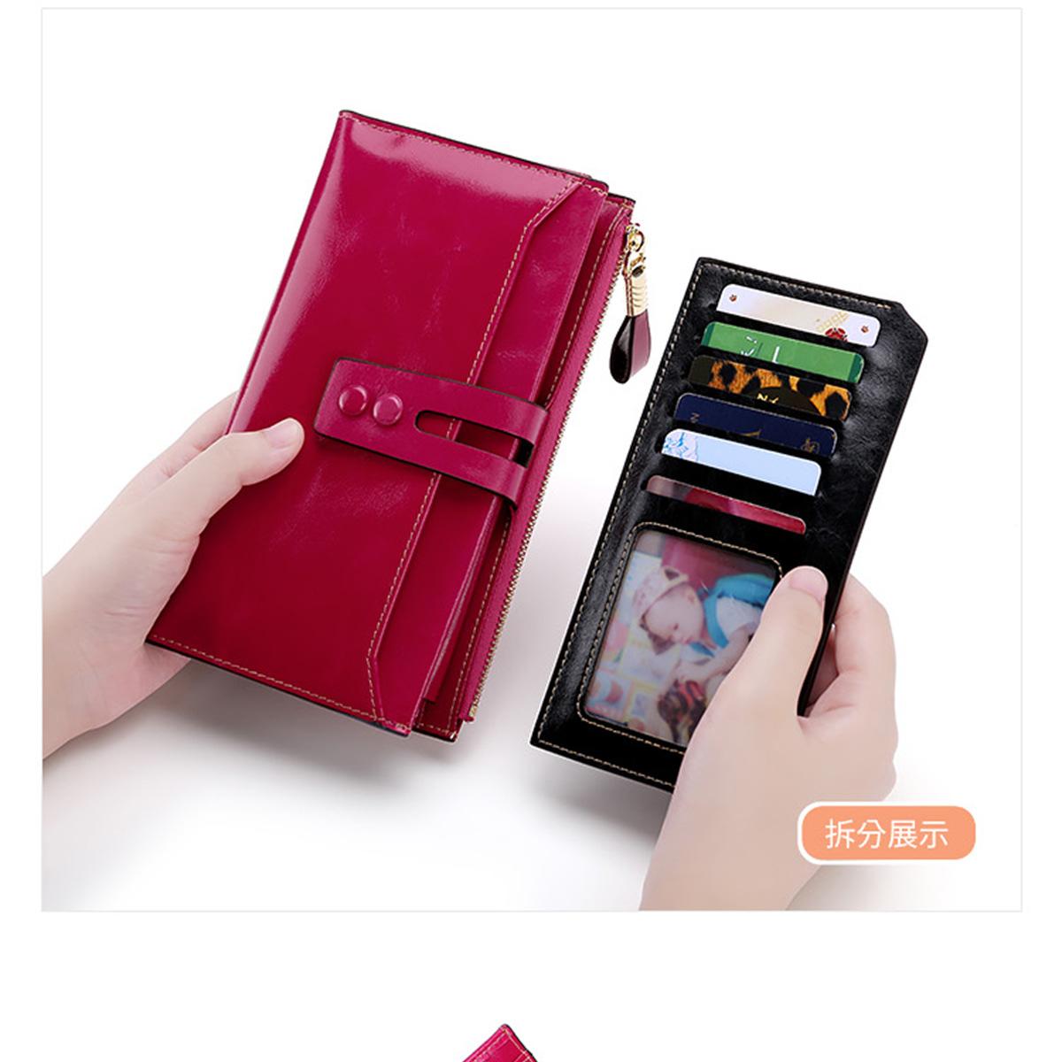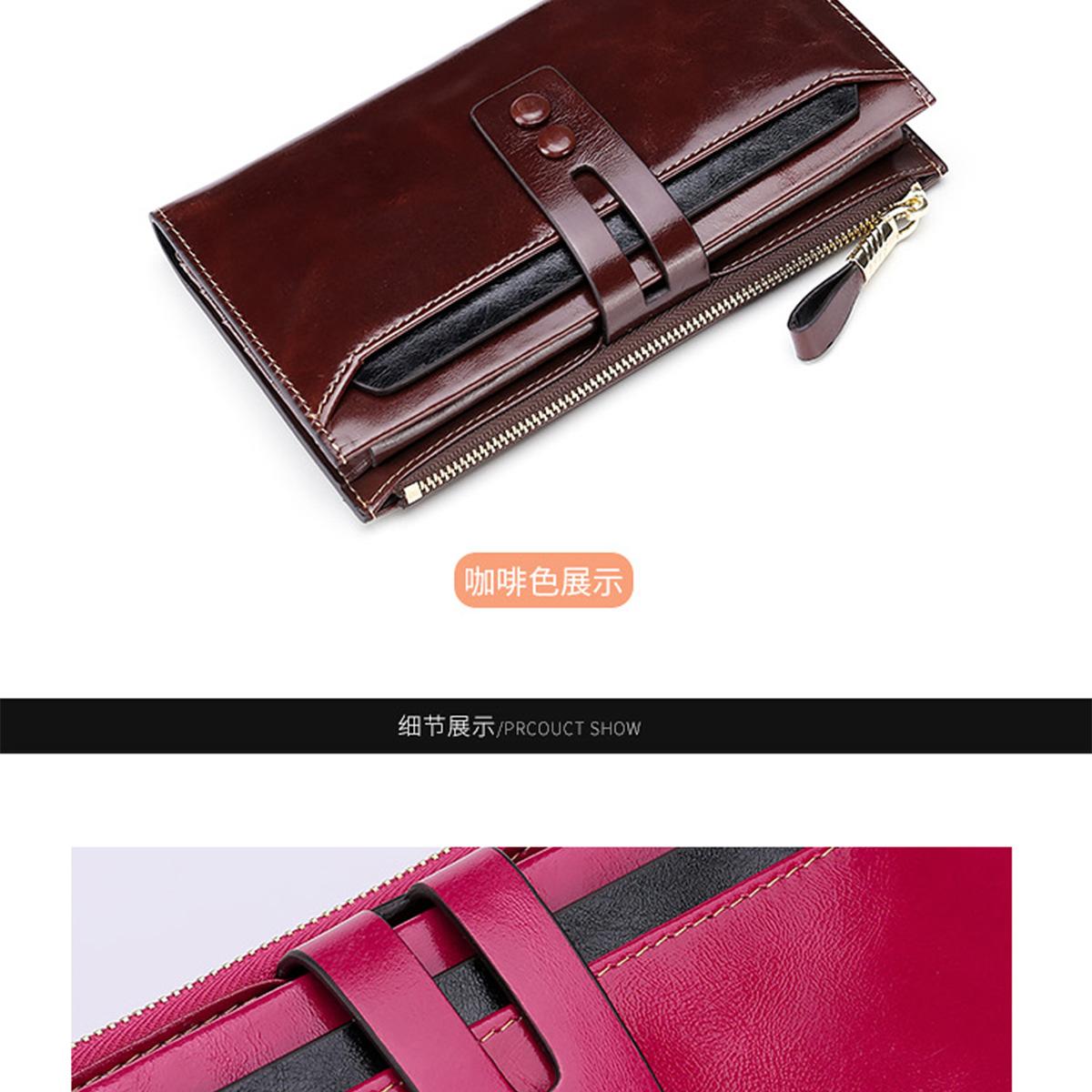 Billetera Larga de Piel Genuina para Mujer al Mayoreo Transfronterizo de Guangzhou, Billetera de Piel de Vaca de Alta Gama para Mujer, Bolso Clutch, Billetera Larga para Mujer