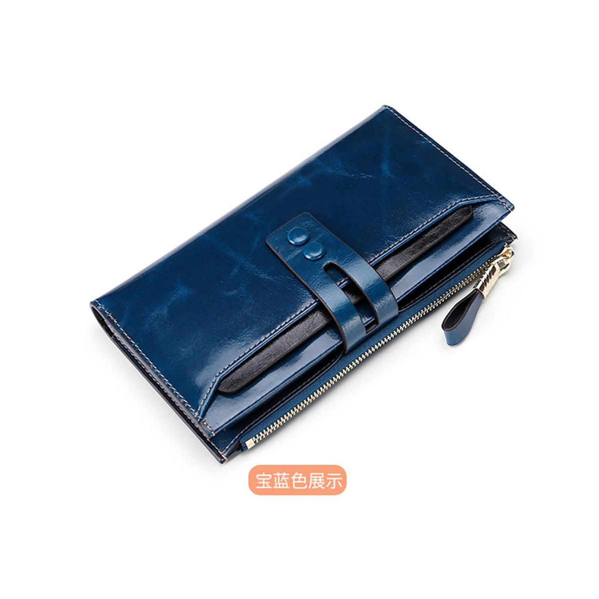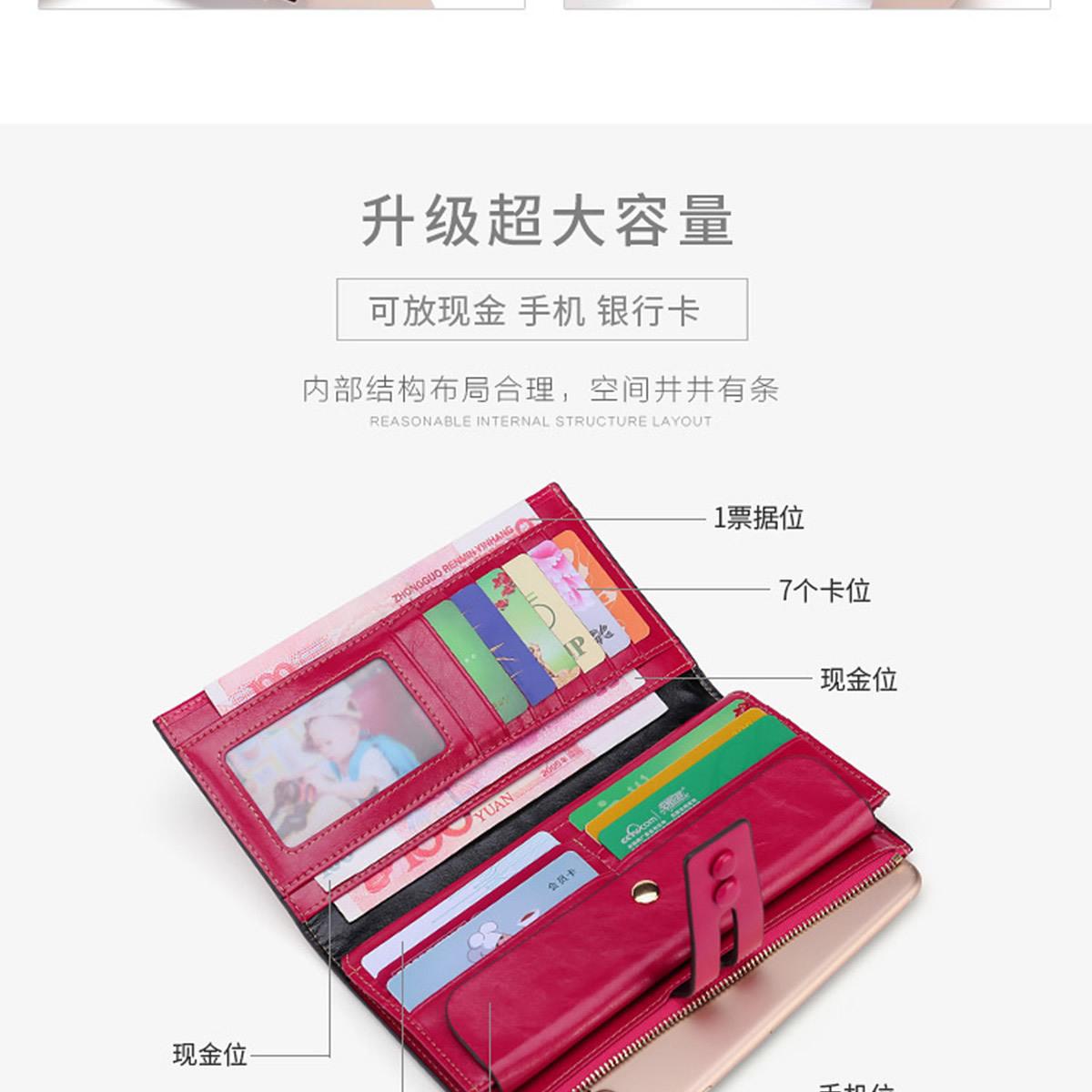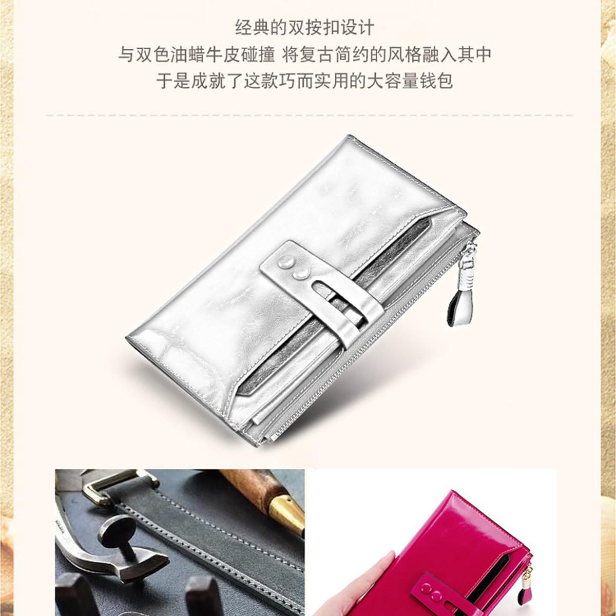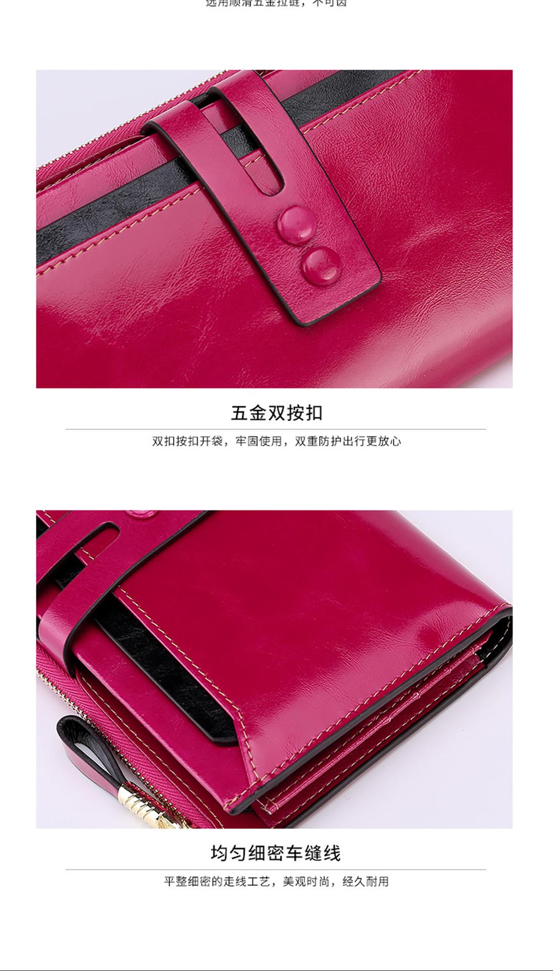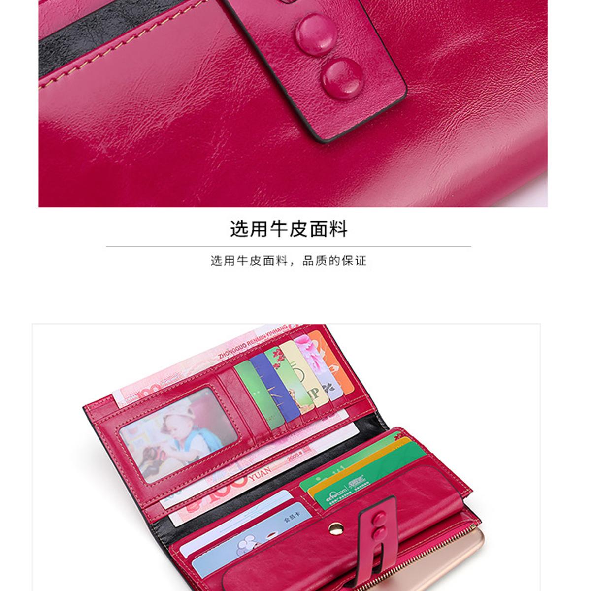 Billetera Larga de Piel Genuina para Mujer al Mayoreo Transfronterizo de Guangzhou, Billetera de Piel de Vaca de Alta Gama para Mujer, Bolso Clutch, Billetera Larga para Mujer