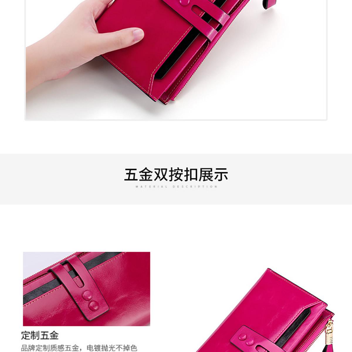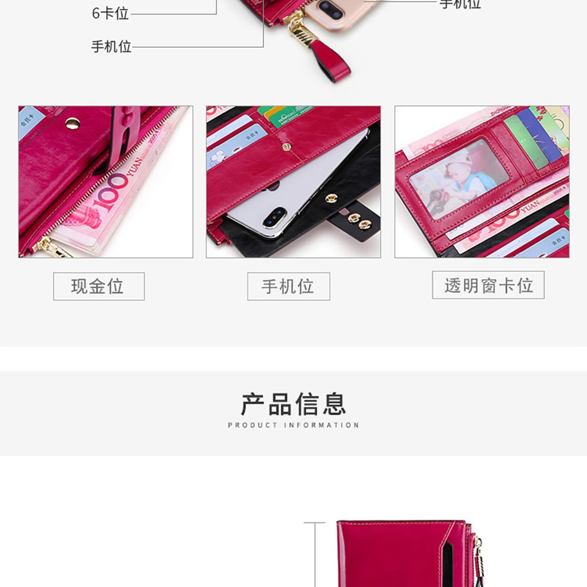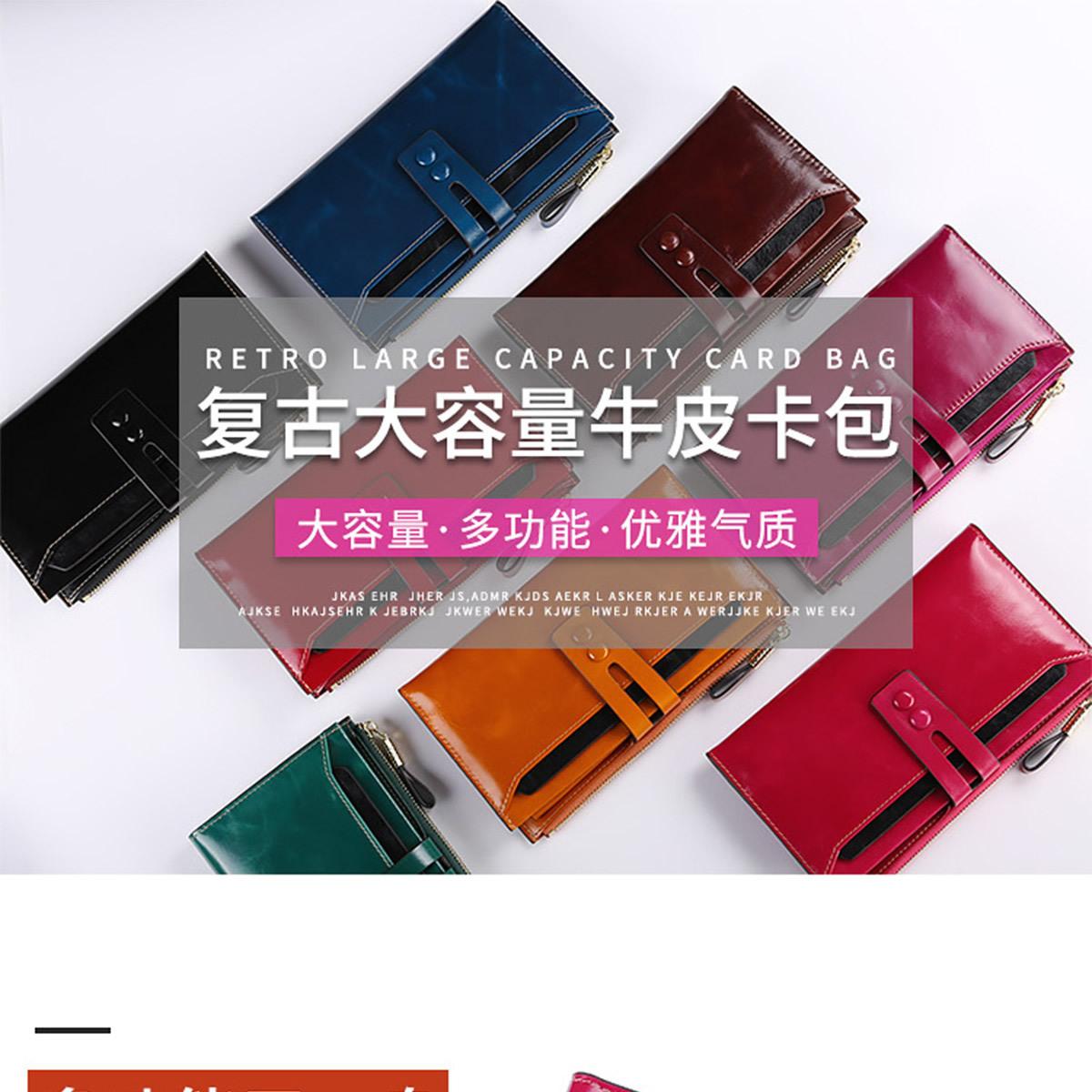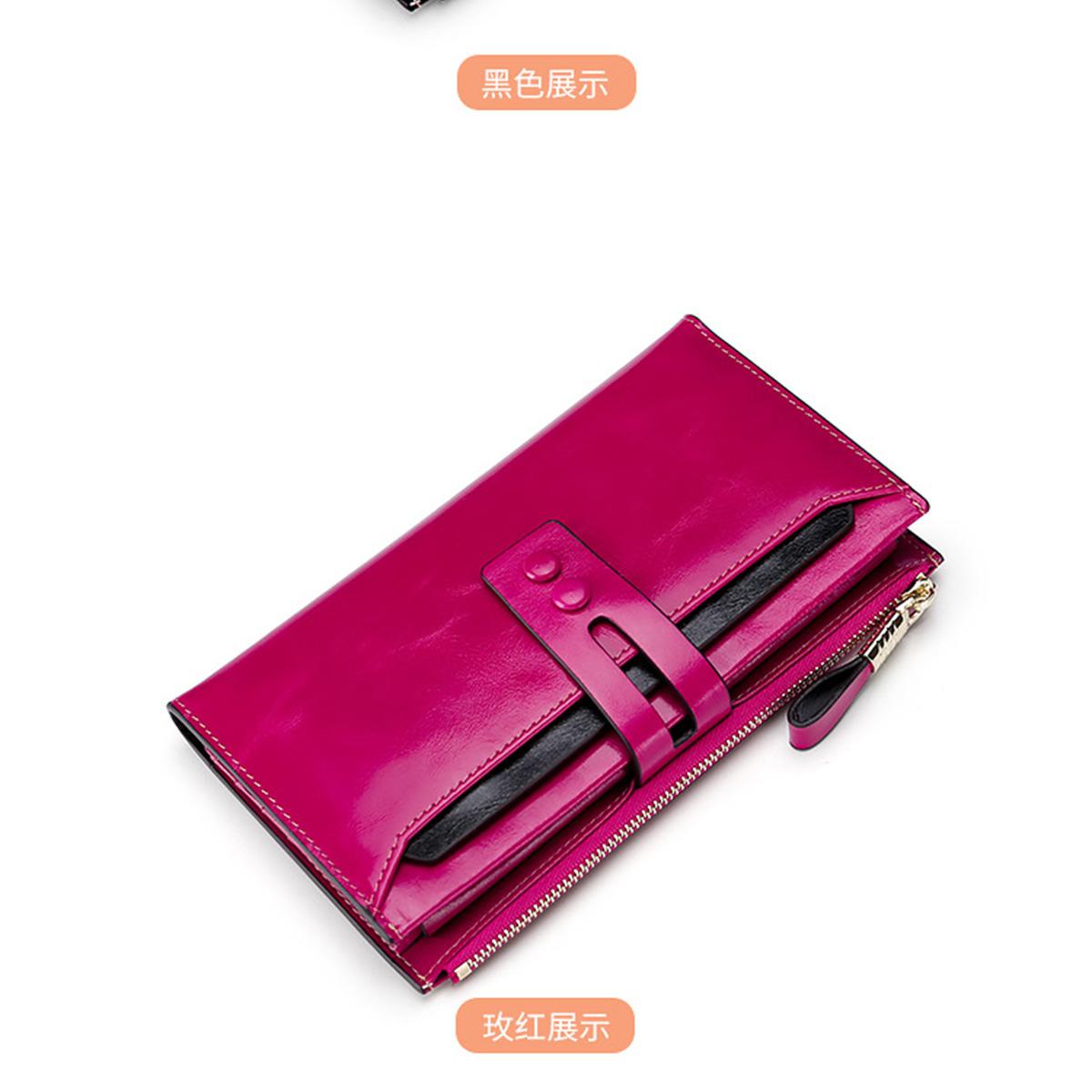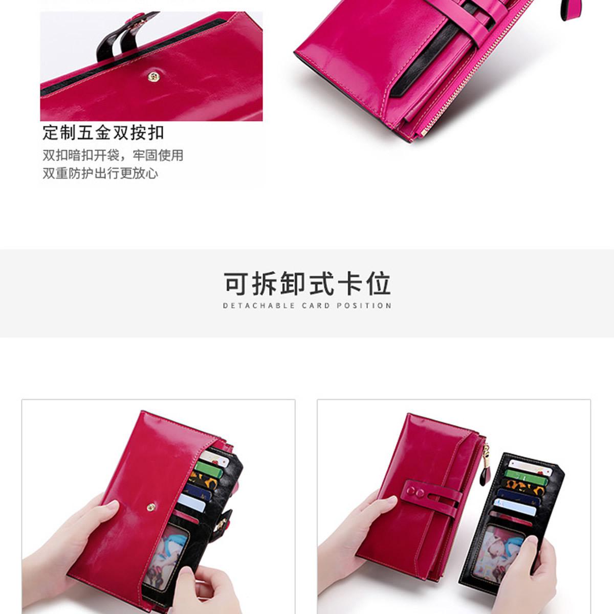 Billetera Larga de Piel Genuina para Mujer al Mayoreo Transfronterizo de Guangzhou, Billetera de Piel de Vaca de Alta Gama para Mujer, Bolso Clutch, Billetera Larga para Mujer