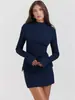 Otoño Nueva Moda Sexy Hottie Falda de Cadera Elegante Slim Color Sólido Jersey Vestido de Manga Larga para Mujer
