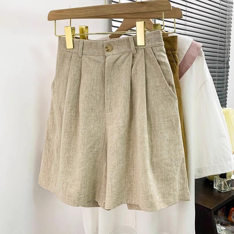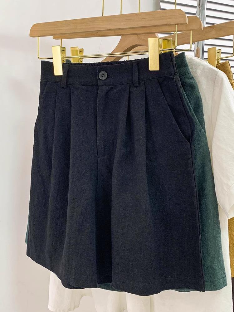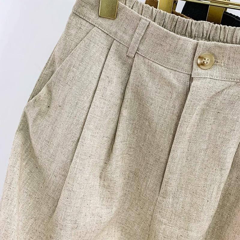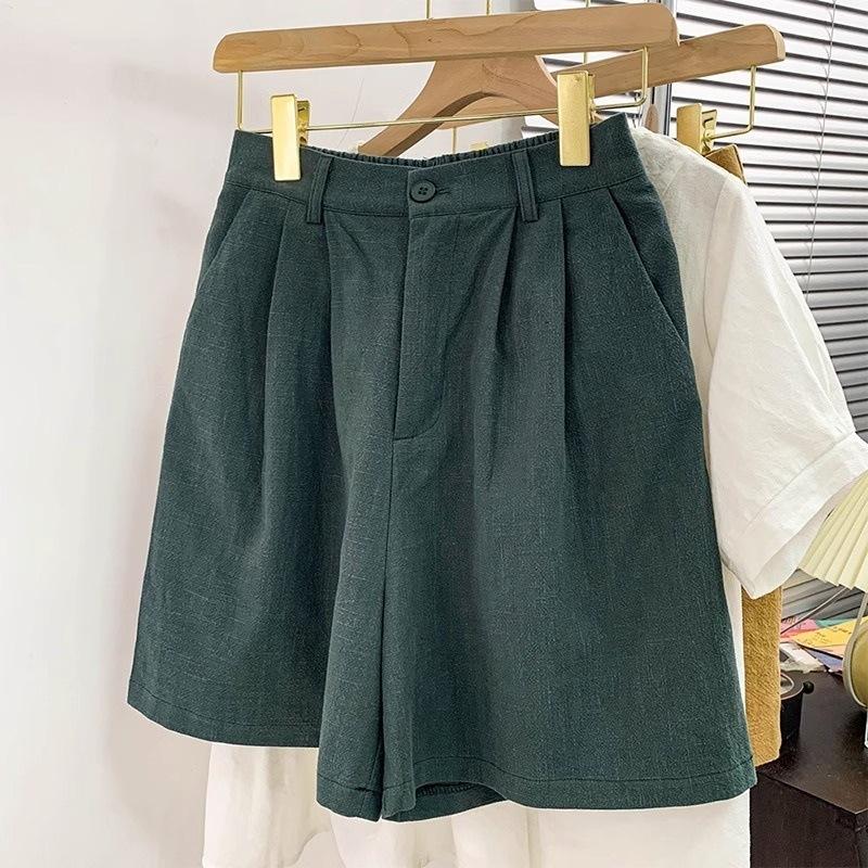 Pantalones de Verano 2025 de Algodón y Lino de Pierna Ancha para Mujer, Estilo Japonés de Cintura Alta Holgados Casuales Rectos A-Line Pantalones Cortos de Traje de Cinco Puntos