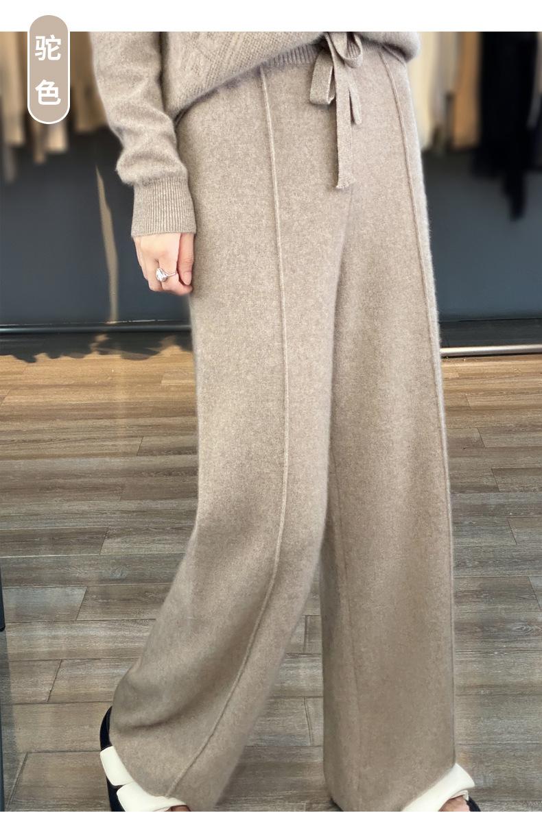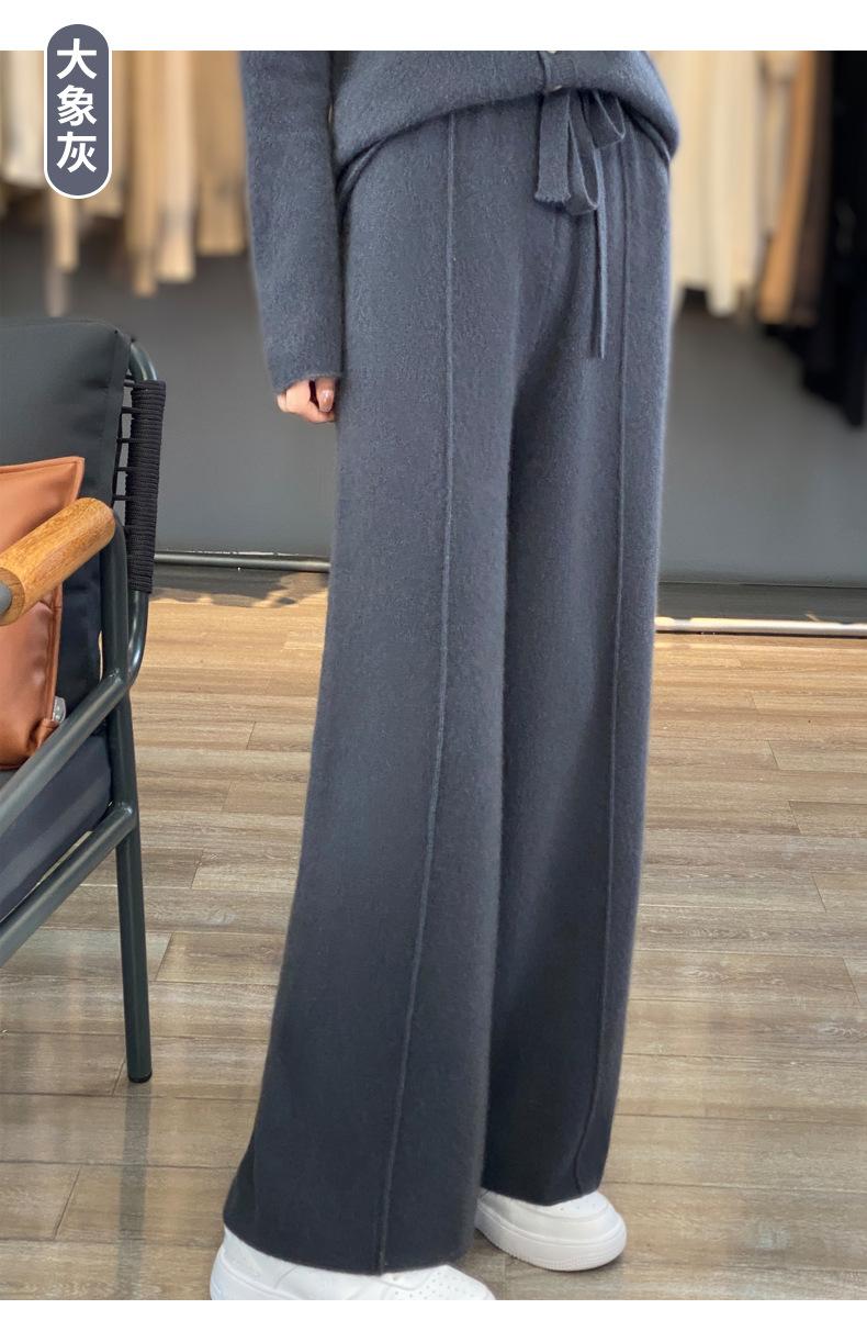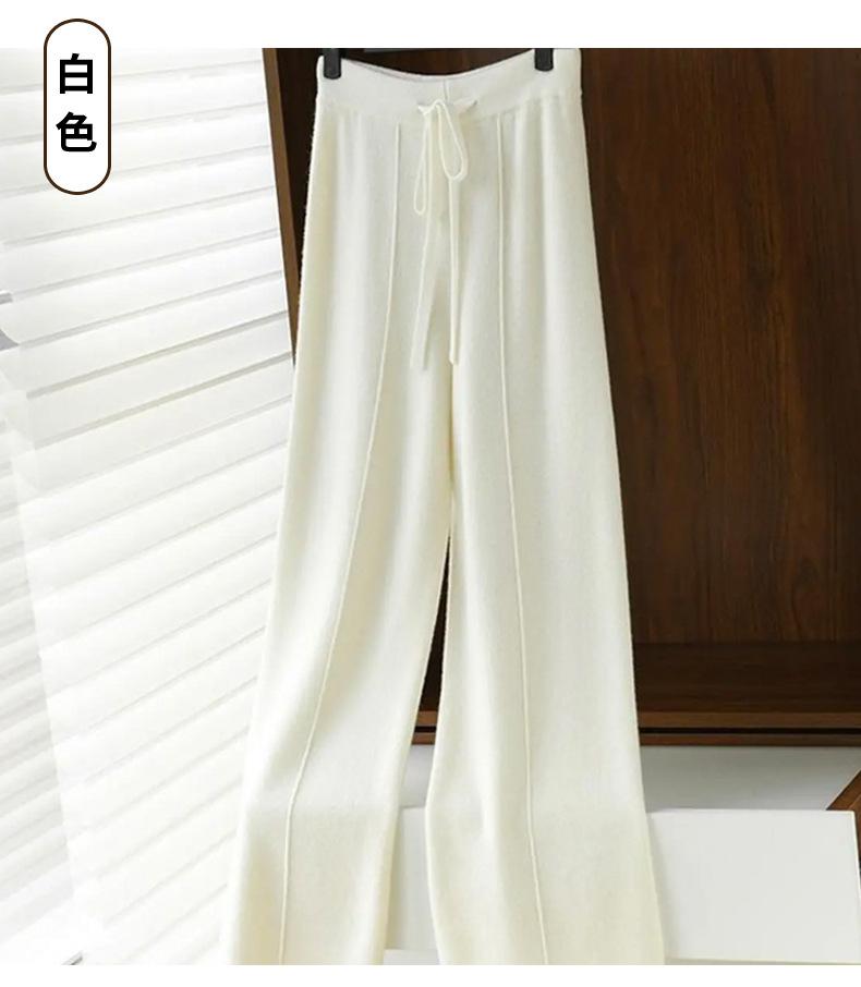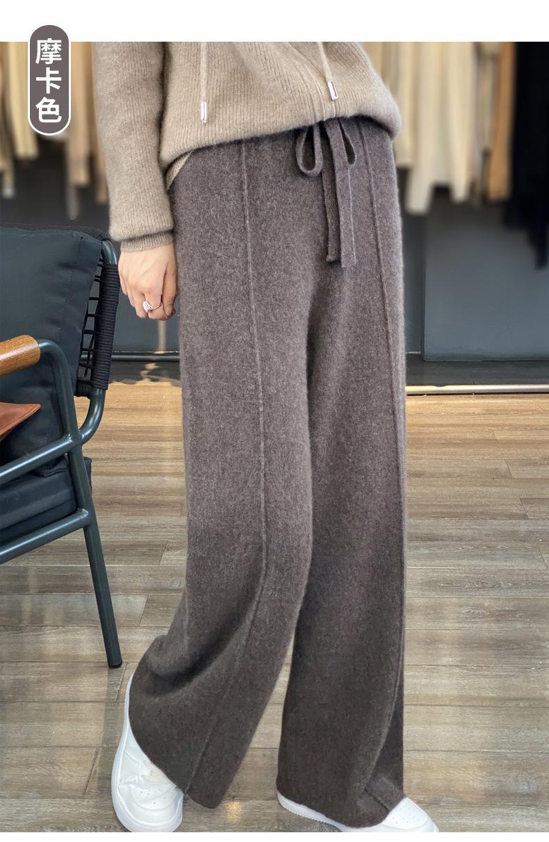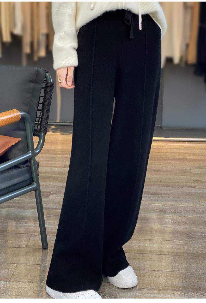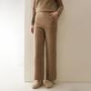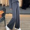 Pantalones anchos de punto para otoño e invierno, pantalones rectos de costura media para mujer, pantalones casuales de cintura alta elástica, pantalones de lana