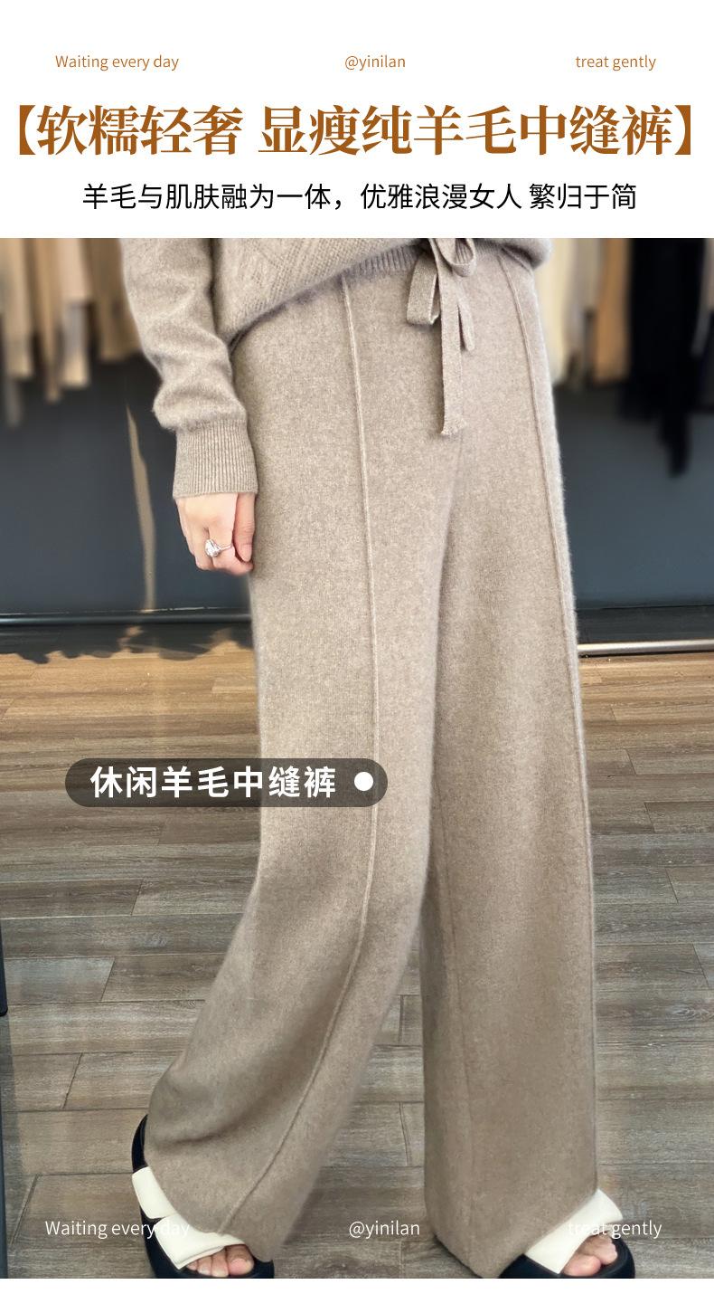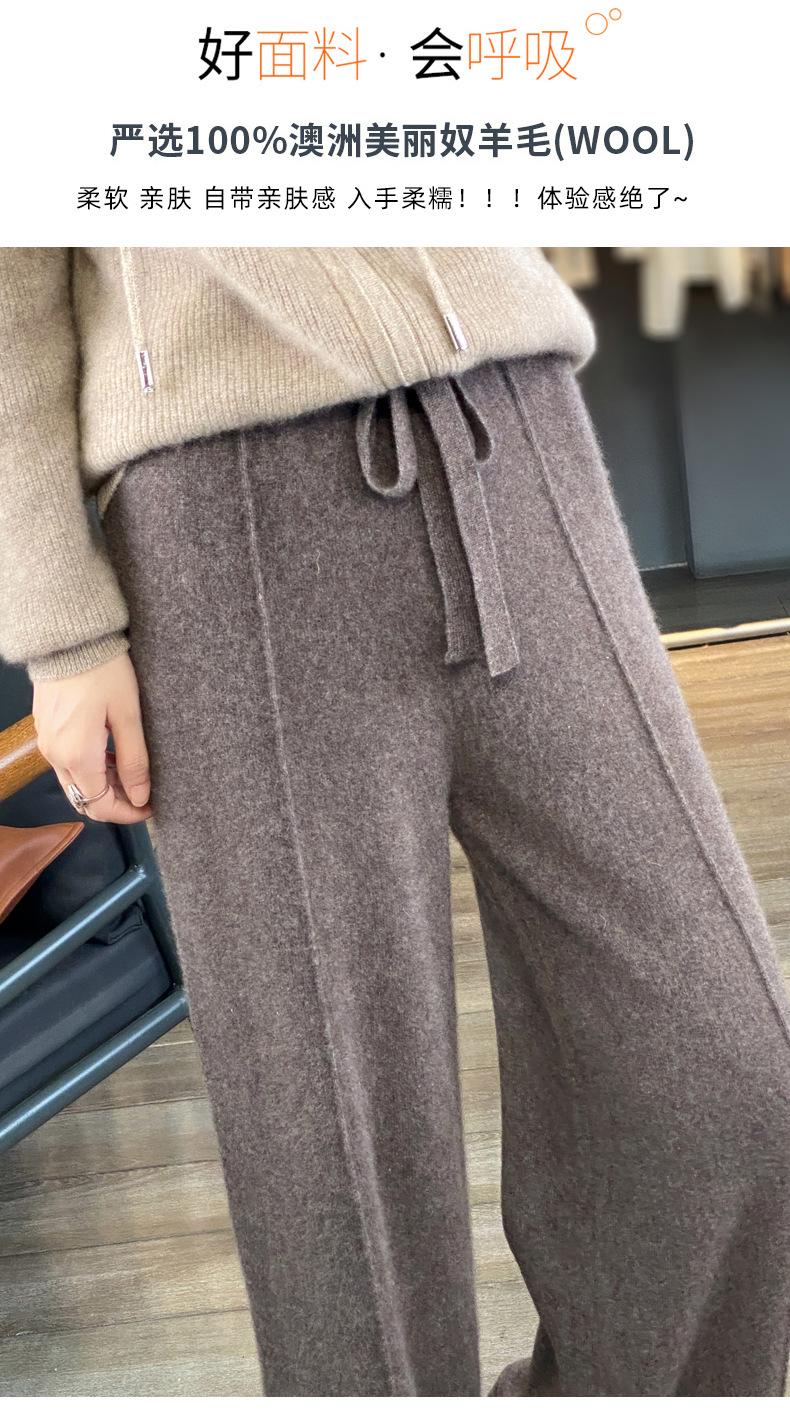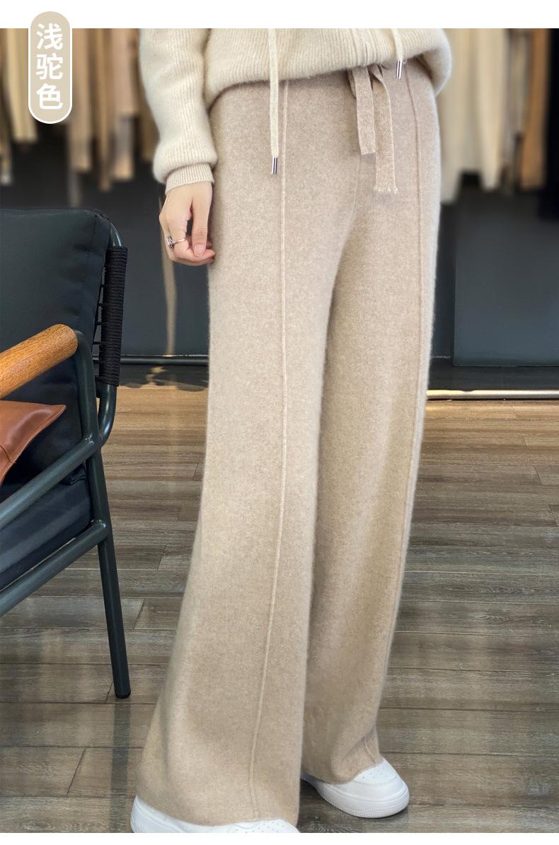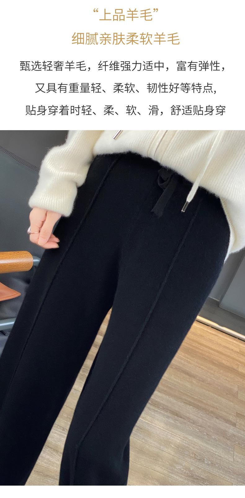 Pantalones anchos de punto para otoño e invierno, pantalones rectos de costura media para mujer, pantalones casuales de cintura alta elástica, pantalones de lana