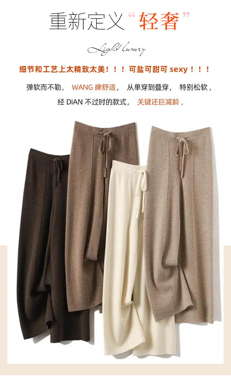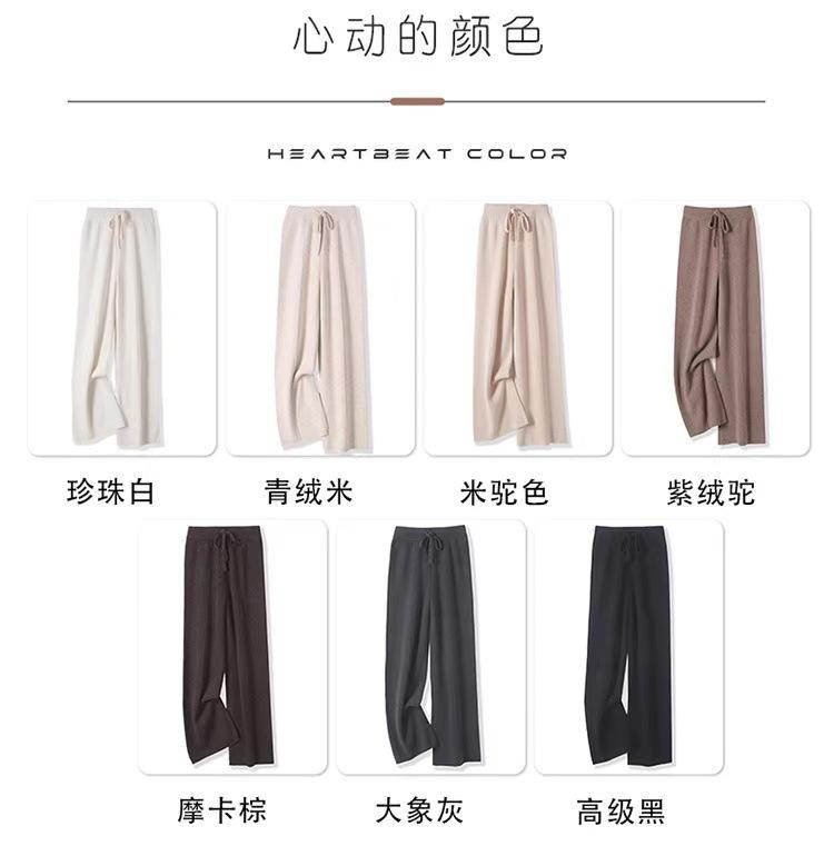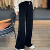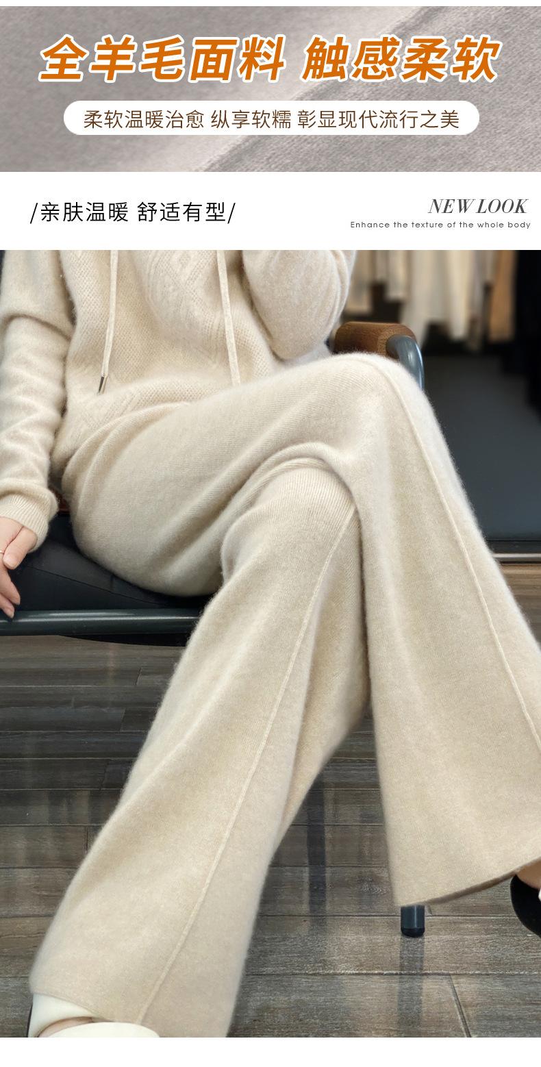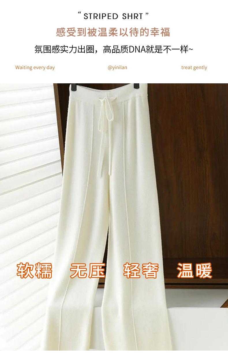 Pantalones anchos de punto para otoño e invierno, pantalones rectos de costura media para mujer, pantalones casuales de cintura alta elástica, pantalones de lana