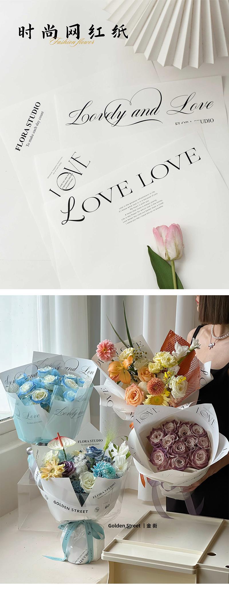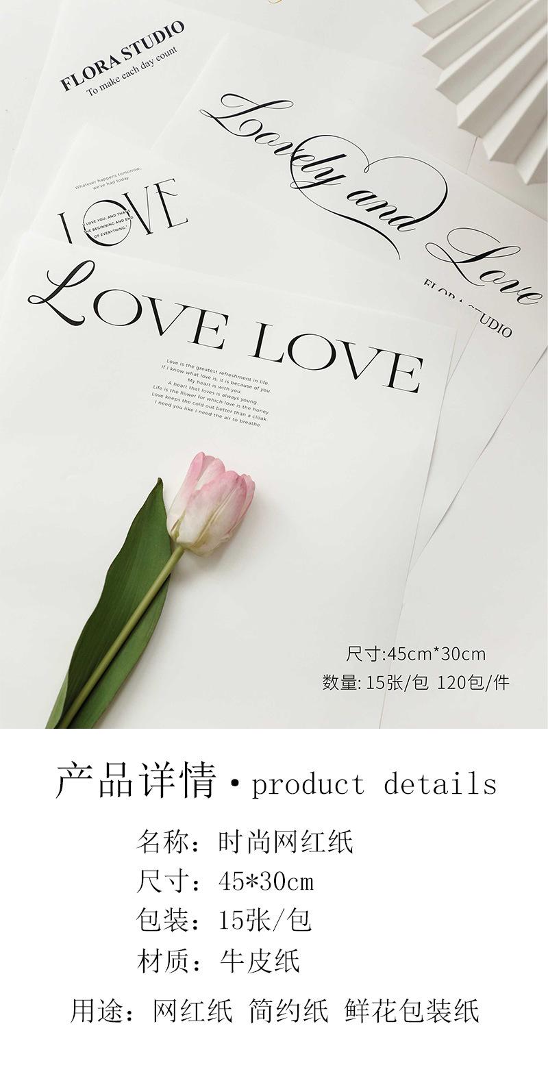Moda Internet Papel Rojo Inglés Papel Simple Papel Kraft Papel de Envoltura de Flores Papel de Envoltura de Flores Materiales de Floristería Día de San Valentín