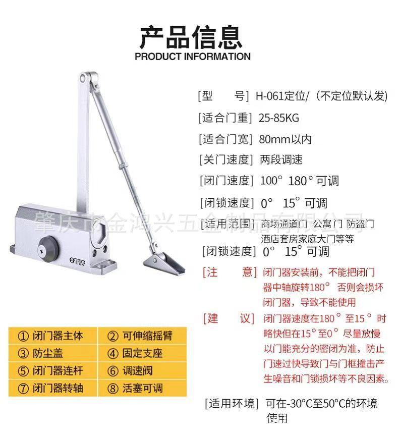 Cierrapuertas Hidráulico con Amortiguador para Puertas Cortafuego, Abridor y Cierrapuertas Silencioso para el Hogar, Cierrapuertas Correderas