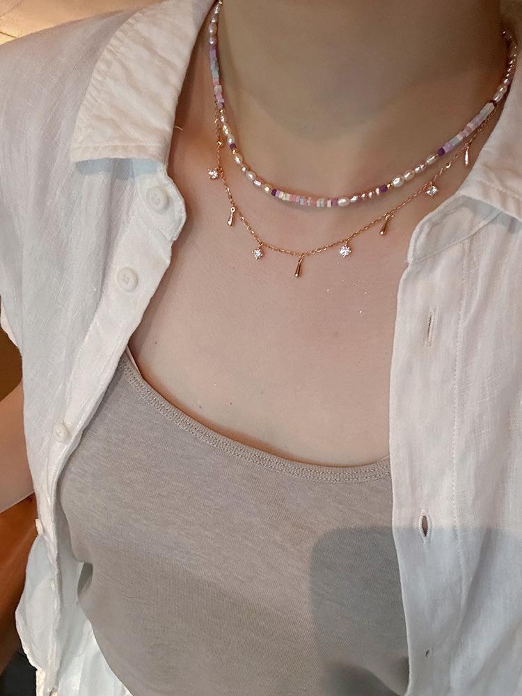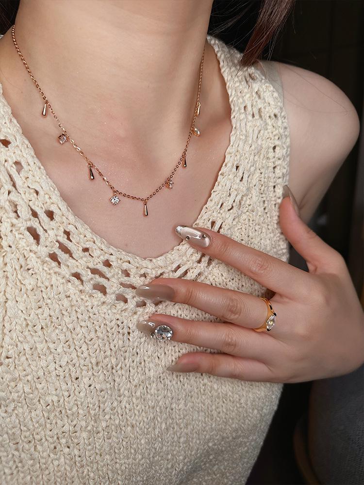 Collar ligero de lujo de alta gama con diamantes simples y gotas de agua para mujer, gargantilla apilada con cadena de clavícula 2024.
