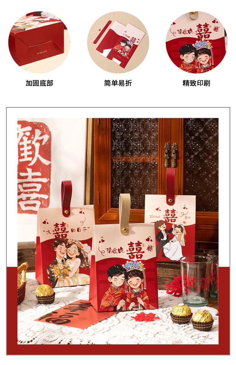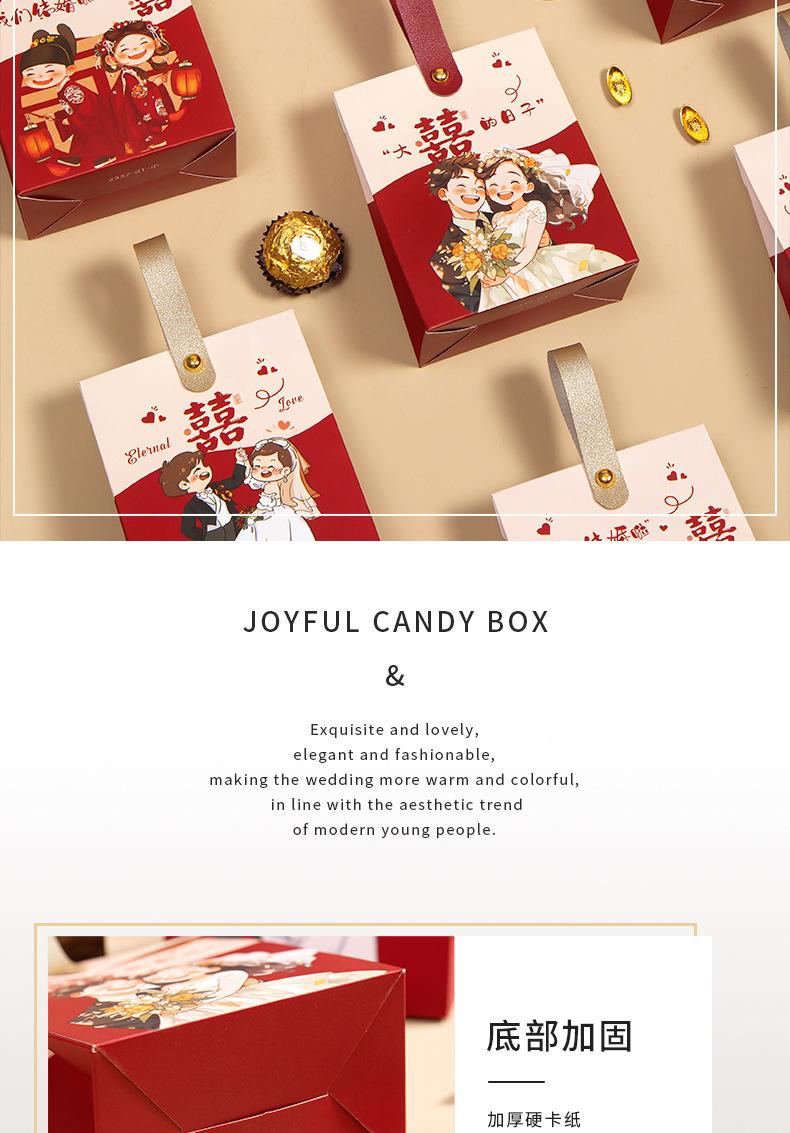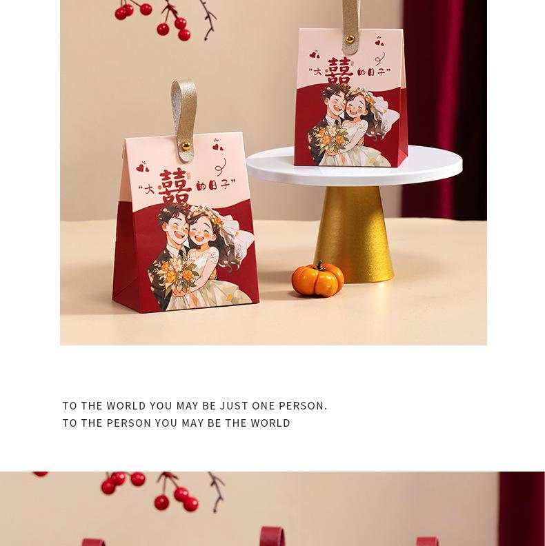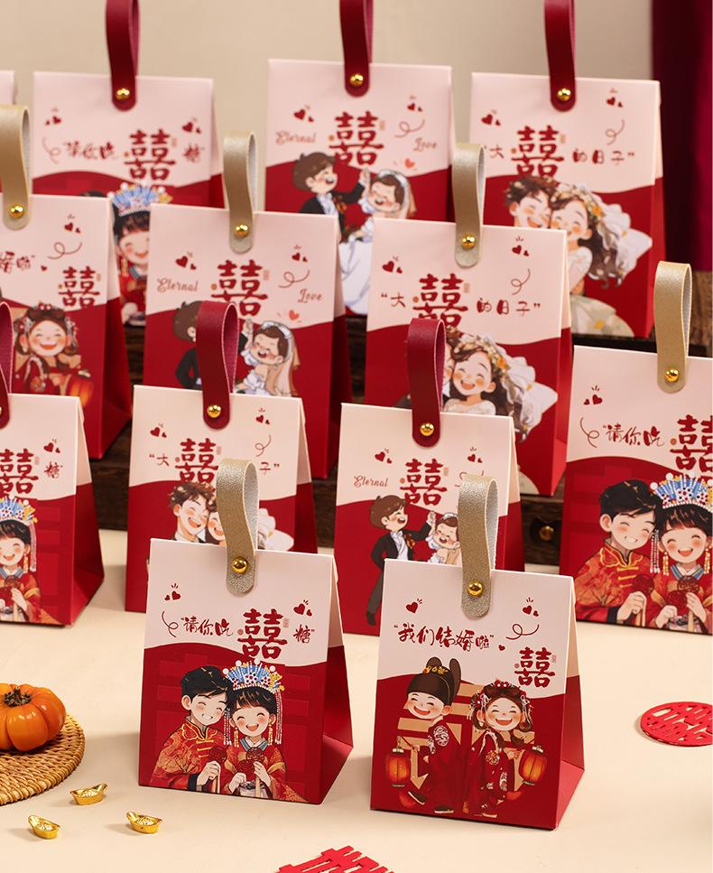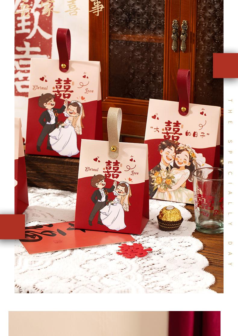 Caja de dulces de boda, portátil, para acompañar regalos, bolsa de dulces, caja de papel con dibujos animados de sentido avanzado, caja de embalaje para regalo de compromiso y boda.