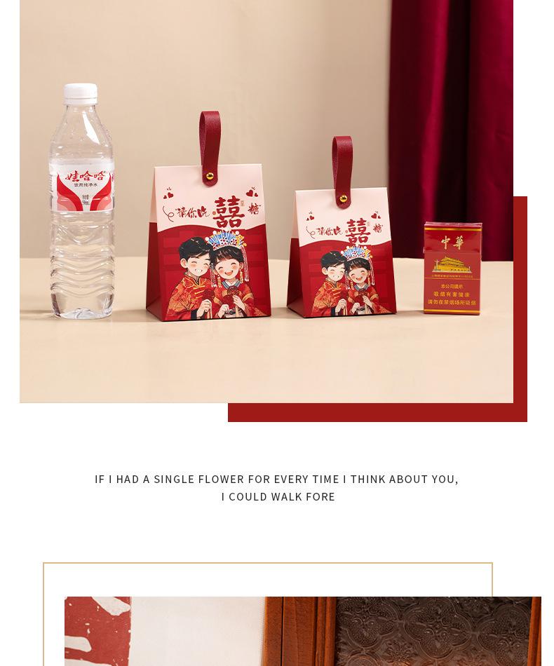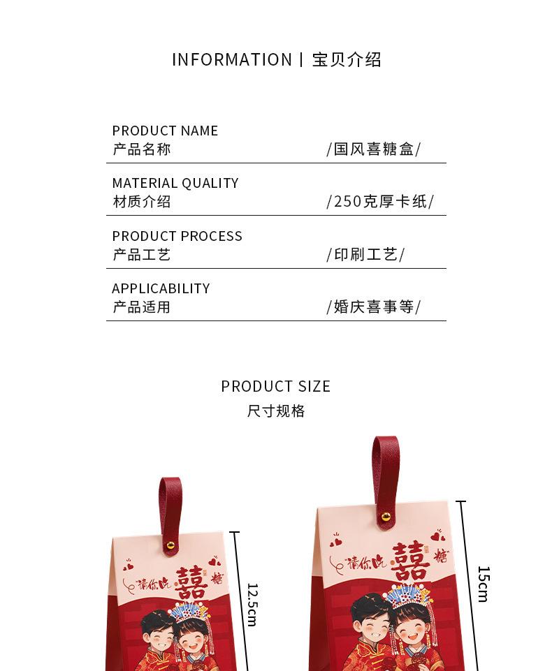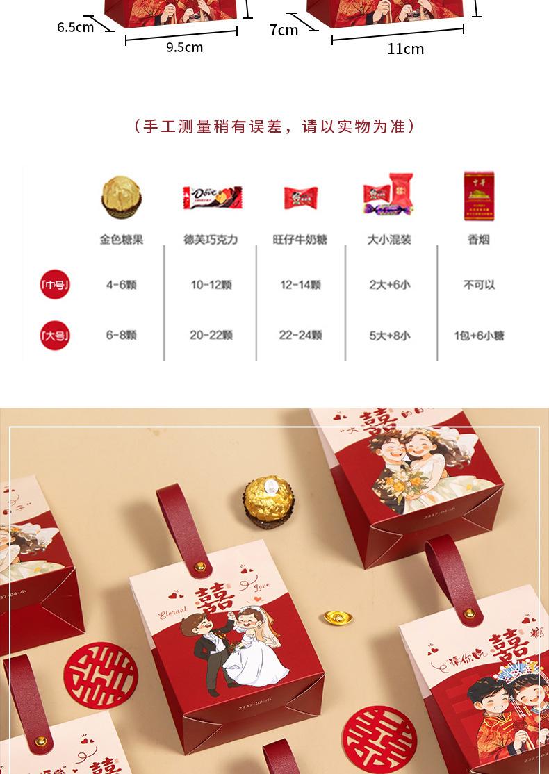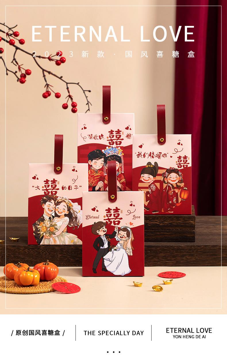 Caja de dulces de boda, portátil, para acompañar regalos, bolsa de dulces, caja de papel con dibujos animados de sentido avanzado, caja de embalaje para regalo de compromiso y boda.