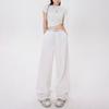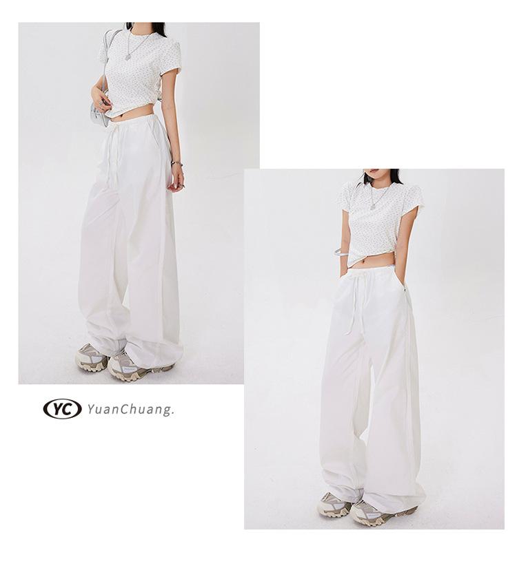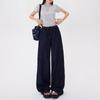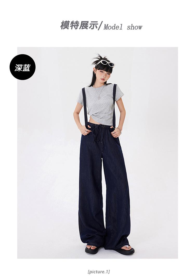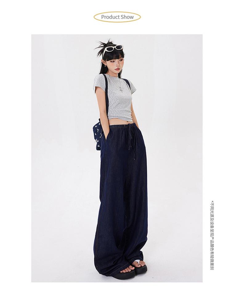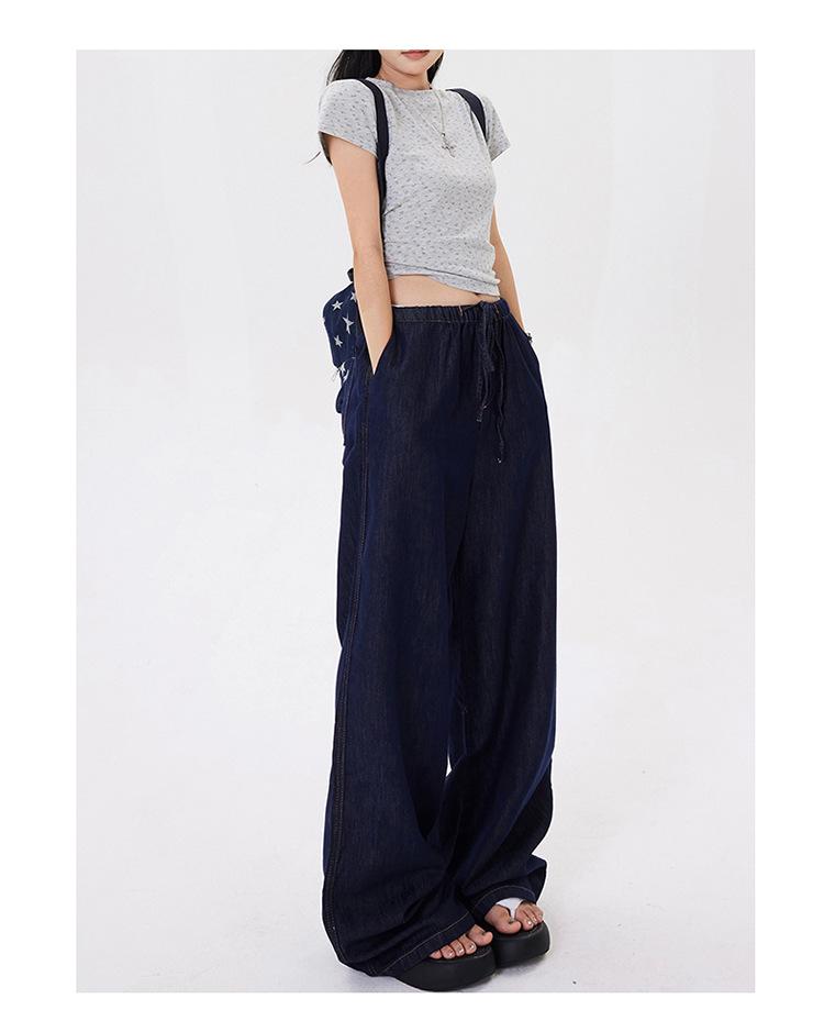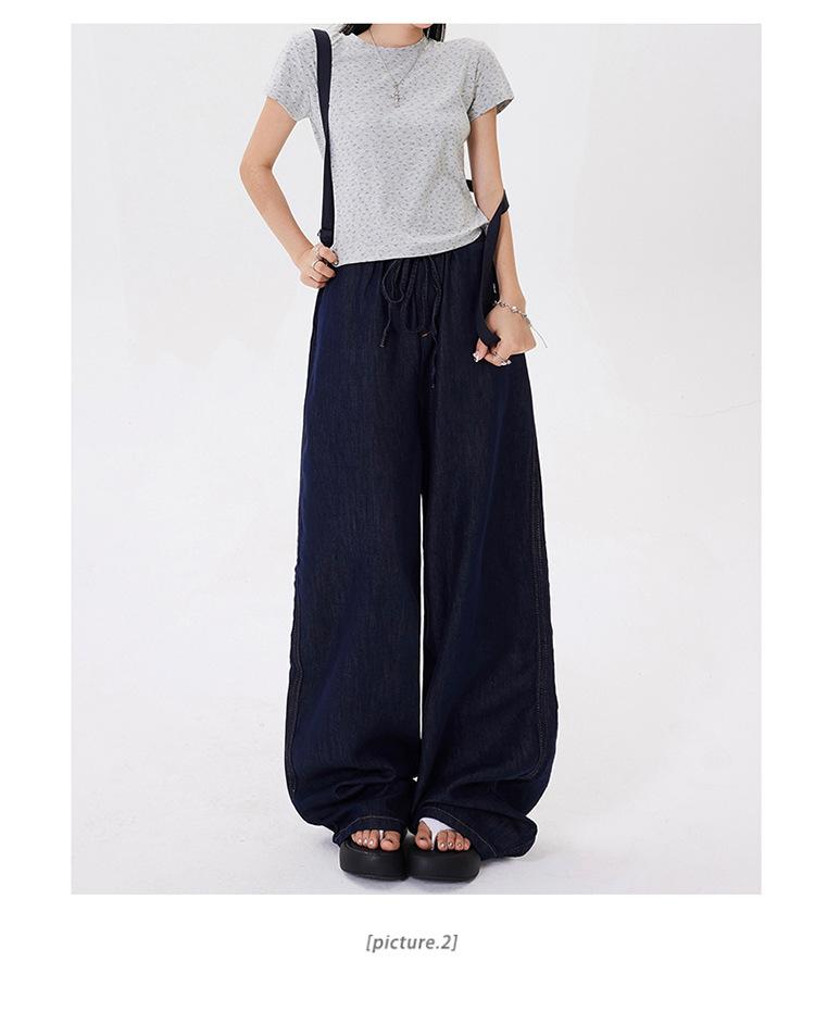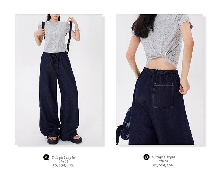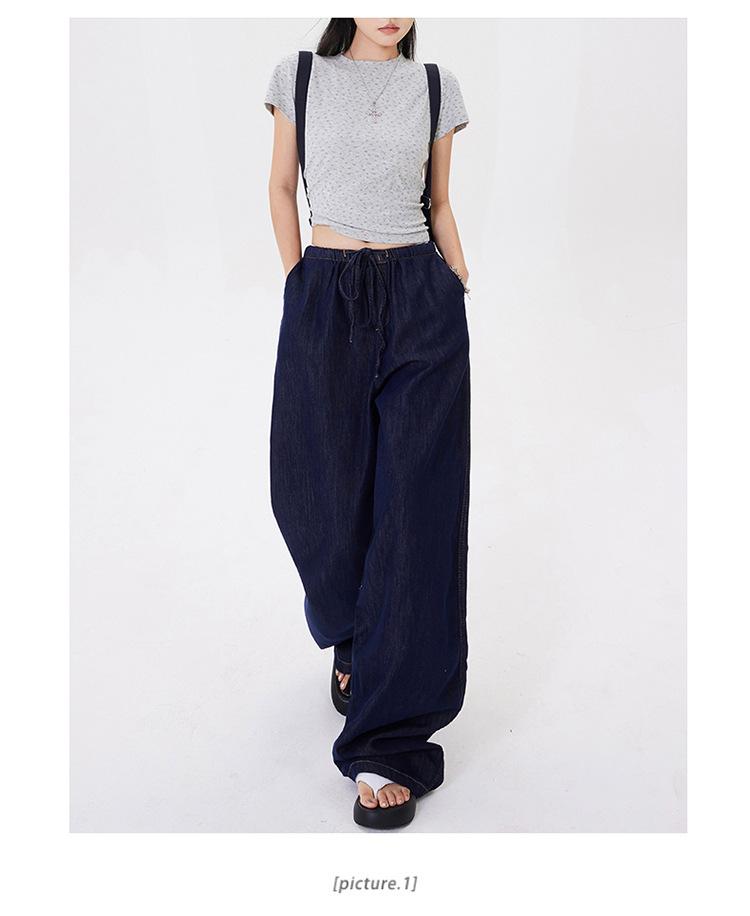 Jeans blancos elegantes y holgados de pierna ancha para mujer, mezclilla delgada azul con cordón en la cintura elástica, pantalones rectos delgados y versátiles