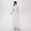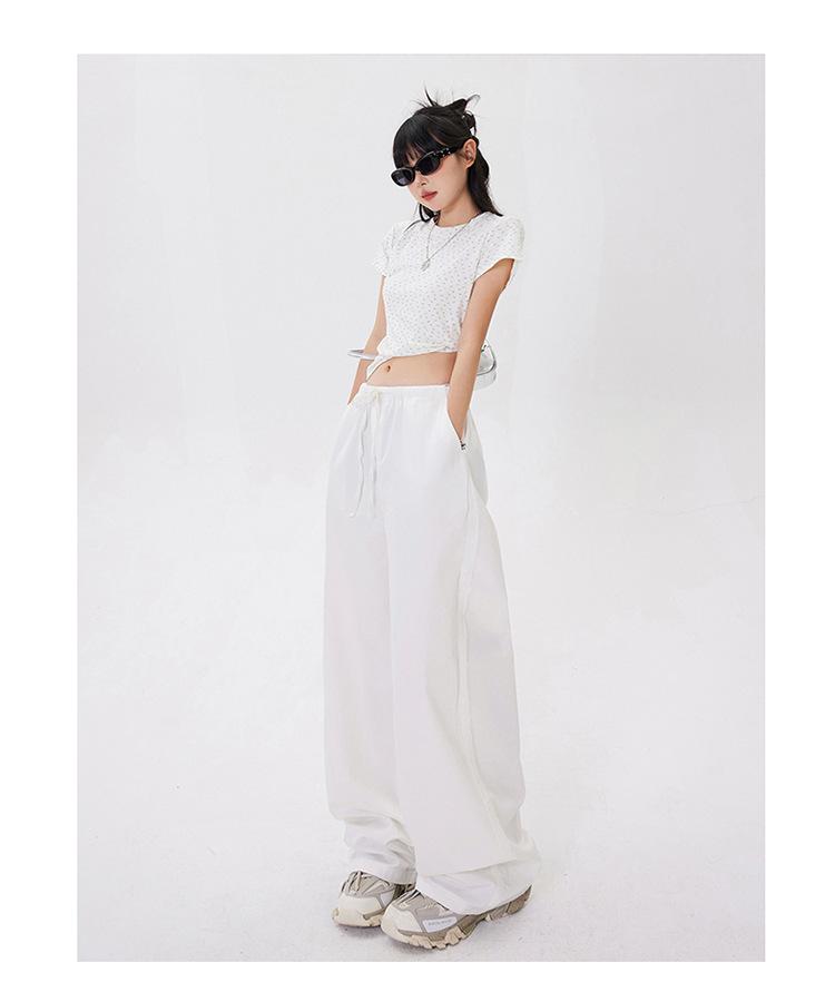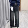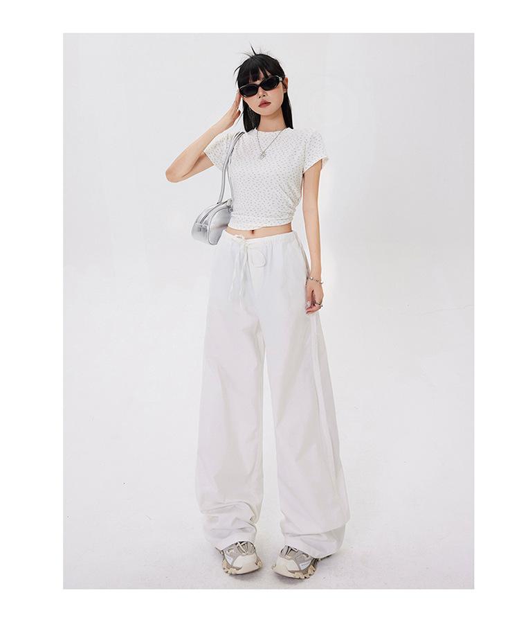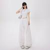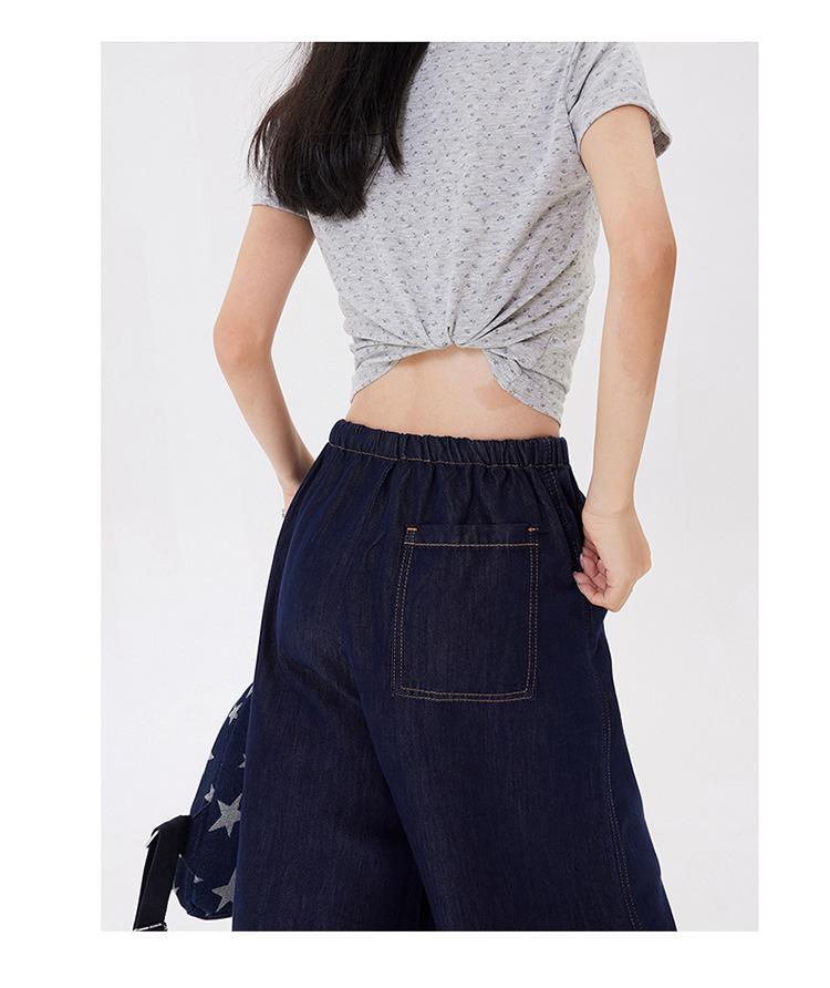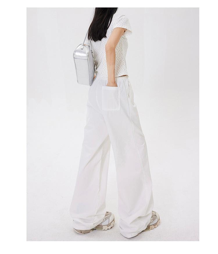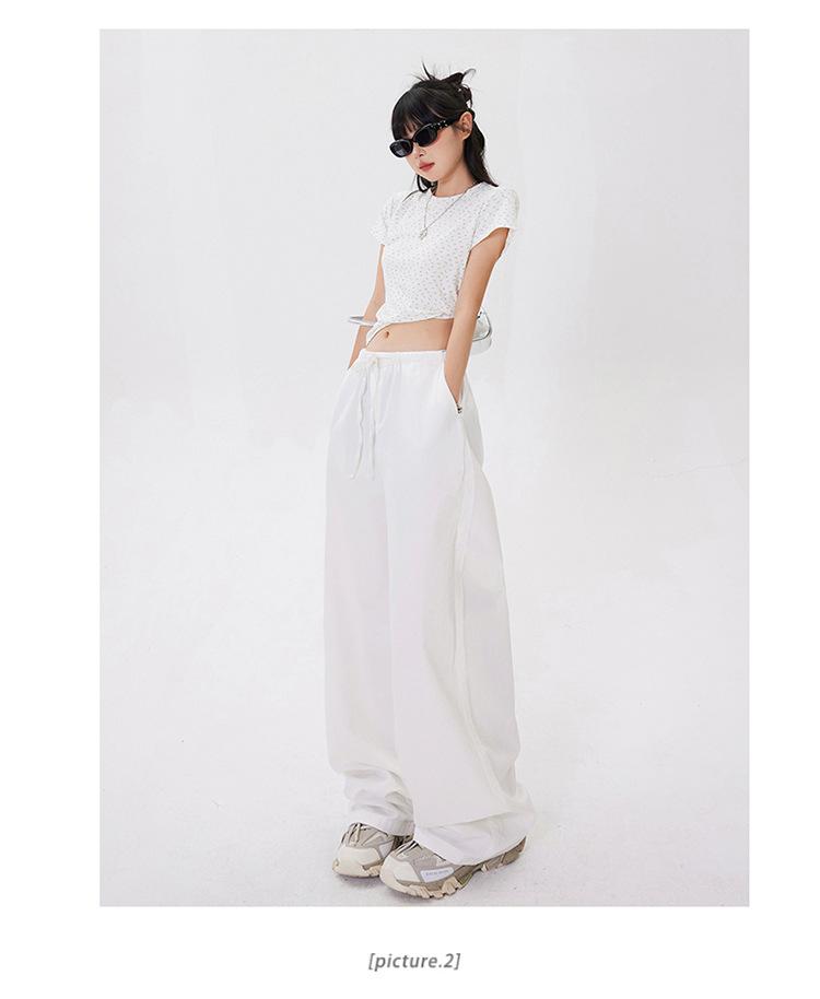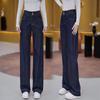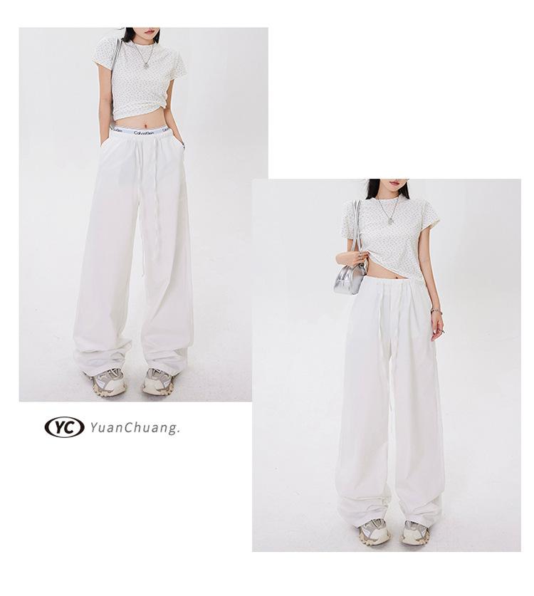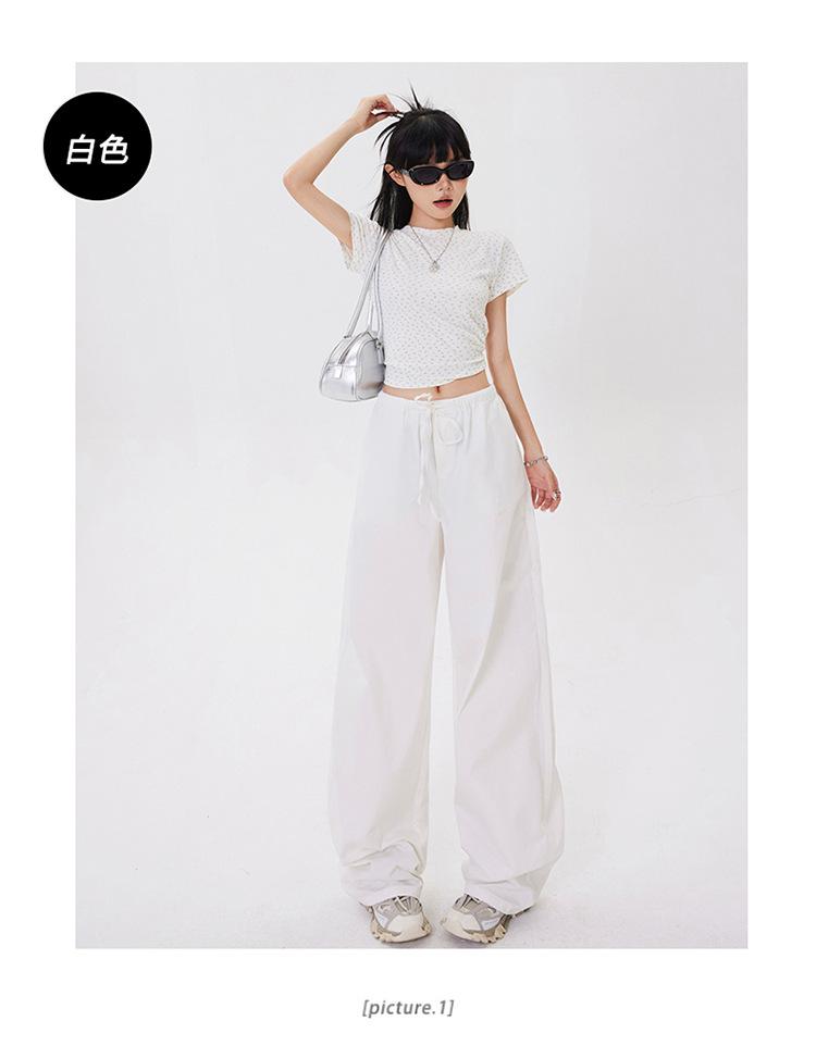 Jeans blancos elegantes y holgados de pierna ancha para mujer, mezclilla delgada azul con cordón en la cintura elástica, pantalones rectos delgados y versátiles
