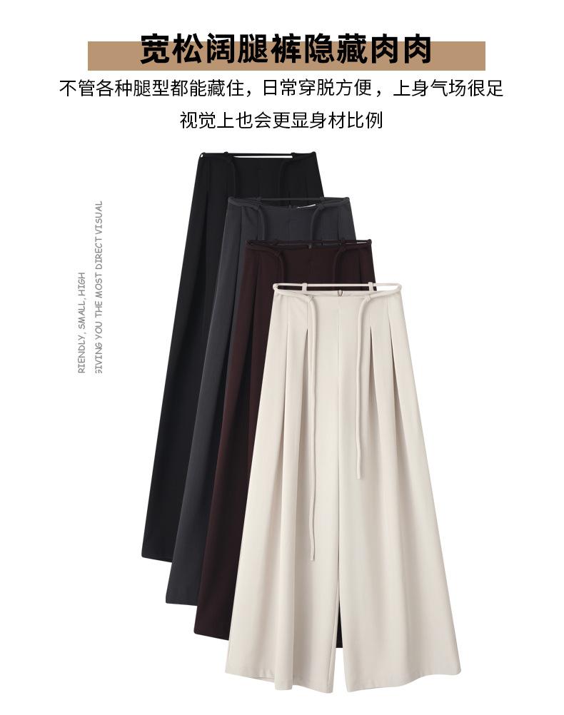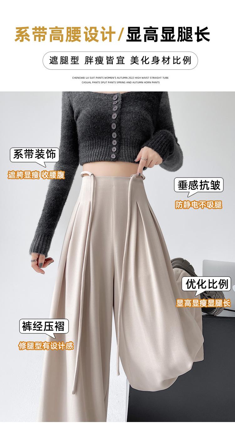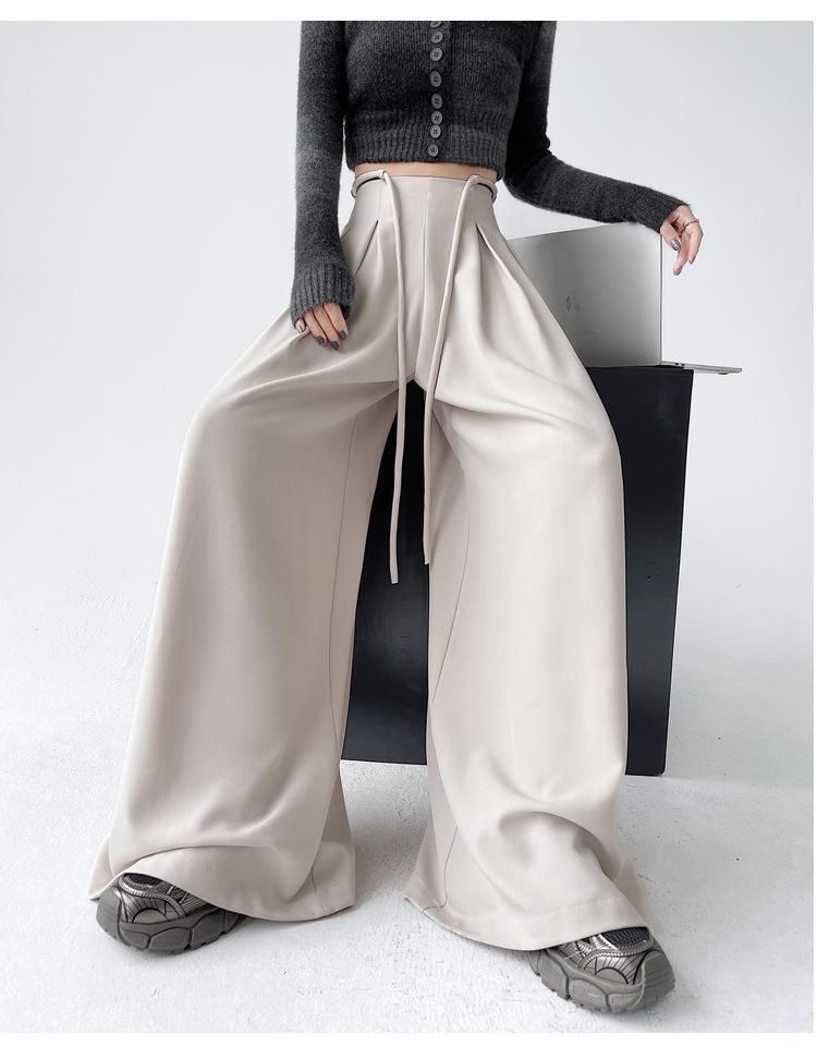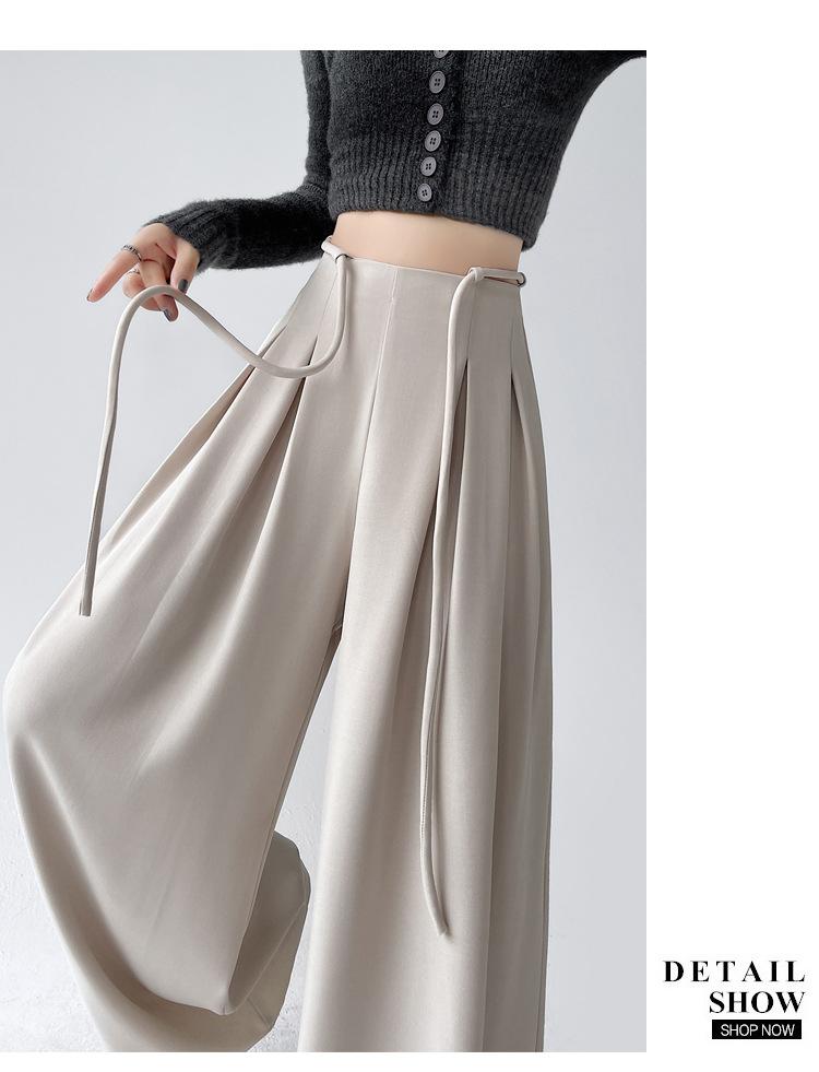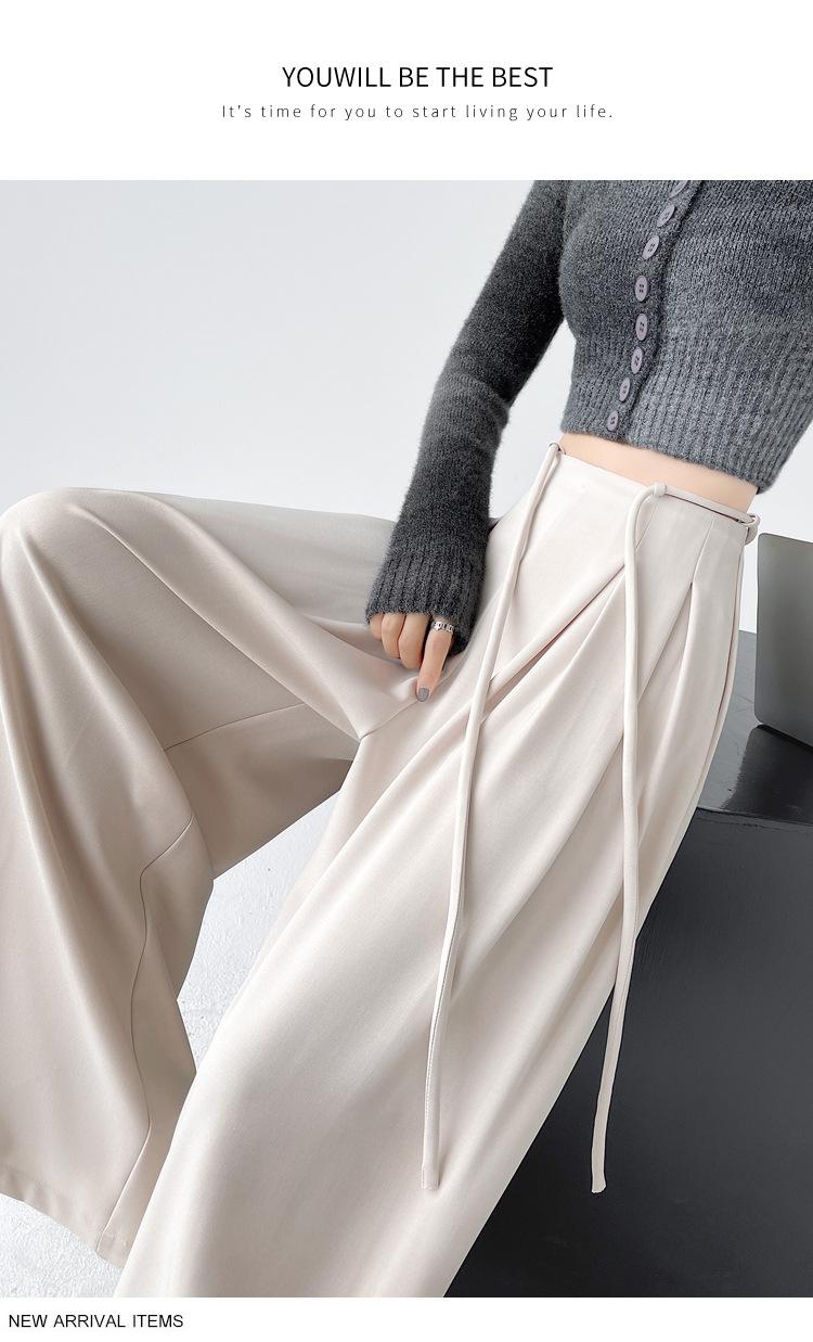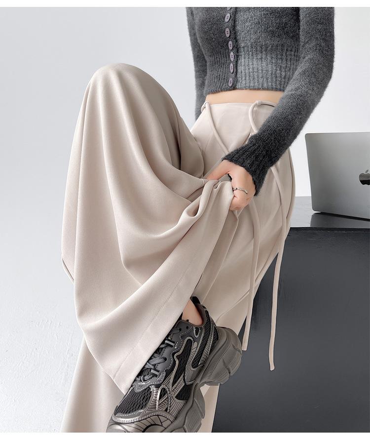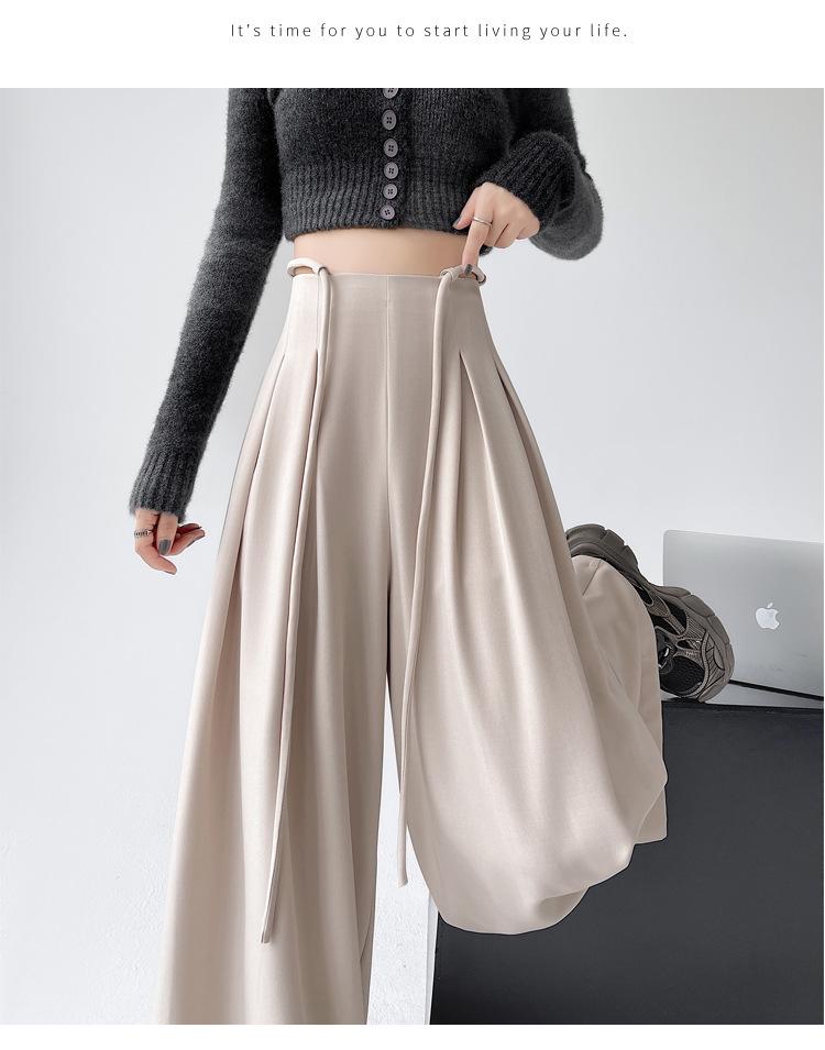 Traje con Cordones Pantalones de Pierna Ancha Pantalones Casuales para Mujer Otoño Nuevo Cintura Alta Holgados de Corte Slim Pantalones de Pierna Grande Falda