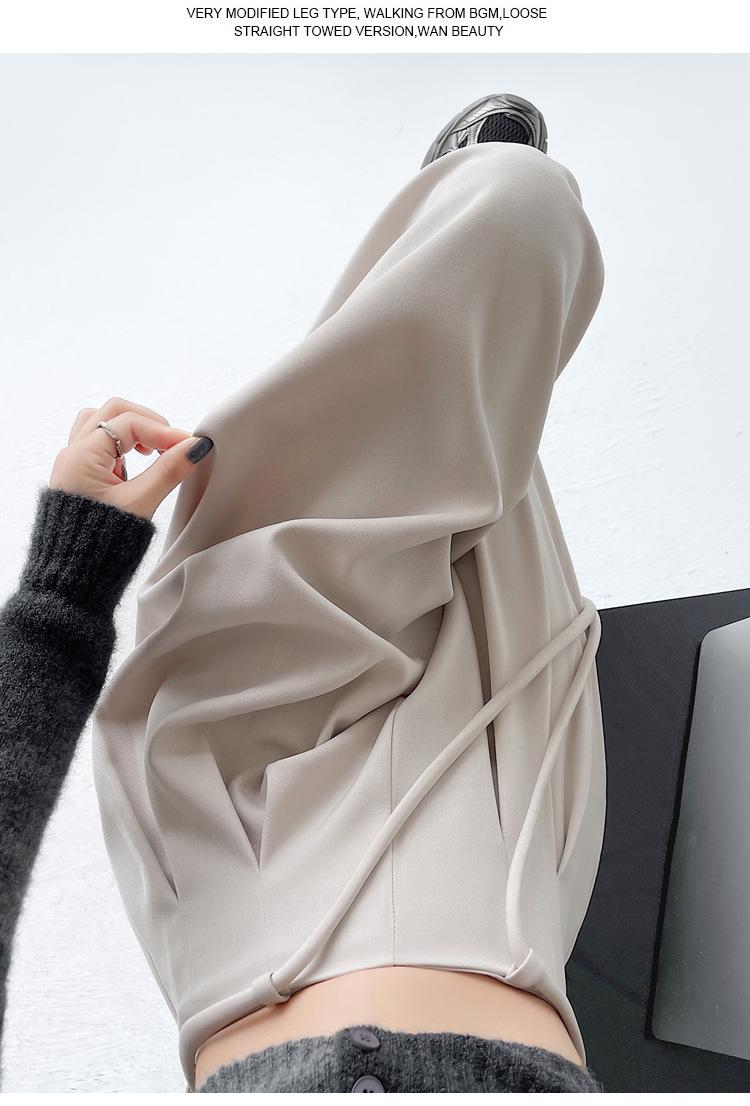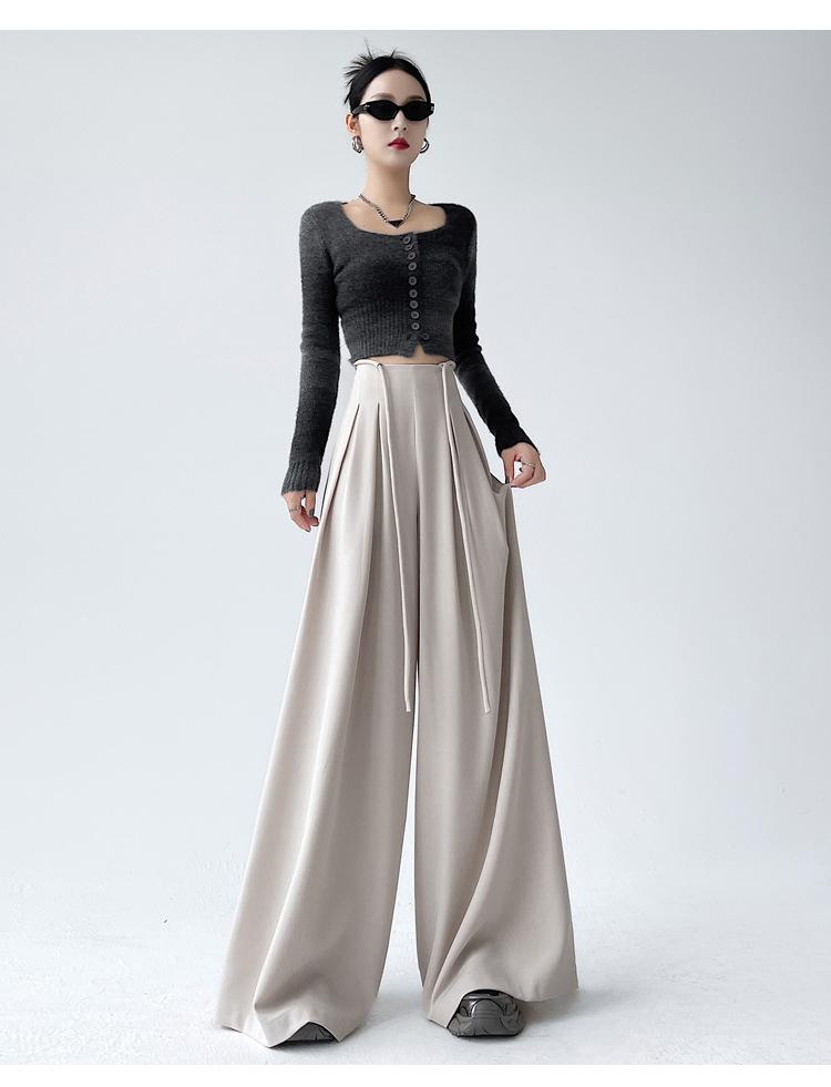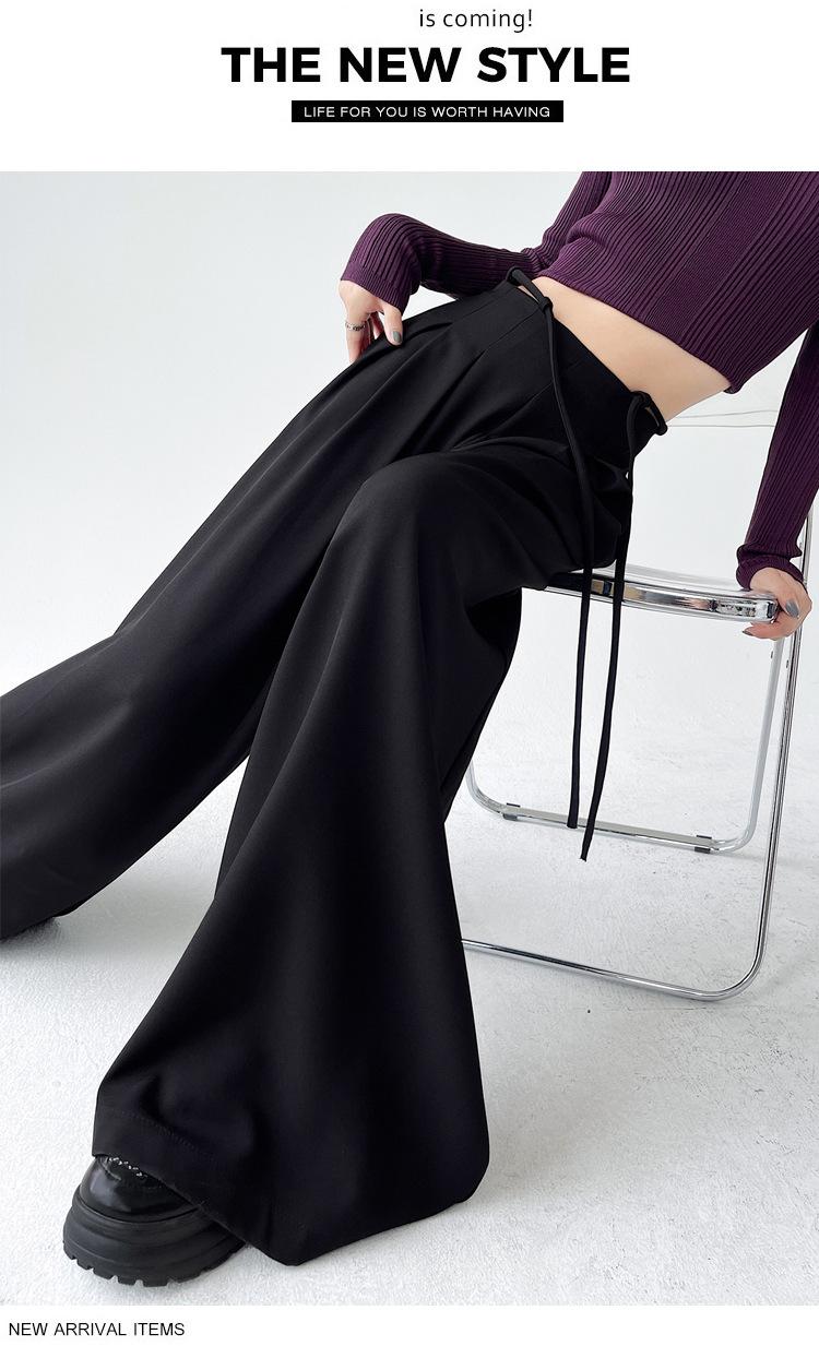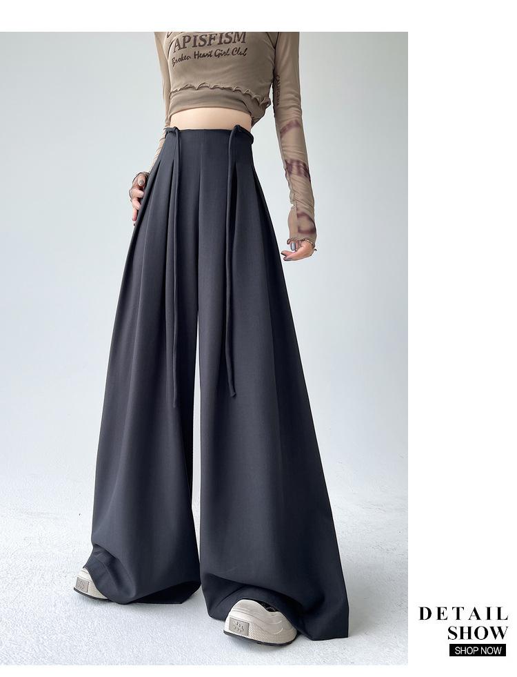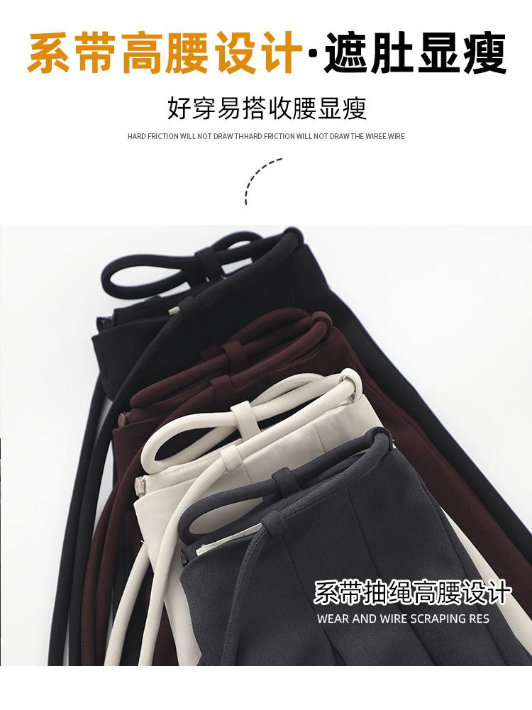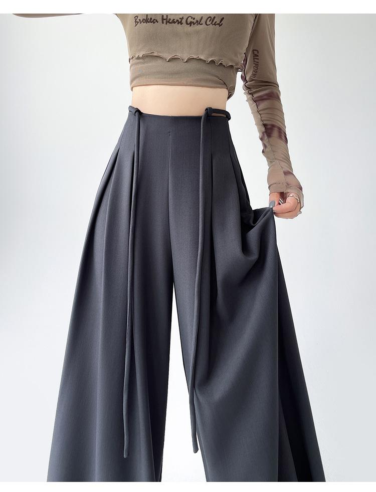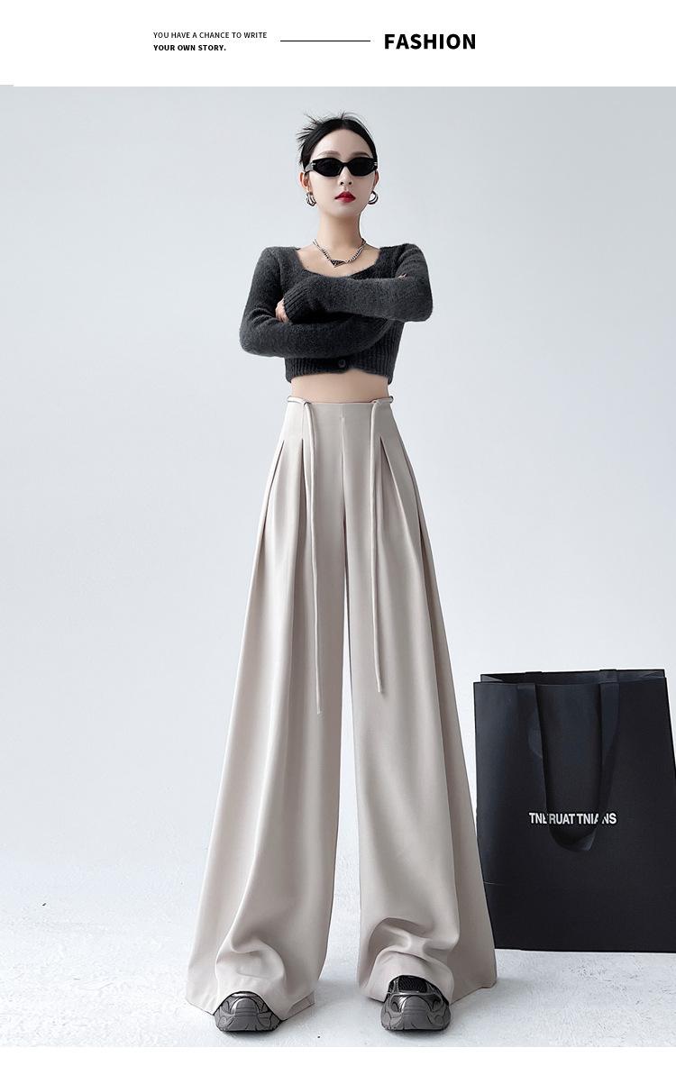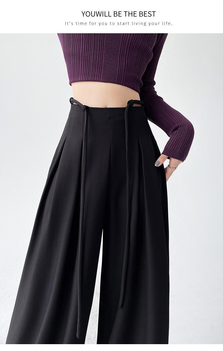 Traje con Cordones Pantalones de Pierna Ancha Pantalones Casuales para Mujer Otoño Nuevo Cintura Alta Holgados de Corte Slim Pantalones de Pierna Grande Falda