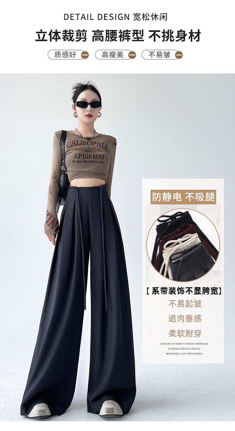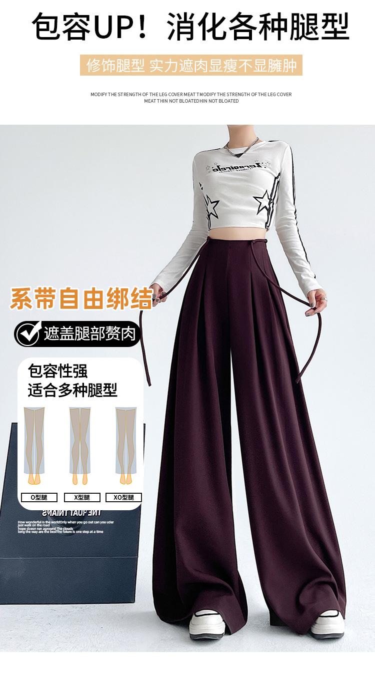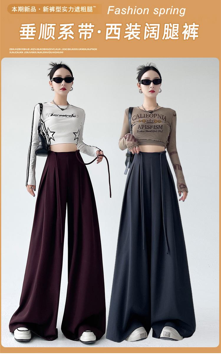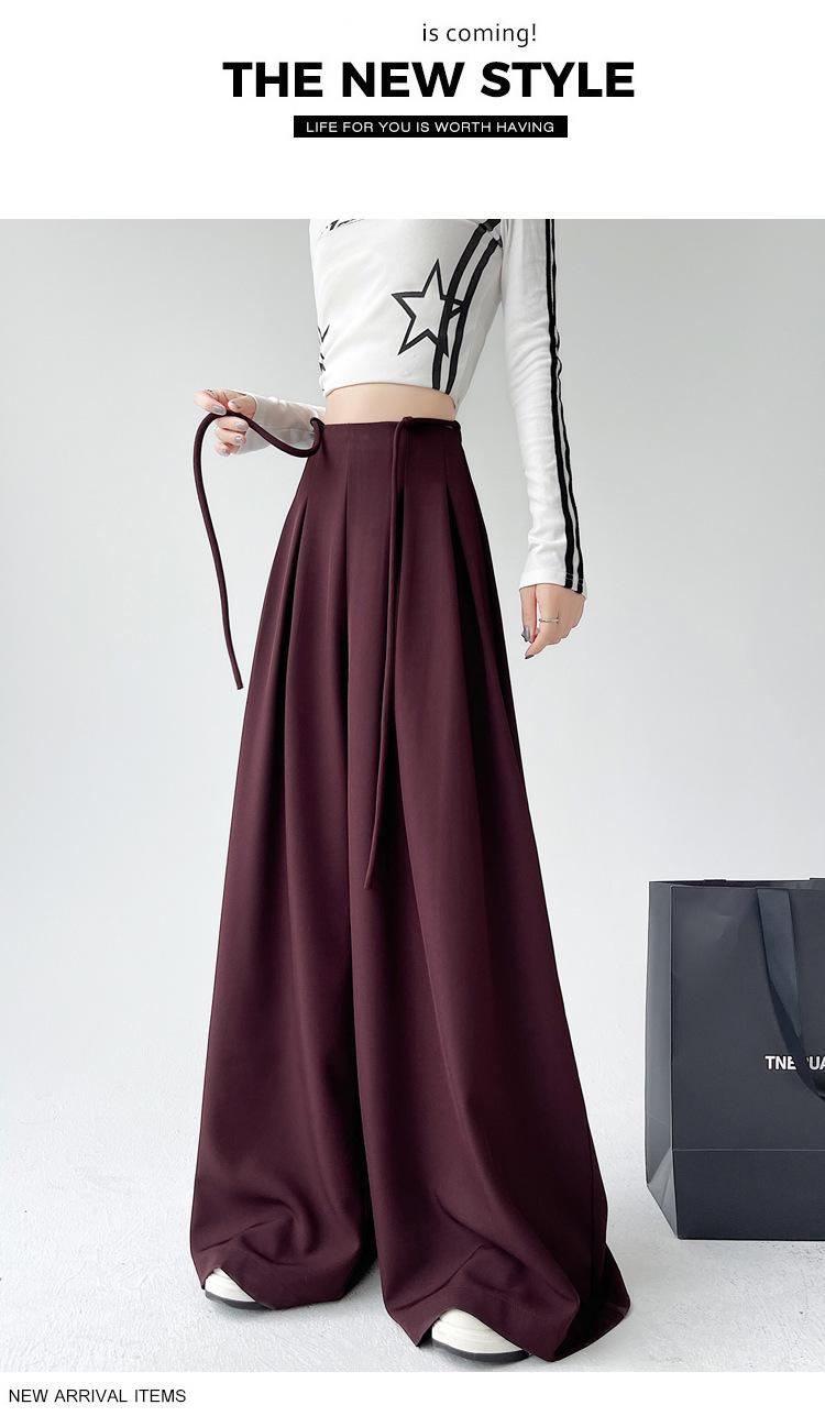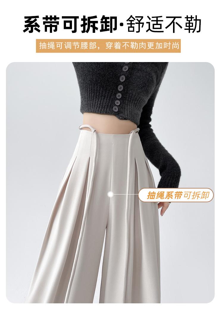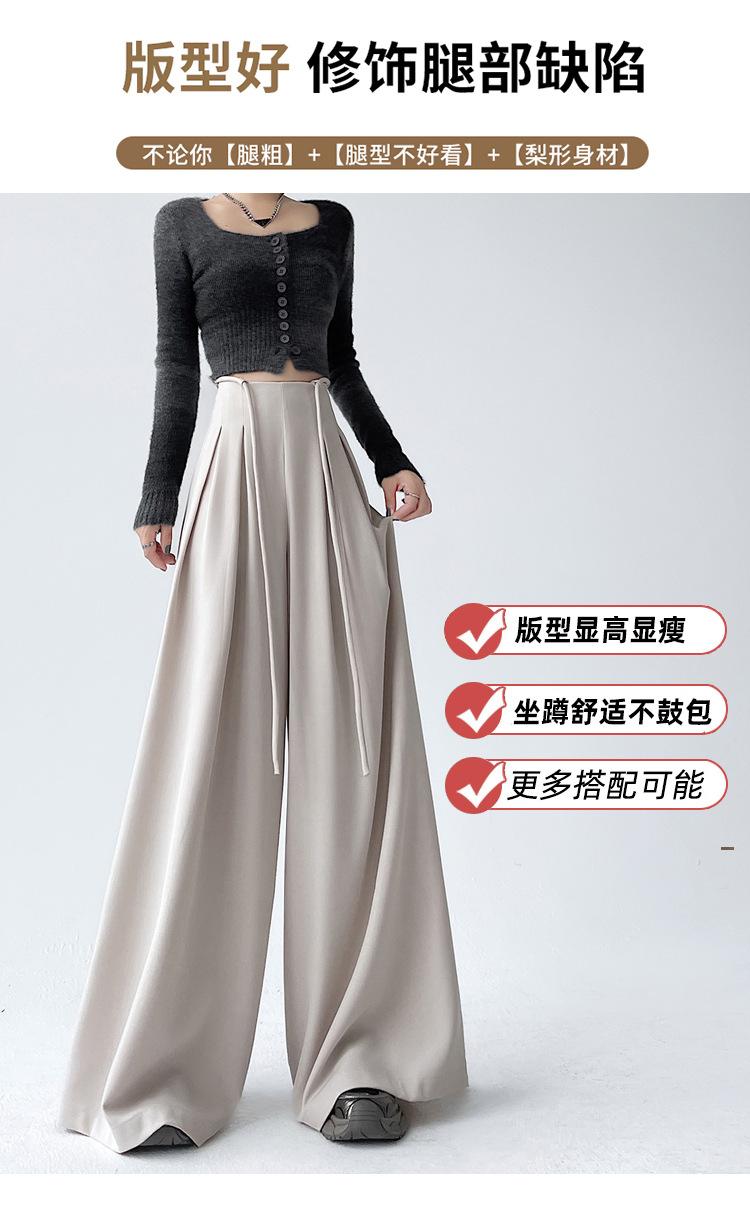 Traje con Cordones Pantalones de Pierna Ancha Pantalones Casuales para Mujer Otoño Nuevo Cintura Alta Holgados de Corte Slim Pantalones de Pierna Grande Falda
