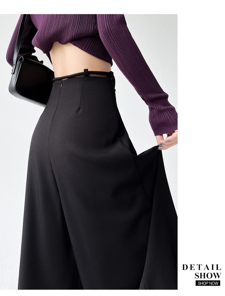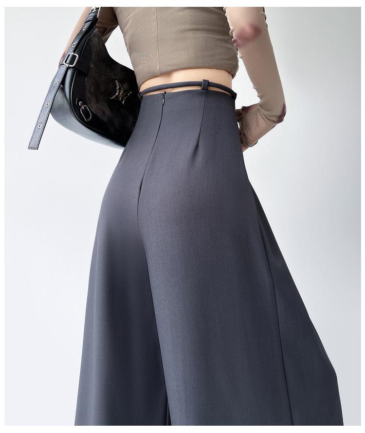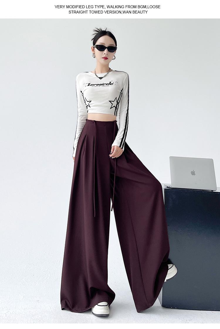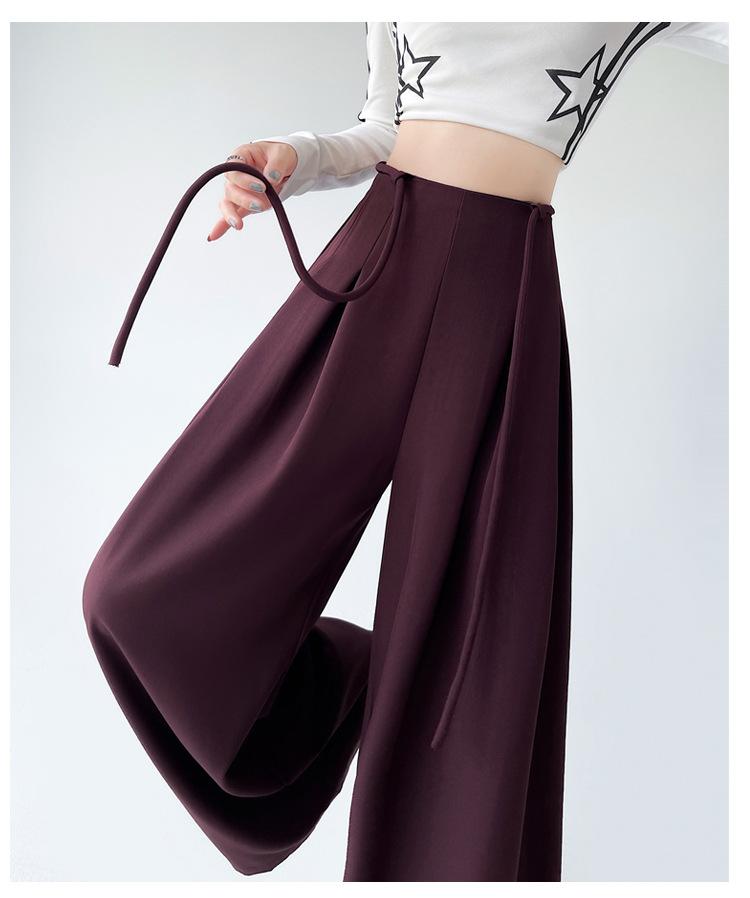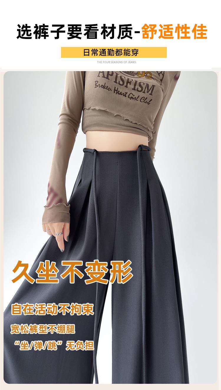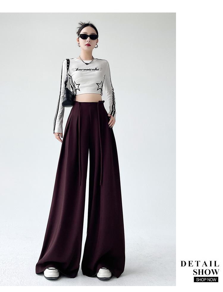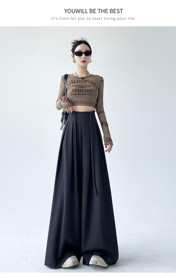 Traje con Cordones Pantalones de Pierna Ancha Pantalones Casuales para Mujer Otoño Nuevo Cintura Alta Holgados de Corte Slim Pantalones de Pierna Grande Falda