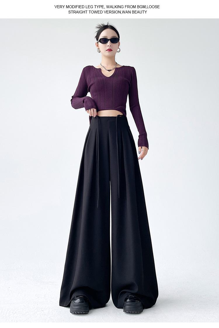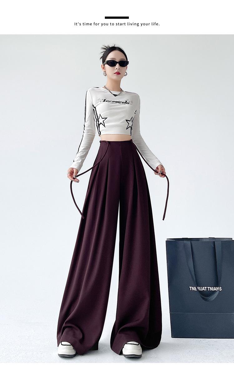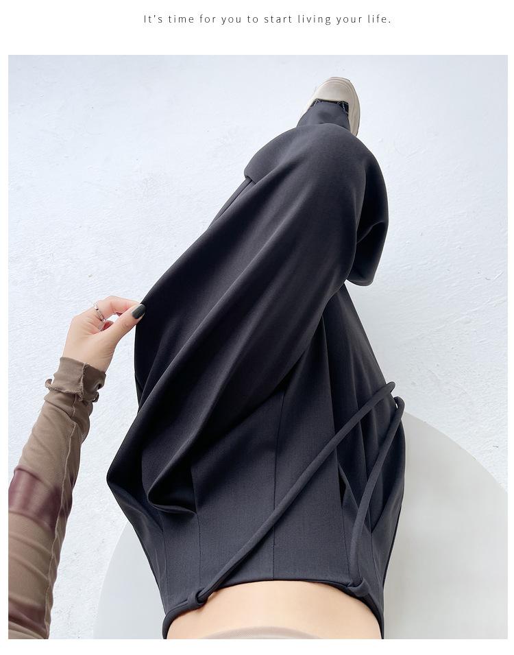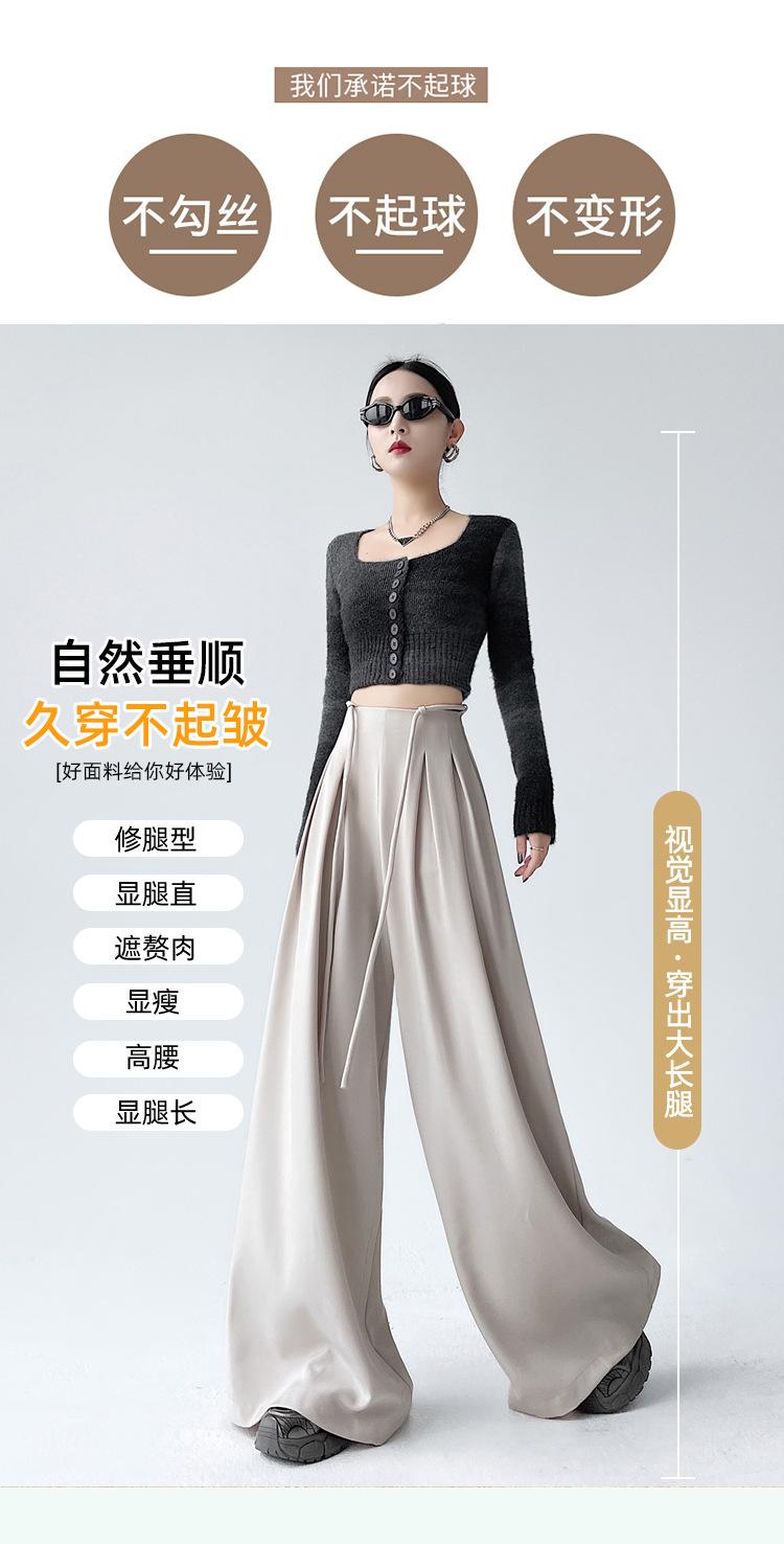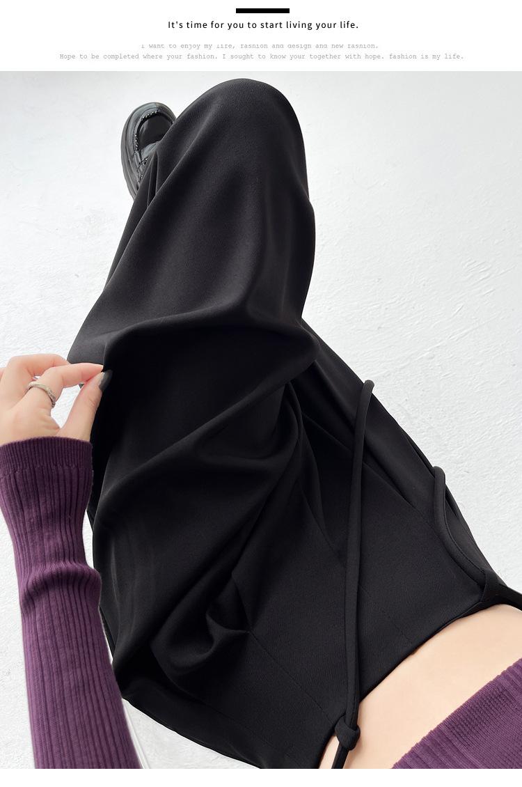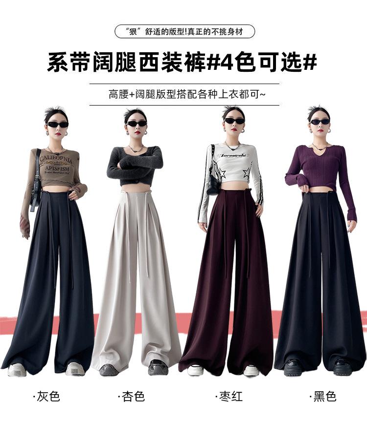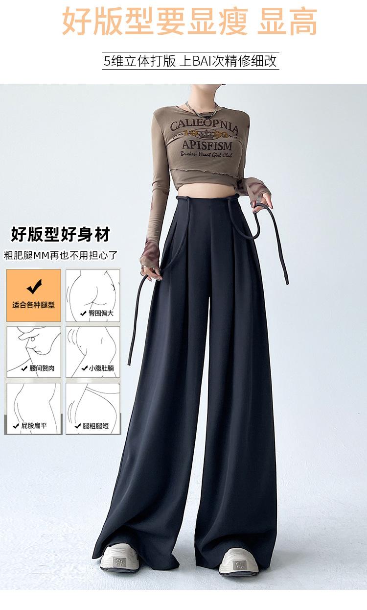 Traje con Cordones Pantalones de Pierna Ancha Pantalones Casuales para Mujer Otoño Nuevo Cintura Alta Holgados de Corte Slim Pantalones de Pierna Grande Falda