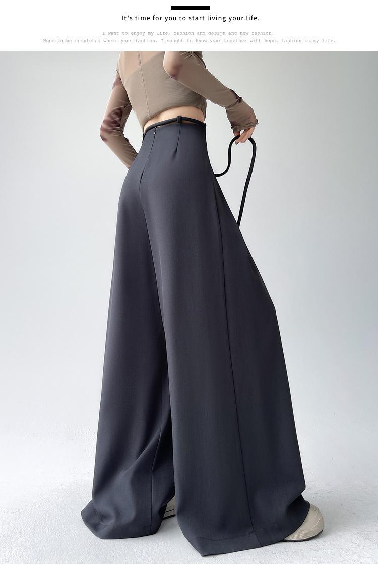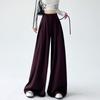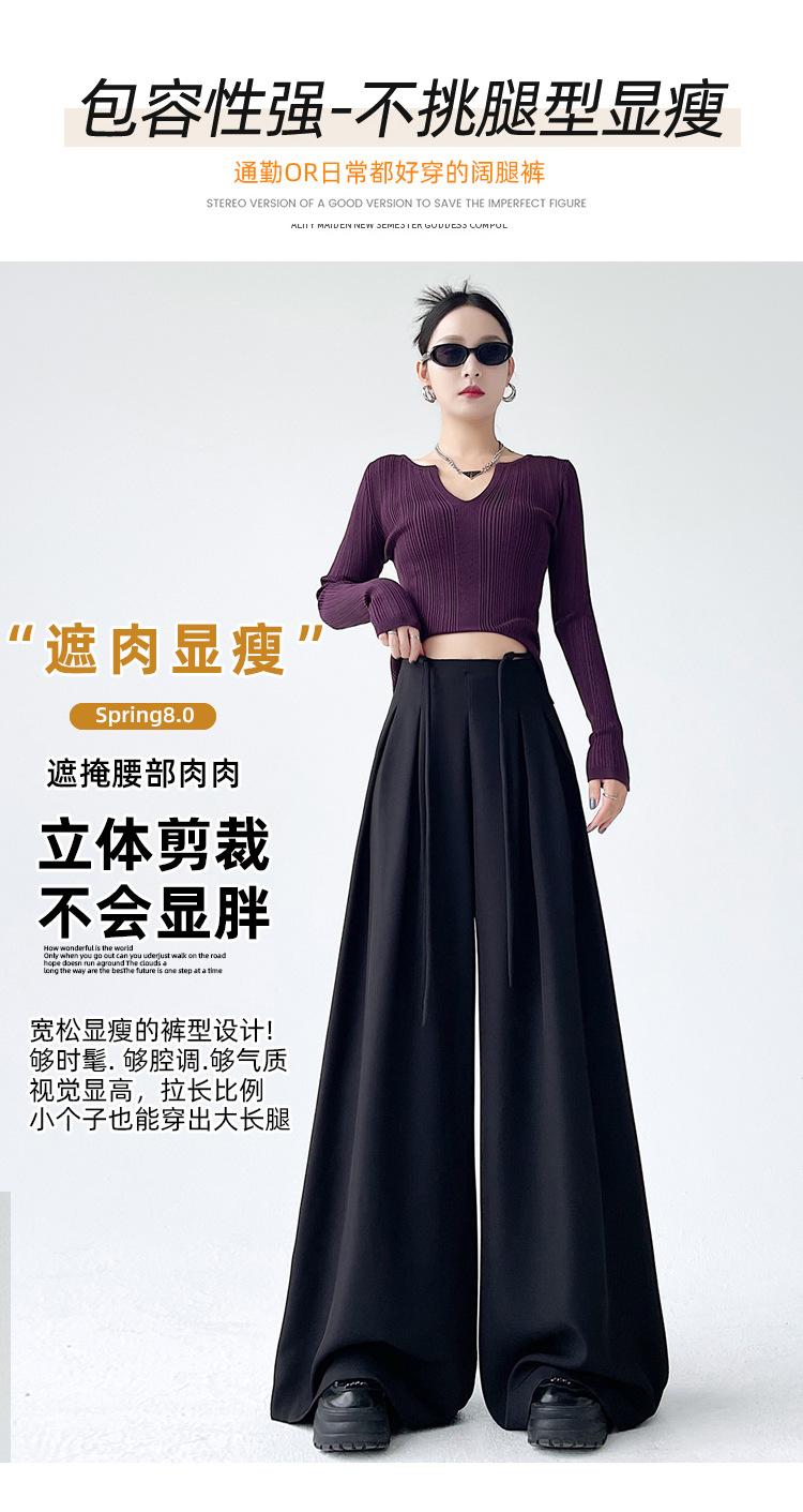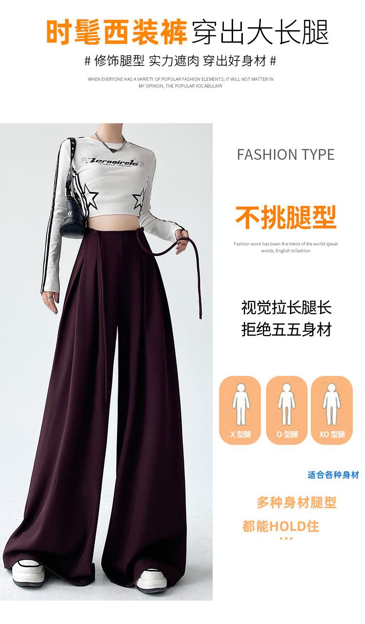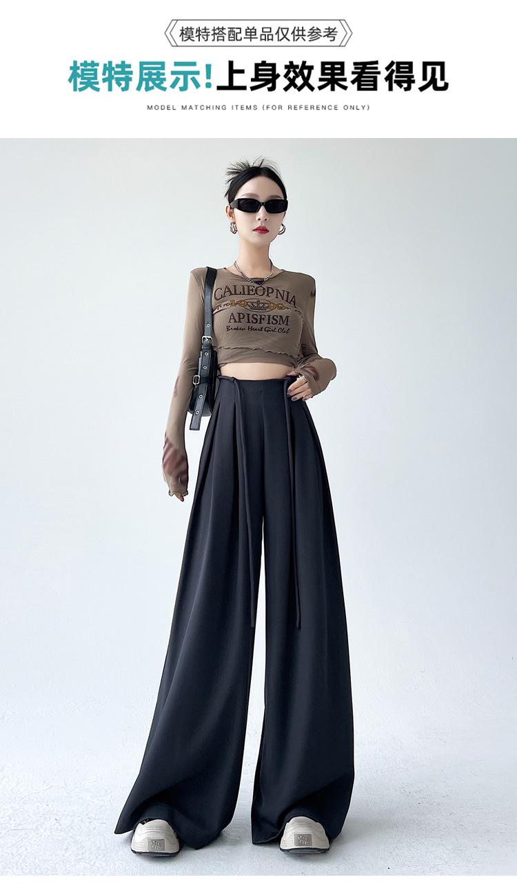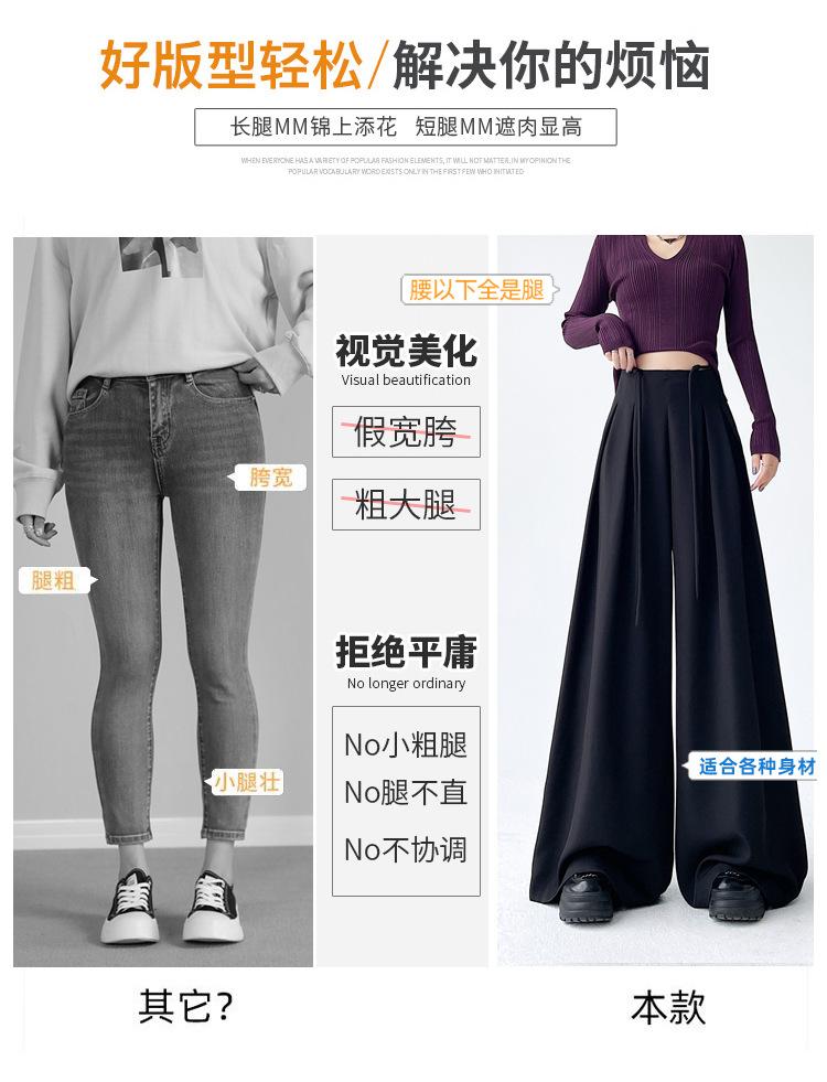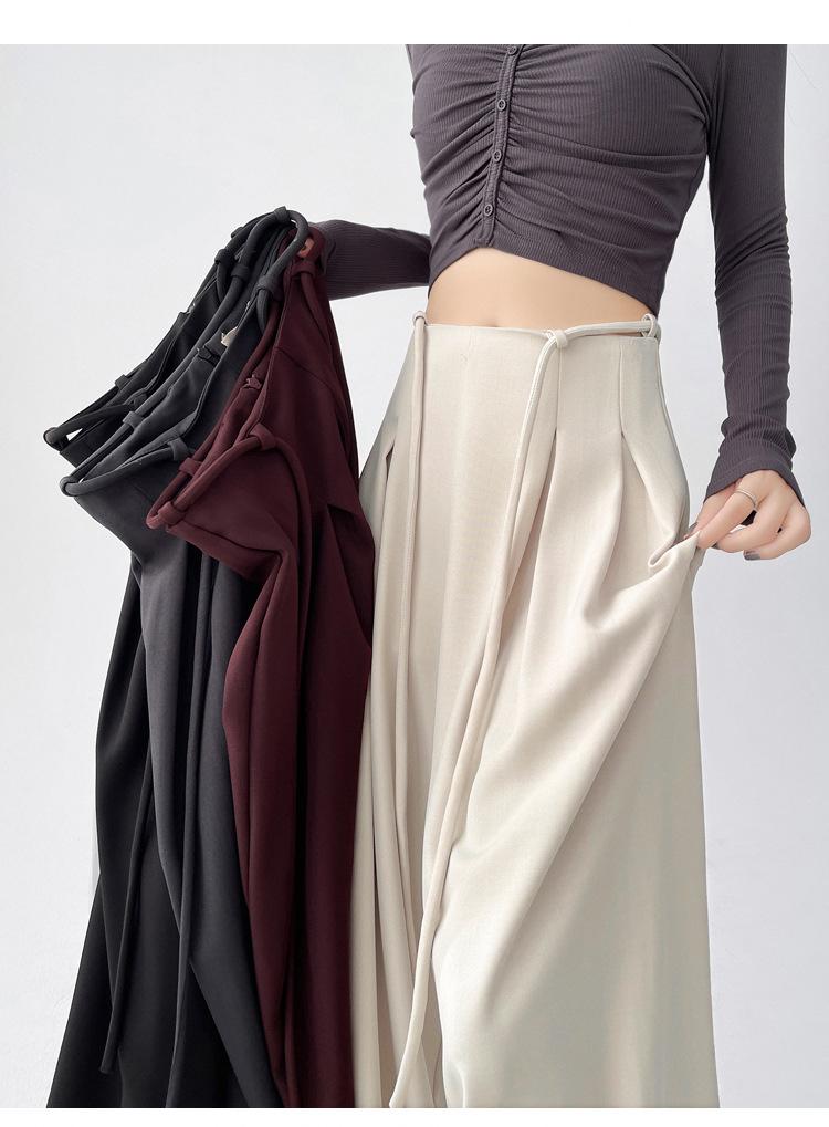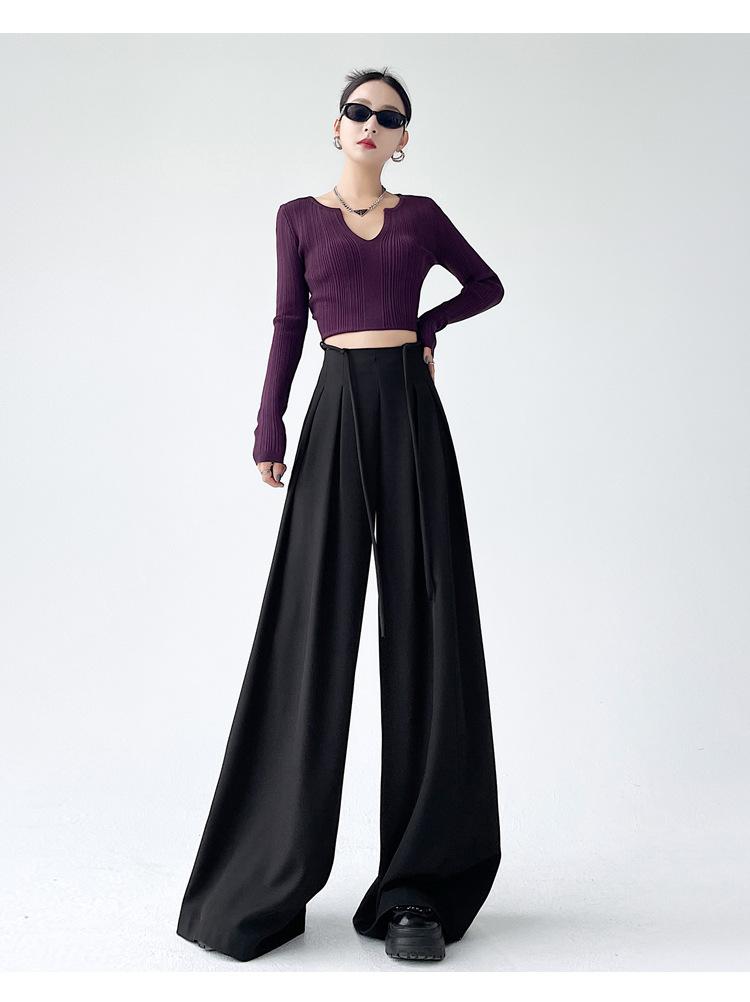 Traje con Cordones Pantalones de Pierna Ancha Pantalones Casuales para Mujer Otoño Nuevo Cintura Alta Holgados de Corte Slim Pantalones de Pierna Grande Falda