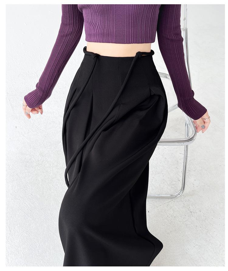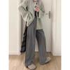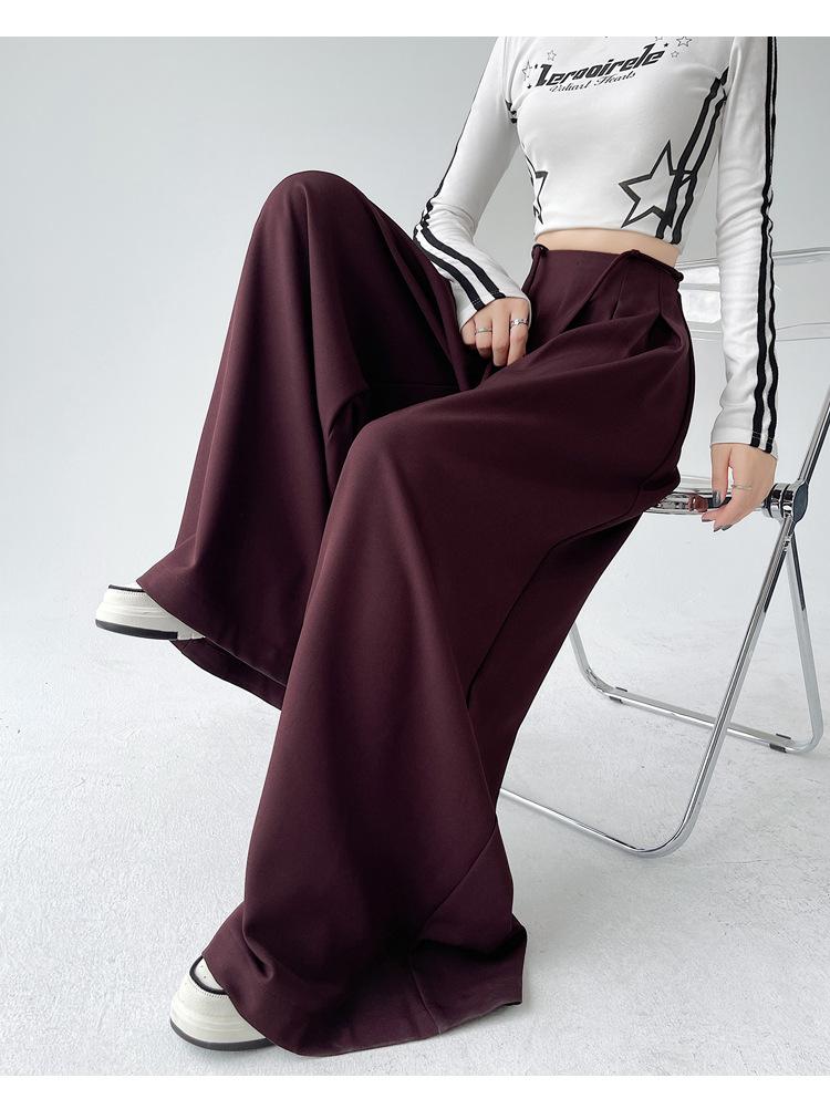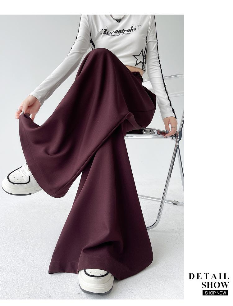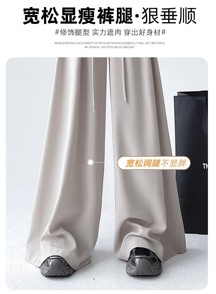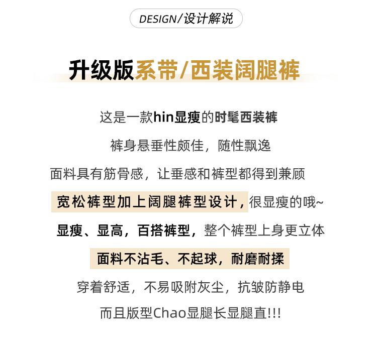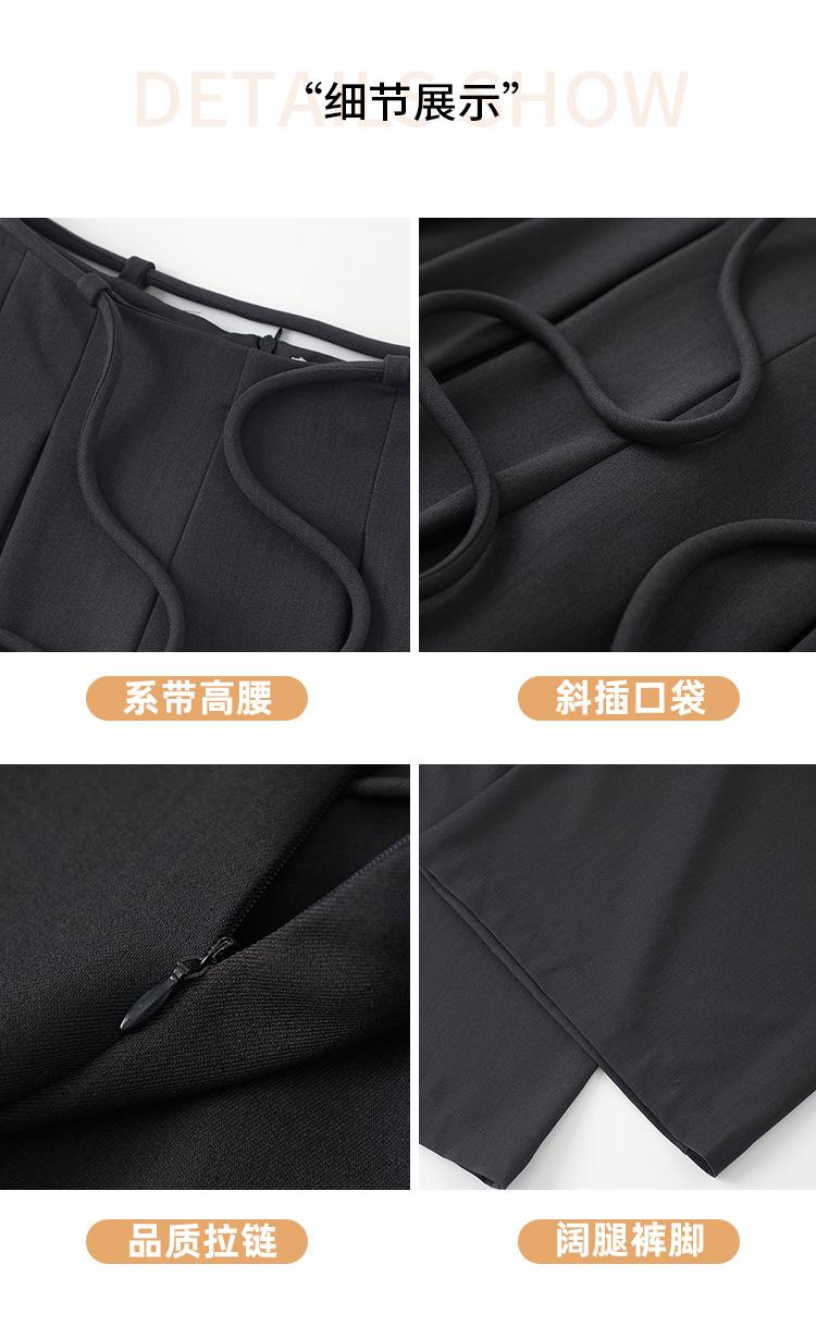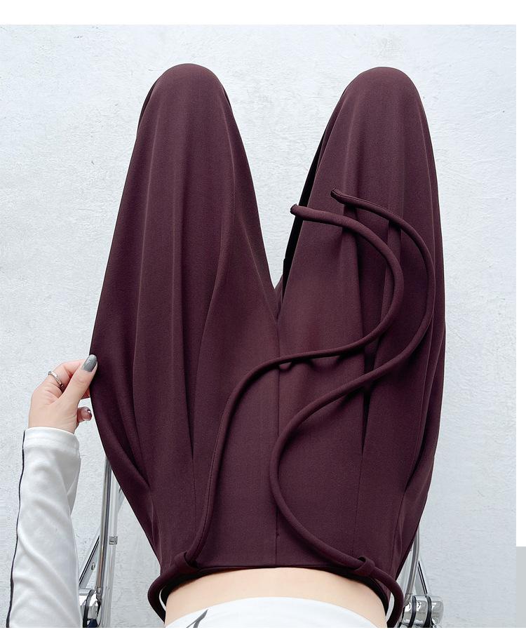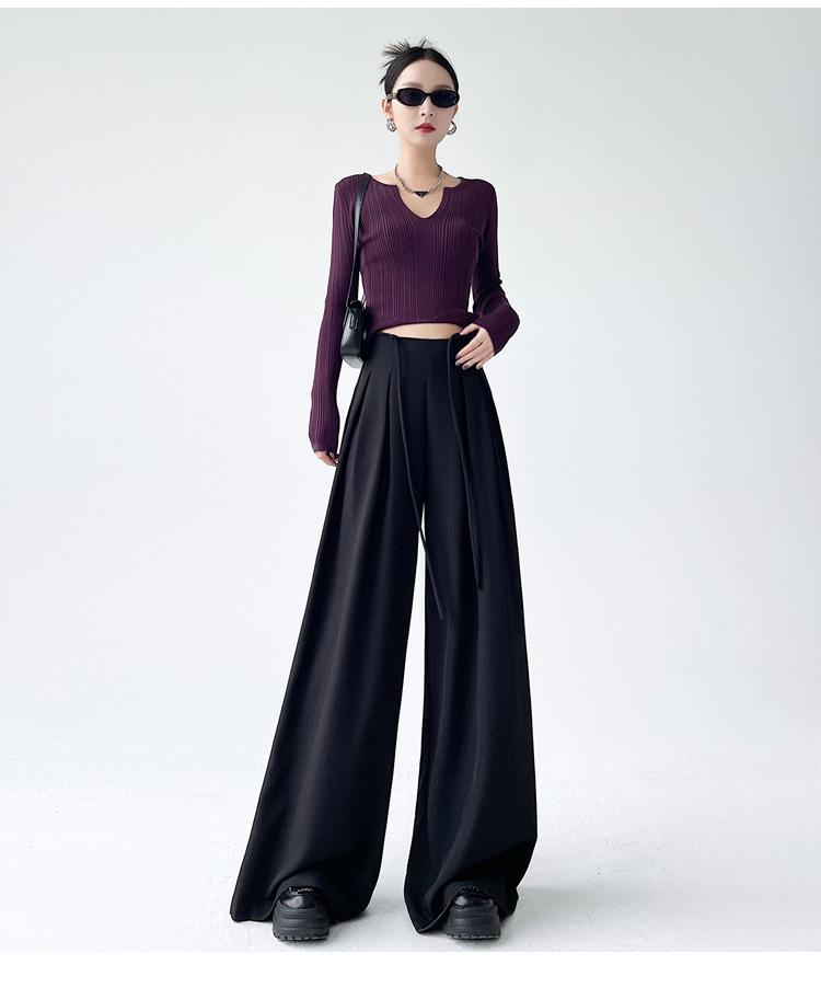 Traje con Cordones Pantalones de Pierna Ancha Pantalones Casuales para Mujer Otoño Nuevo Cintura Alta Holgados de Corte Slim Pantalones de Pierna Grande Falda