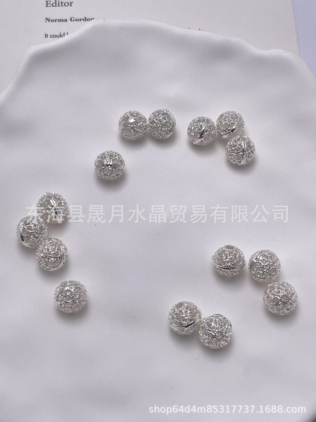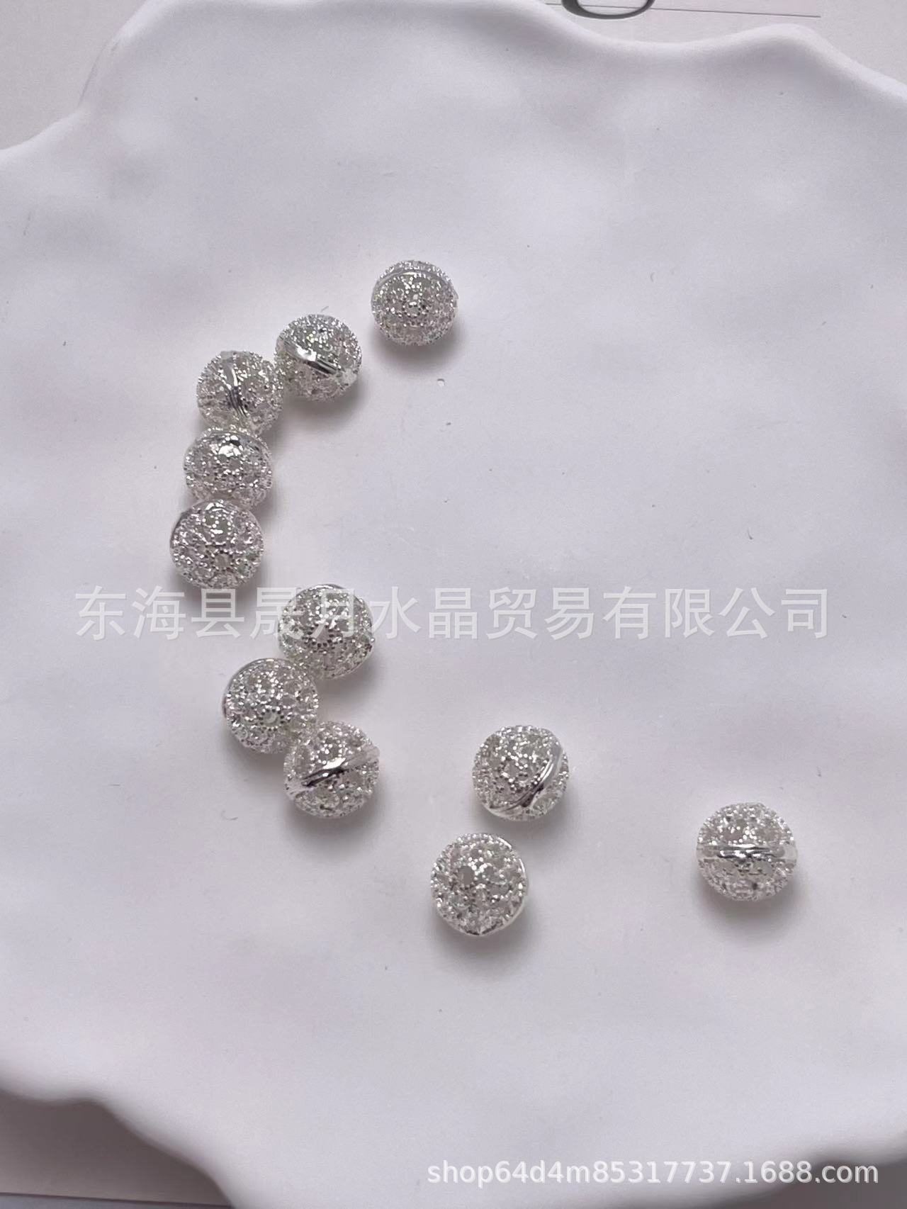silver 10mm hollow embroidered ball beads