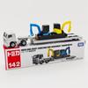 No. 121-omura city fire truck-red, No. 123-gali gali jun extended truck-blue, No. 125 - timber transport truck...