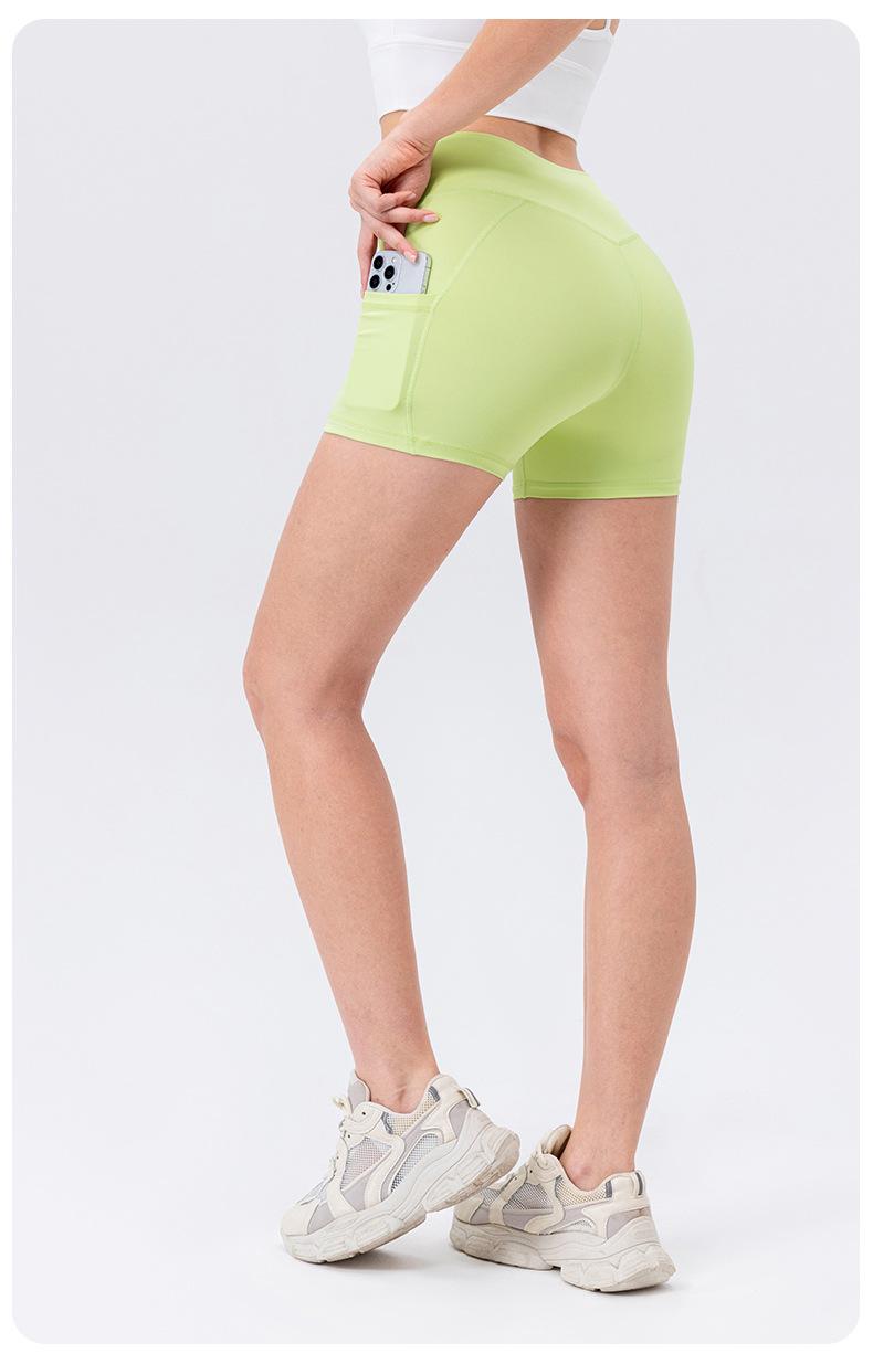 Pantalones cortos de yoga para mujer, estilo europeo y americano, ajustados, color melocotón, para correr, de cintura alta, para fitness, 42456