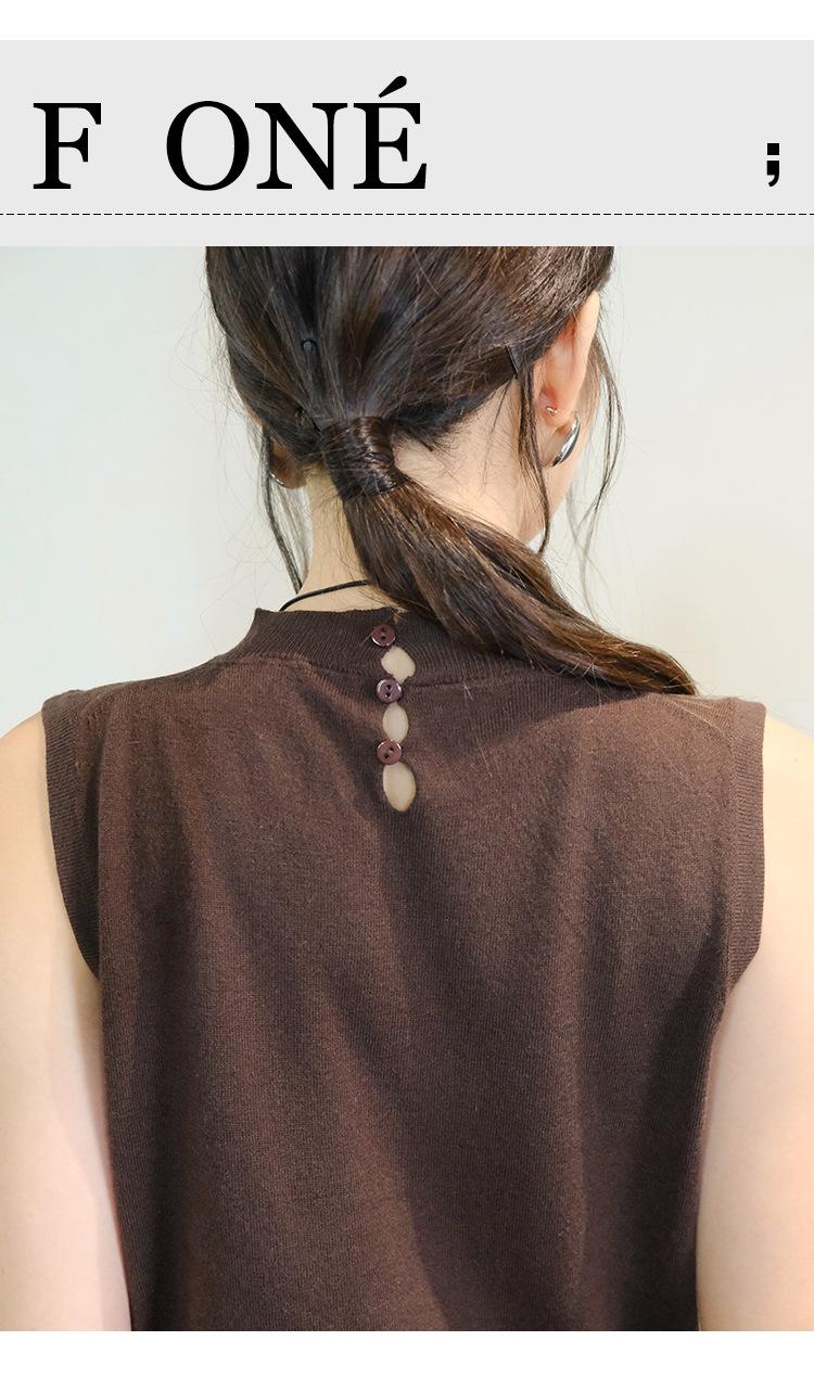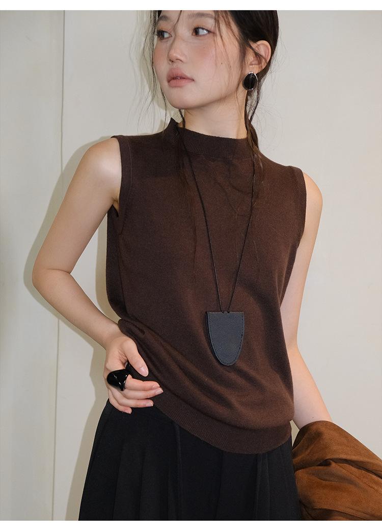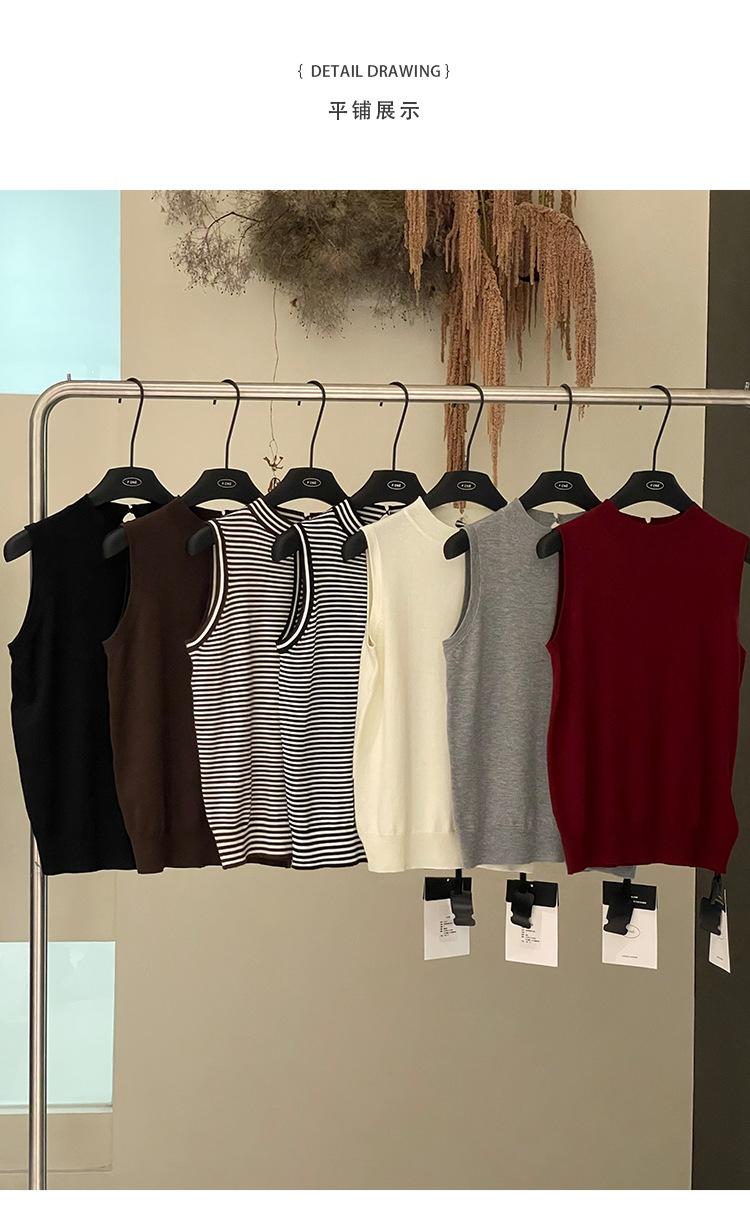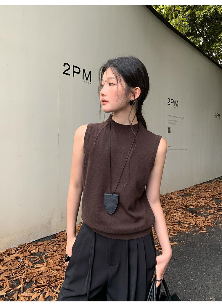 [Liquidación Trece Líneas No Retornable] Estilo Dinero Viejo Versátil Suave Cuello Medio Tortuga Sin Mangas Chaleco Tejido para Mujer 28657