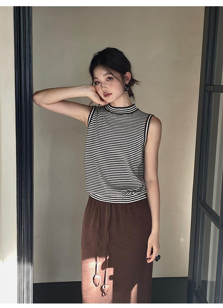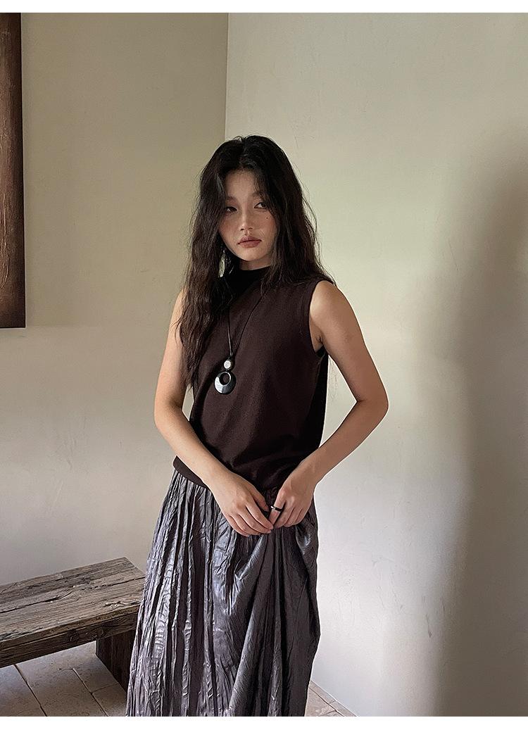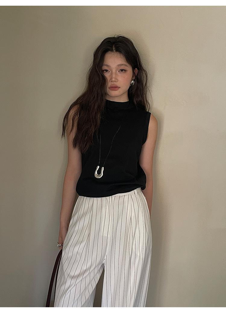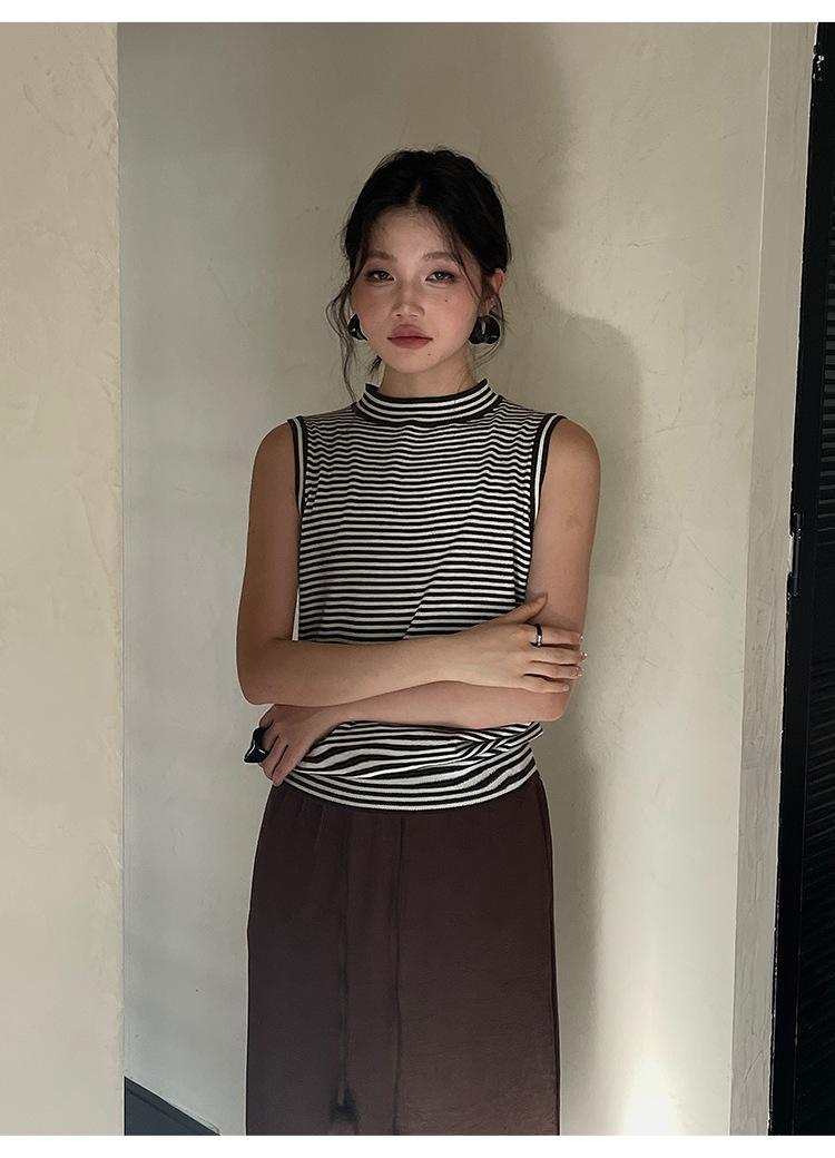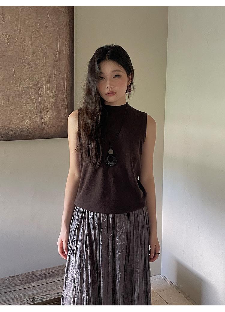 [Liquidación Trece Líneas No Retornable] Estilo Dinero Viejo Versátil Suave Cuello Medio Tortuga Sin Mangas Chaleco Tejido para Mujer 28657
