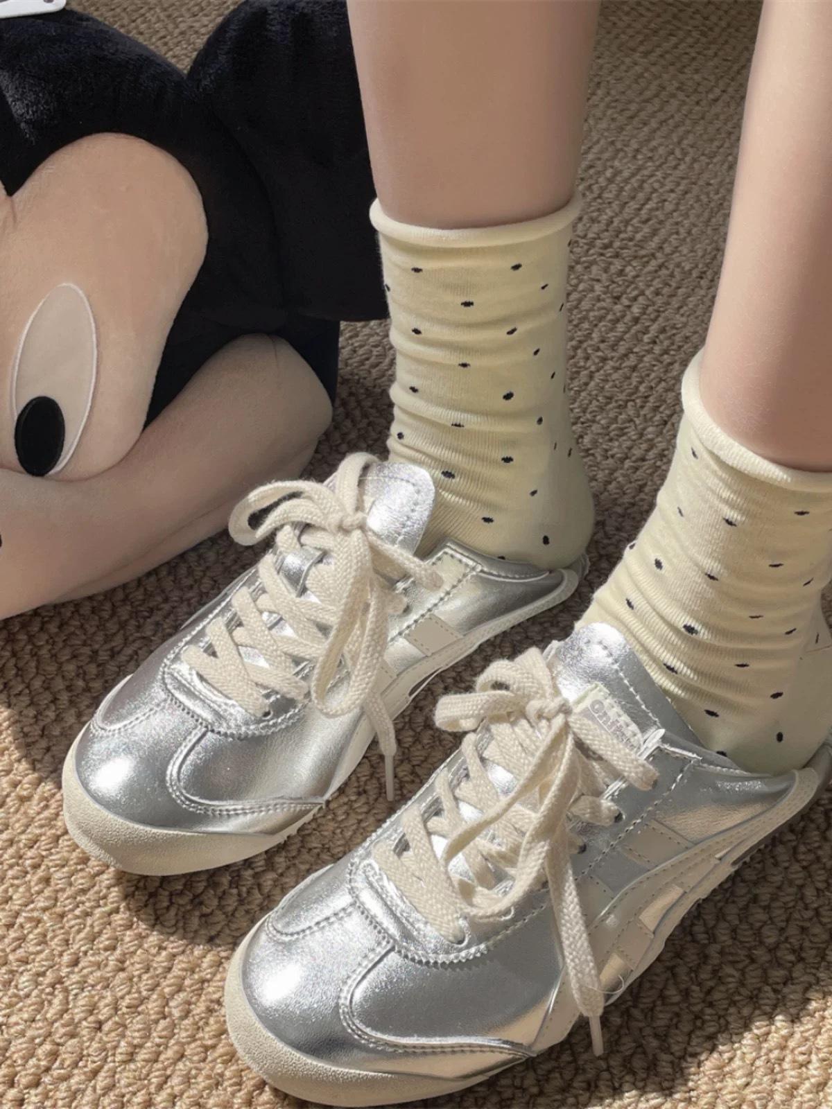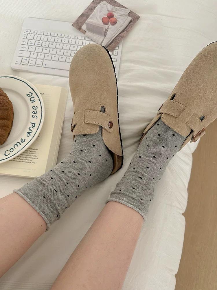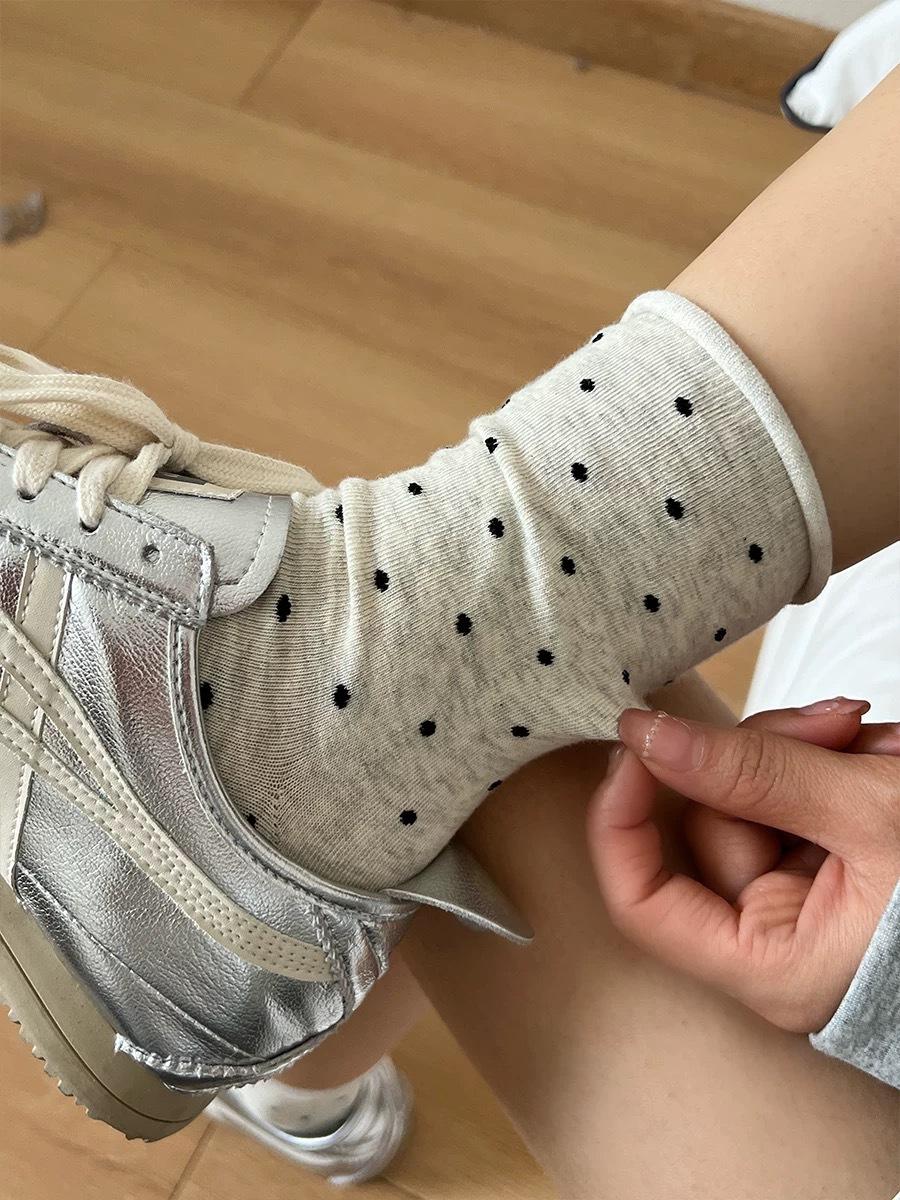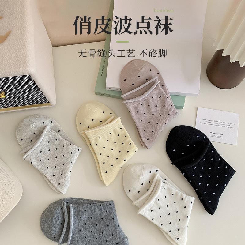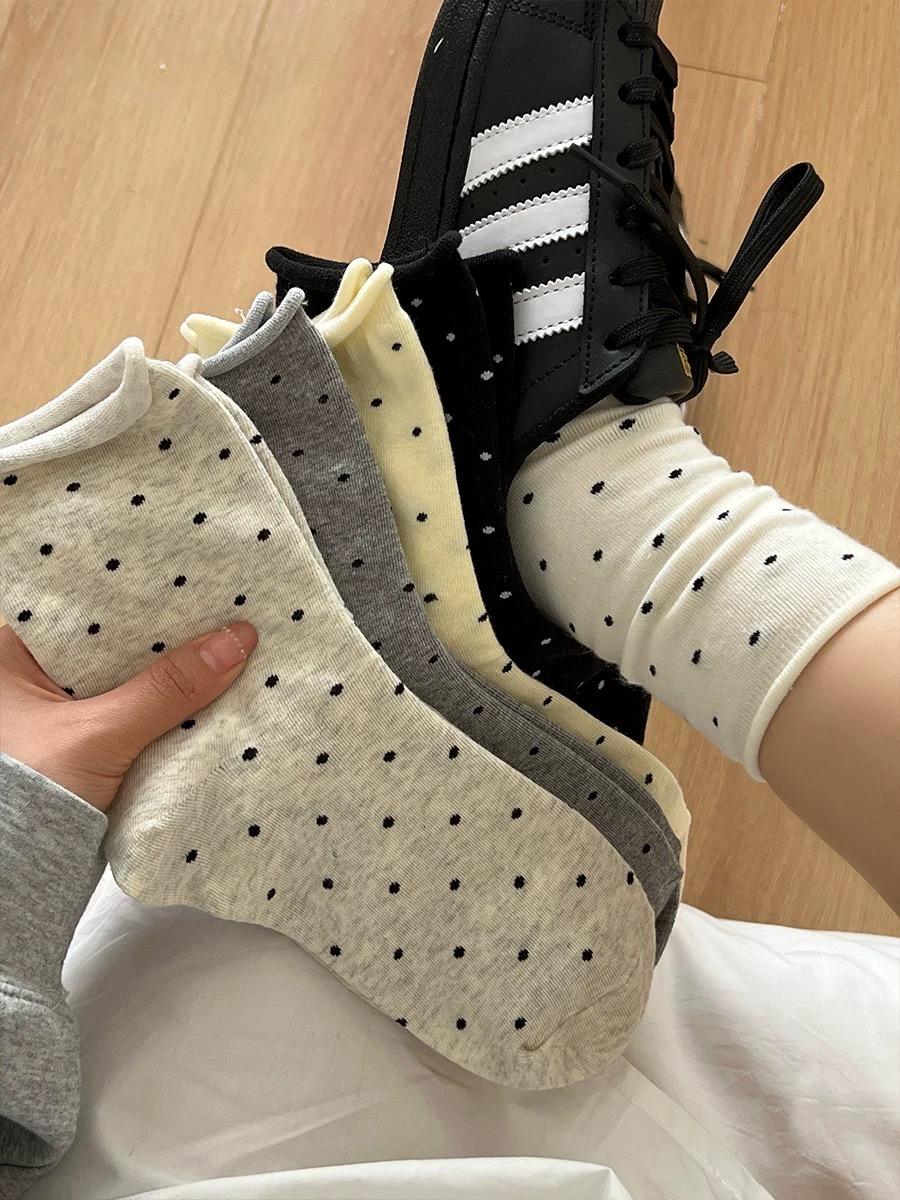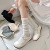 Calcetines para mujer estilo coreano onda rizada punto algodón cuatro estaciones estilo academia simples combinables crema calcetines de moda