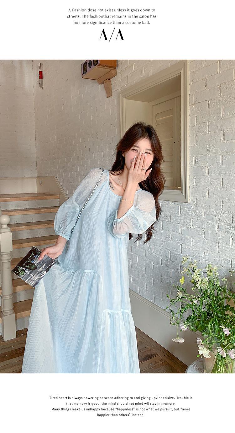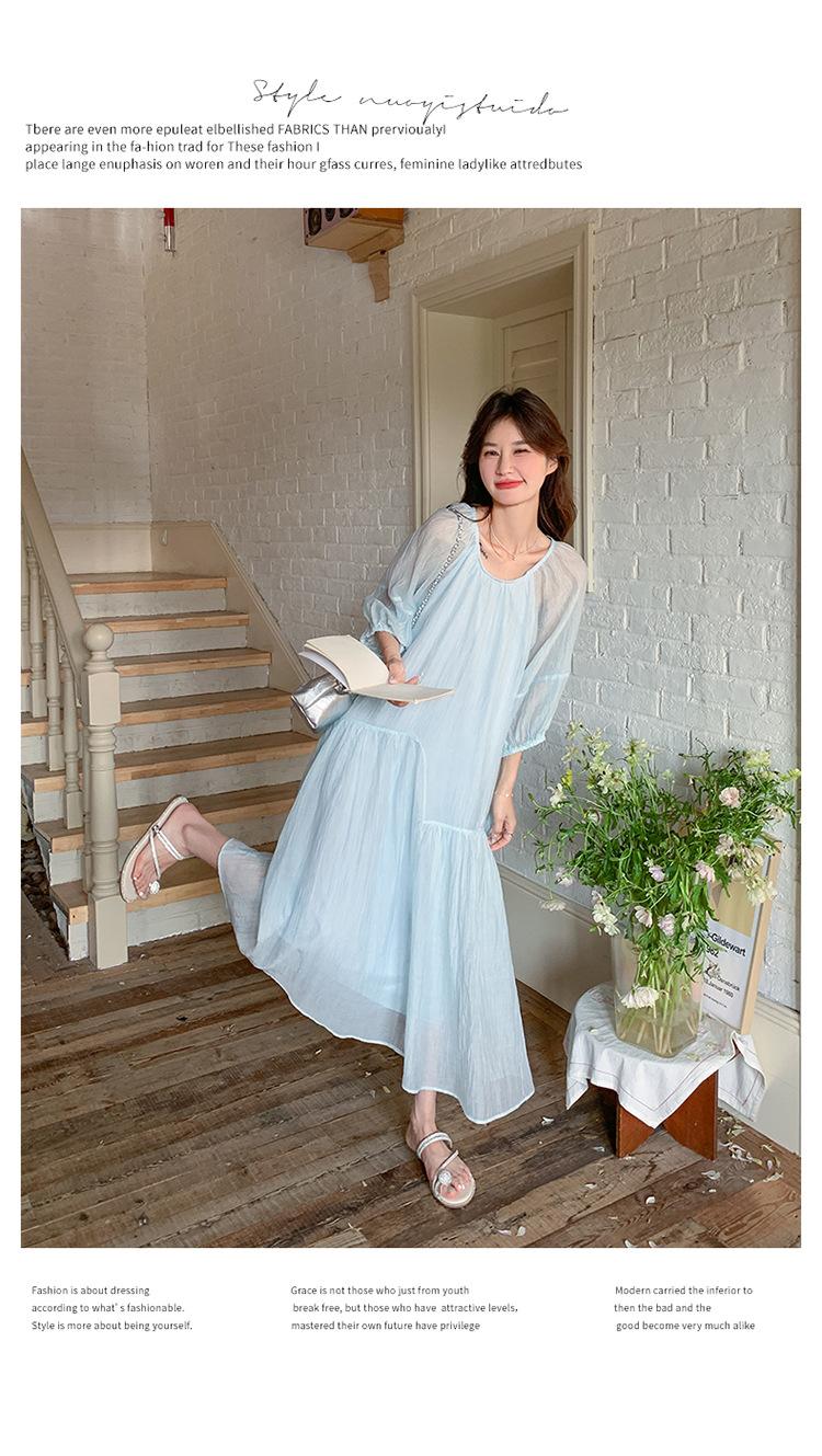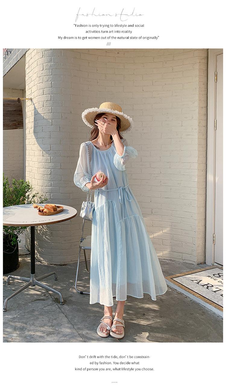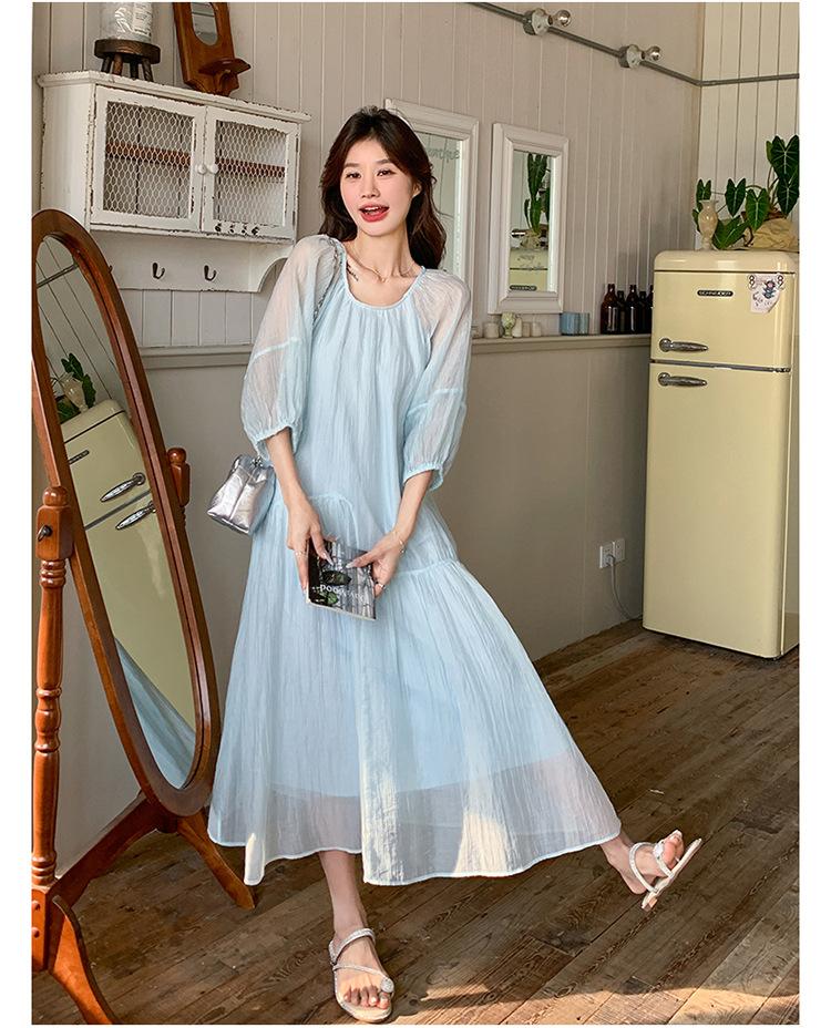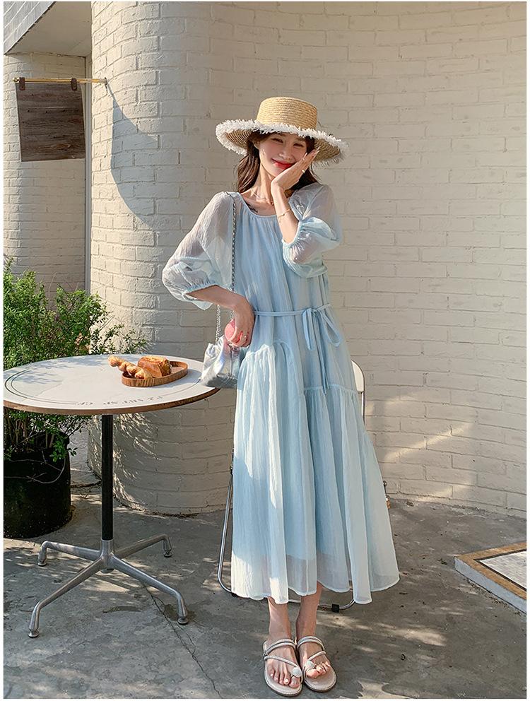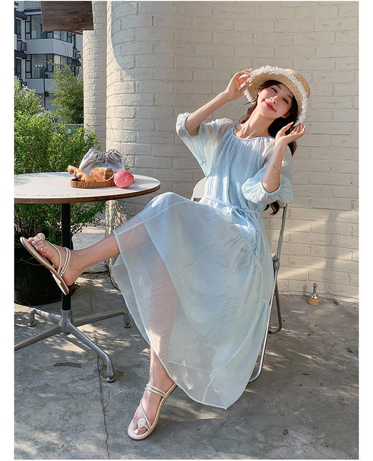 Vestido de Gasa Azul para Mujer 2024 Verano Nuevo Estilo Francés Dulce y Tierno Reductor de Edad Viaje Vacaciones Hermosa Falda Larga