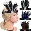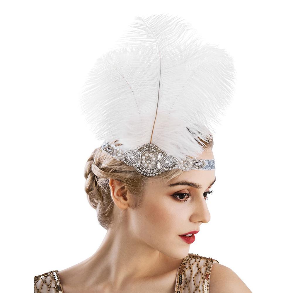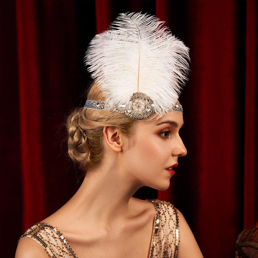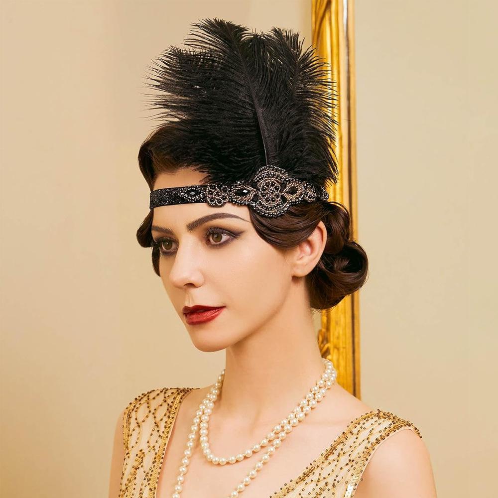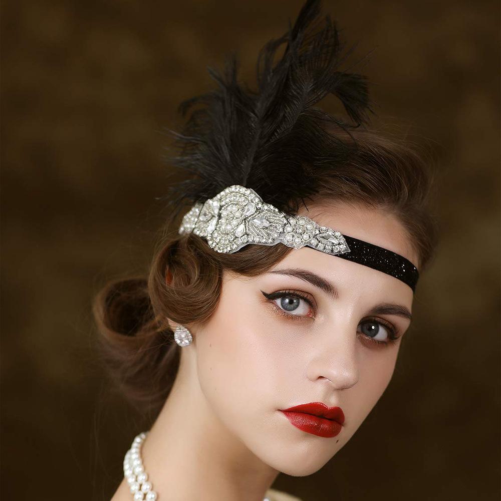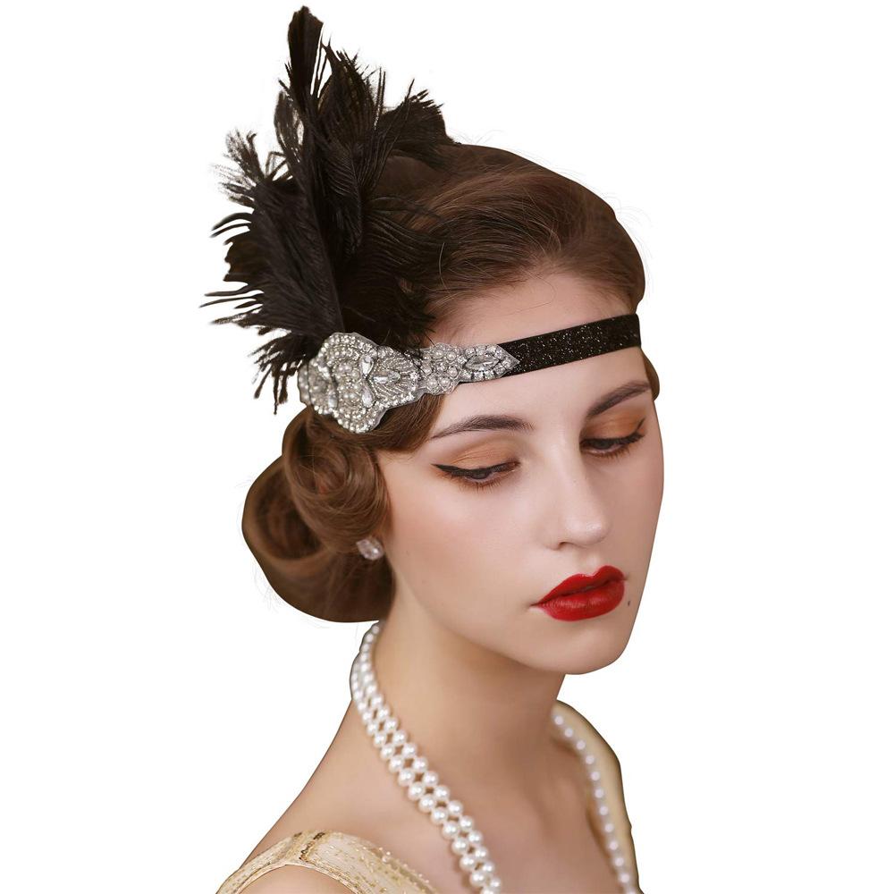 Diadema de Plumas Retro Europea y Americana de los Años 20 Negra de Plumas de Avestruz Diadema Mascarada Despedida de Soltero Traje
