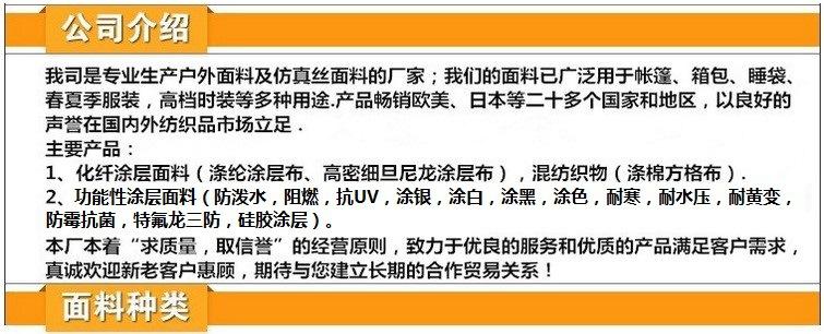 3. Hilado de nailon: 190T, 210T, 240T, 290T, 360T, 380T, 380T*0,1 cuadrícula, 390T*0,15 cuadrícula, 400T cuadrícula de doble línea.