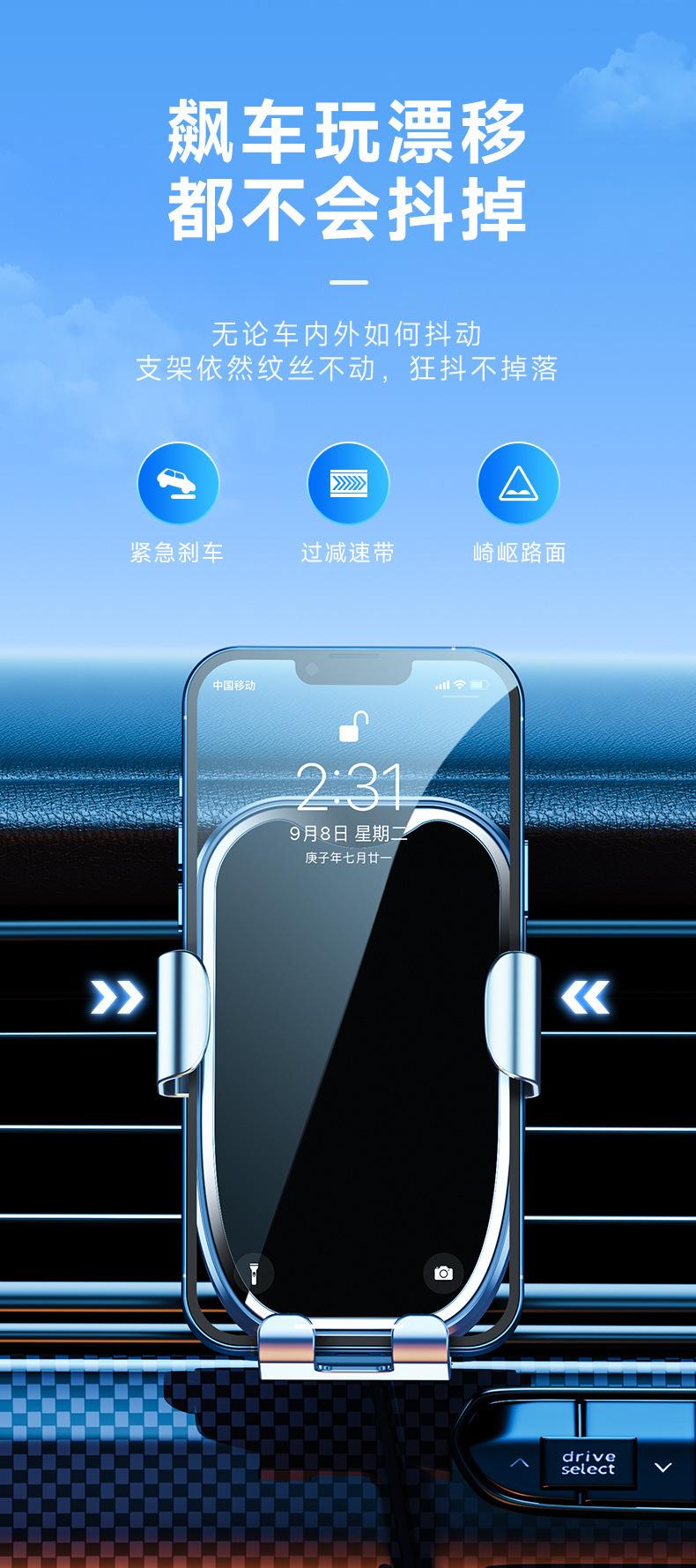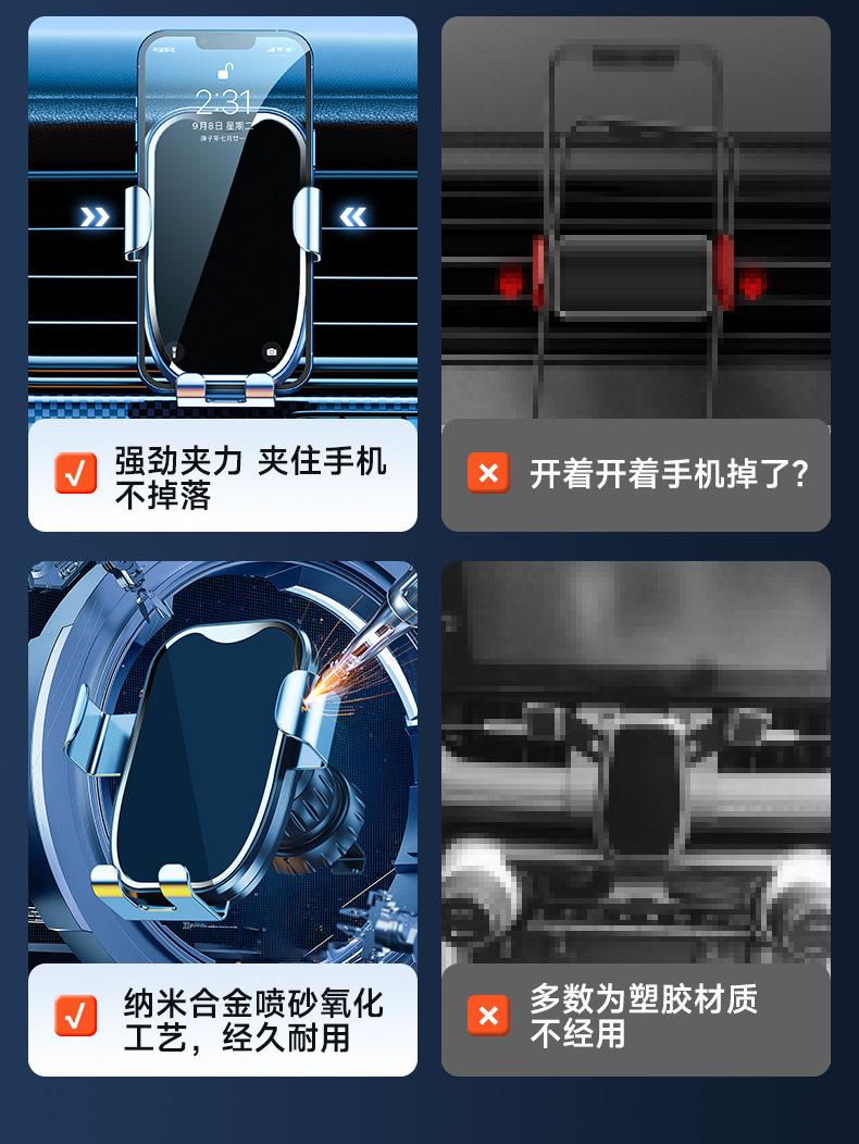 Soporte de navegación por gravedad de metal para coche nuevo 2023, soporte de teléfono móvil con salida de aire y gancho en espiral dedicado