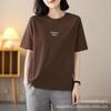 Nueva Camiseta de Manga Corta de Algodón Puro para Mujer Moda Verano 2026 Camisa Base Estampada Cuello Redondo Elegante Versátil