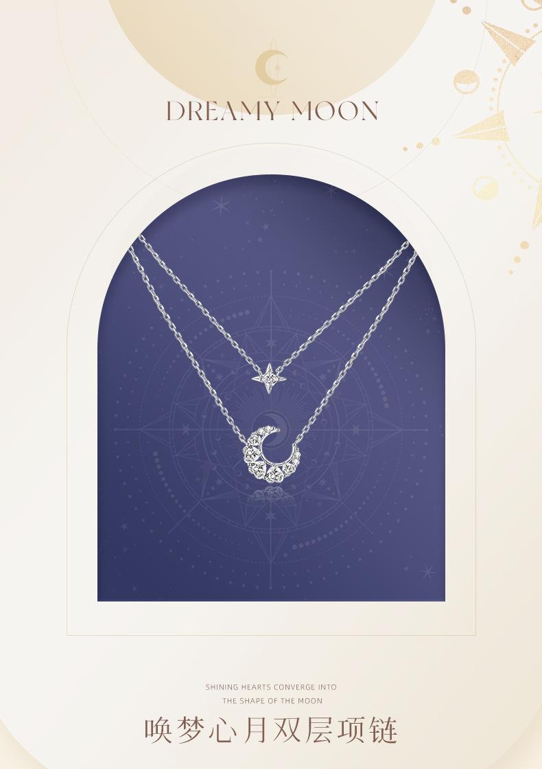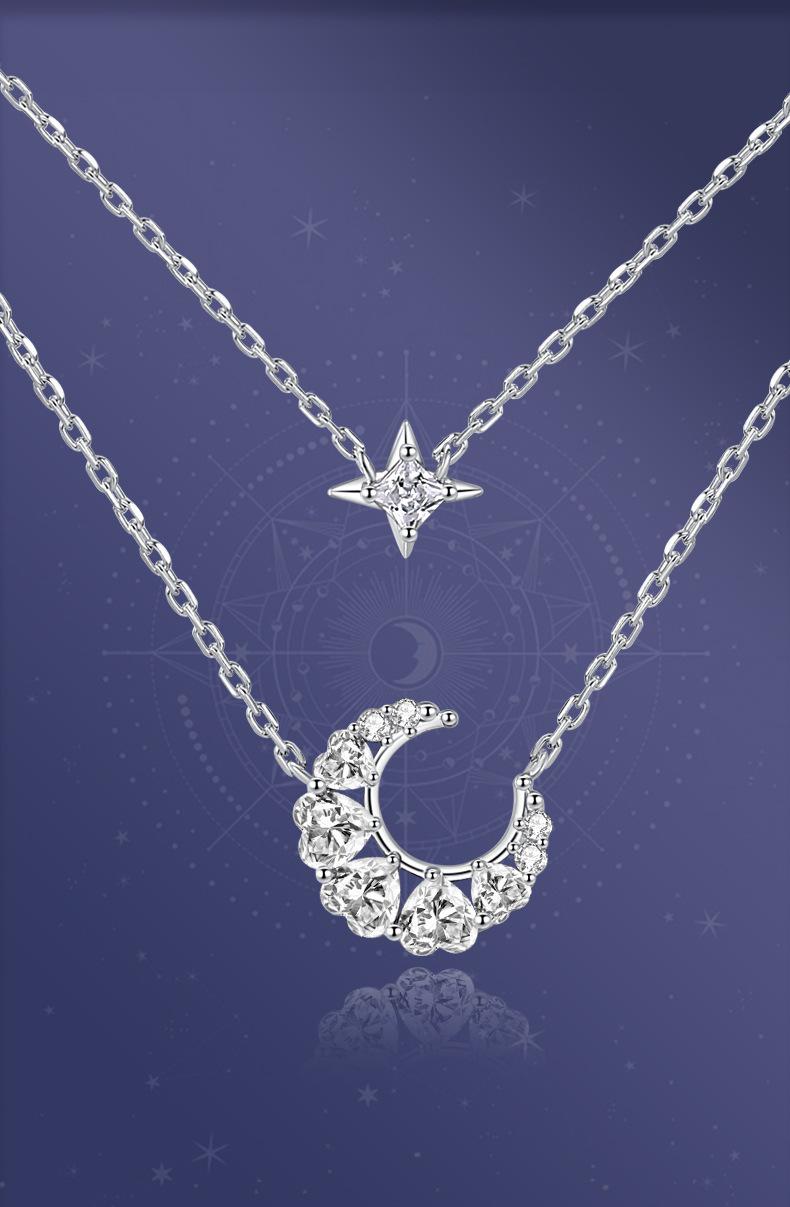 Double-layer heart moon necklace [White Diamond]]
