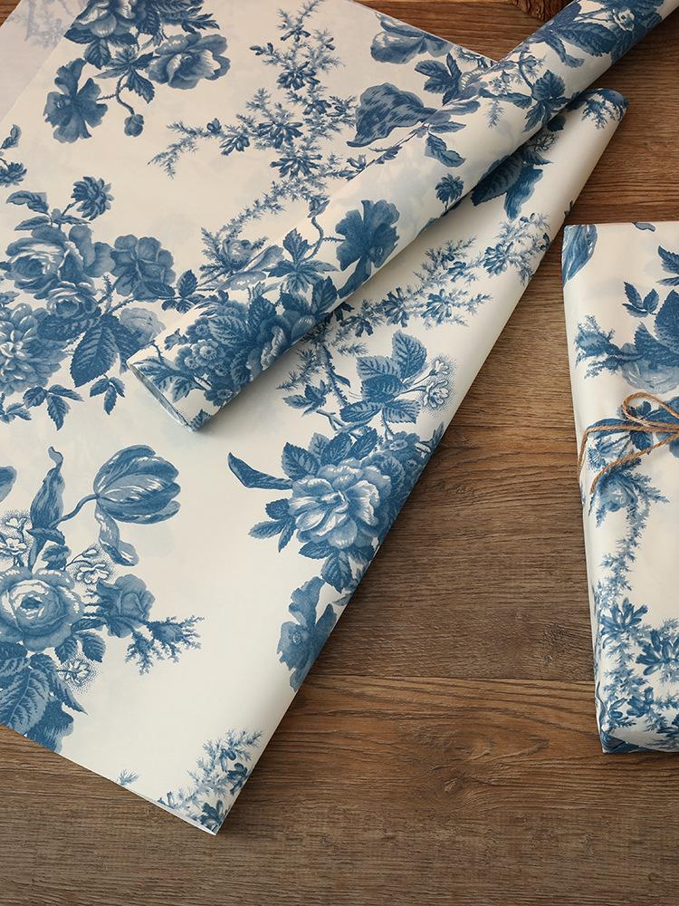 Suministro Directo Transfronterizo Papel de Envoltura Papel de Pera Patrón Azul y Blanco 5/10/20 Hojas Papel de Regalo Estilo Ins Papel de Envoltura de Regalo al por Mayor