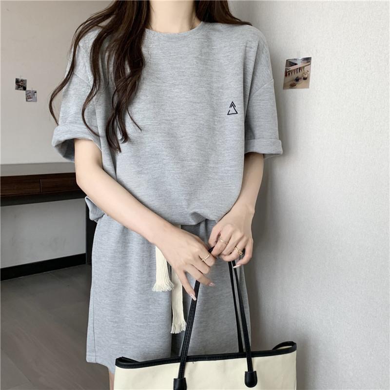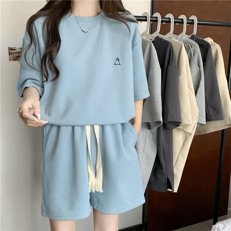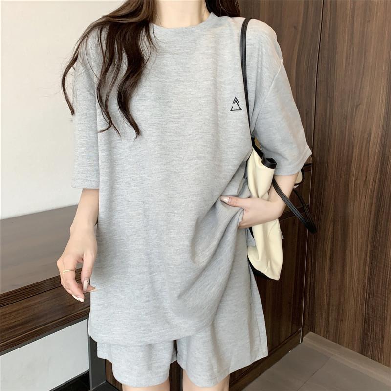 2025 Nuevo Traje Deportivo Casual para Mujer Verano Delgado Holgado Talla Grande Manga Corta Shorts Conjunto de Dos Piezas Moderno