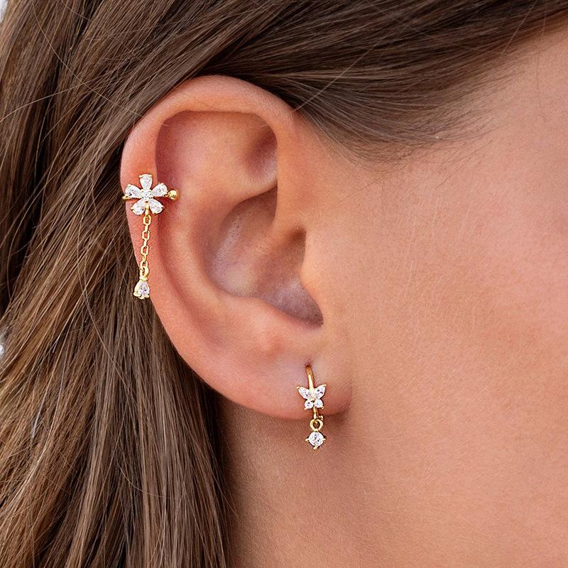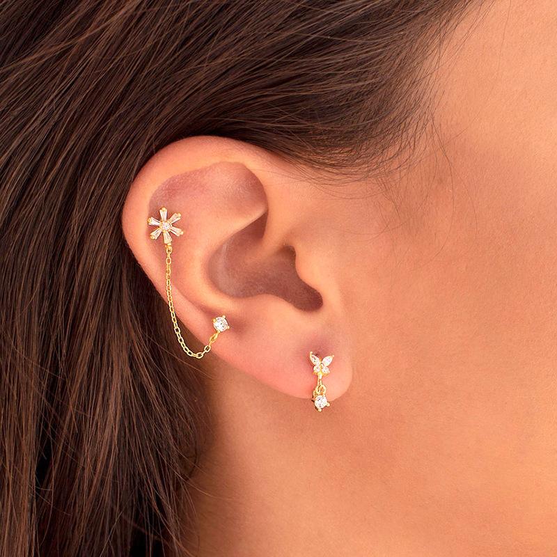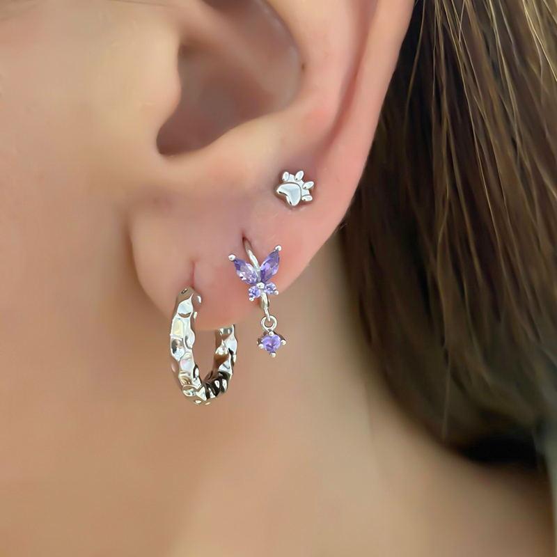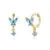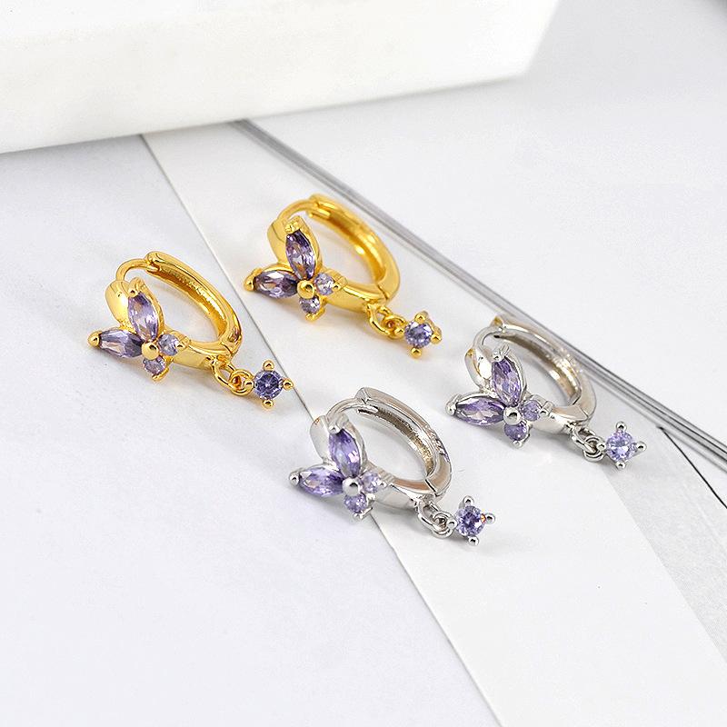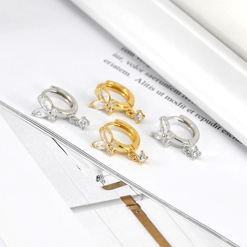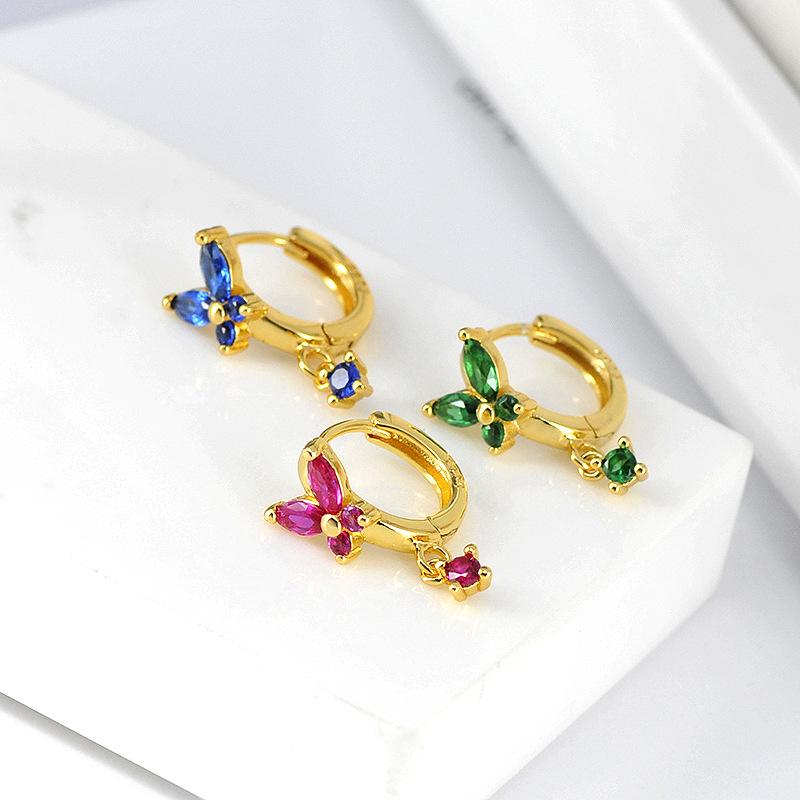 Pendientes con hebilla de oreja de mariposa con circonita multicolor europea y americana de aguja de plata s925 para mujer, sencillos y elegantes, con diseño de nicho