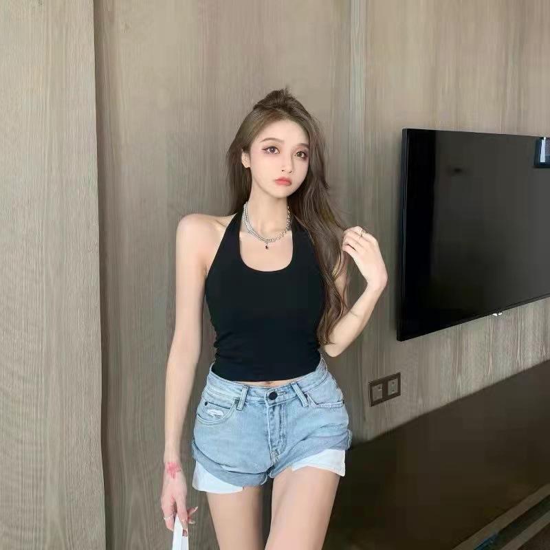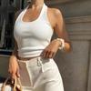 Camisola de exterior para mujer, prenda exterior ajustada que combina con todo, color liso, sin mangas, con aros y espalda descubierta, ropa interior larga.