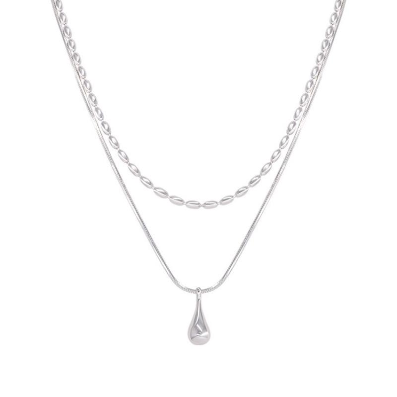 Collar minimalista de doble capa de estilo coreano para mujer, moderno, combinable, de alta gama, con colgante de gota de agua, cadena de clavícula, nuevo estilo 2024