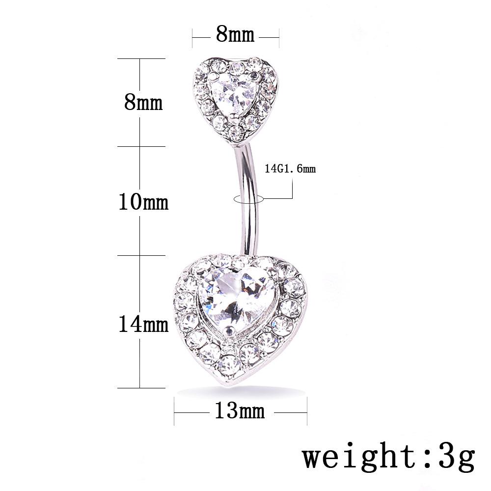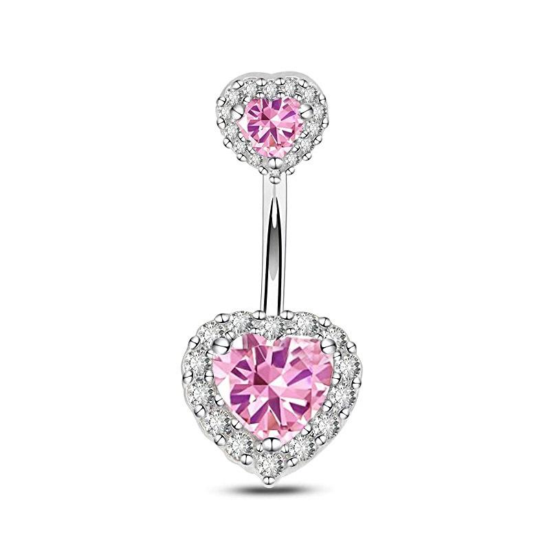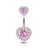 Piercing para Ombligo Doble Amor Transfronterizo al por Mayor Amazon Europeo y Americano Nuevo Simple Zircón Corazón de Durazno Piercing Joyería para Uña de Ombligo