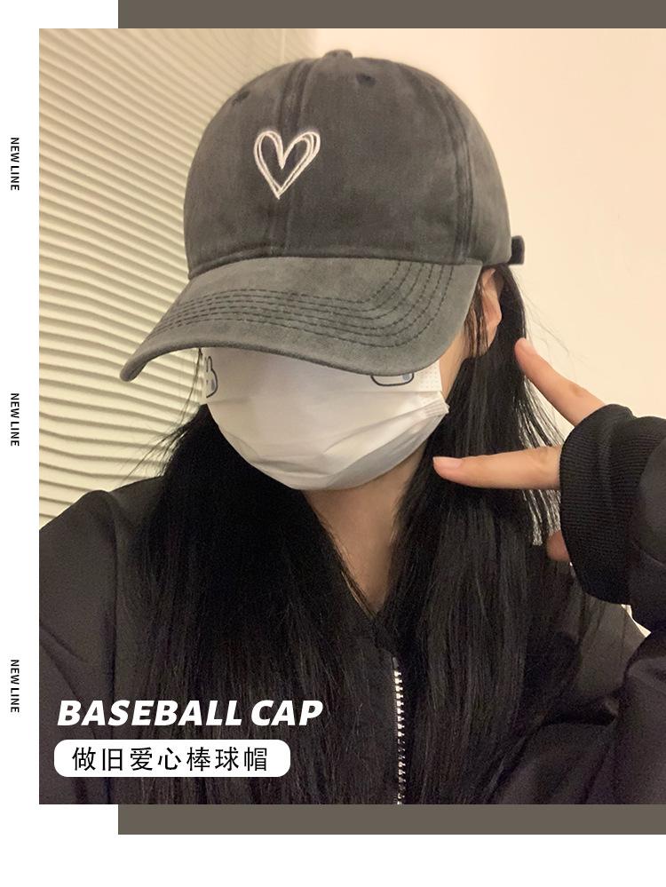 Gorra Lavada Vieja para Mujer Cabeza Grande Gorra Vintage Dulce Cool Spice Girl Amor Gorra de Béisbol de Copa Suave que Muestra Cara Pequeña